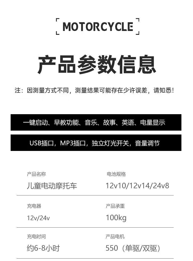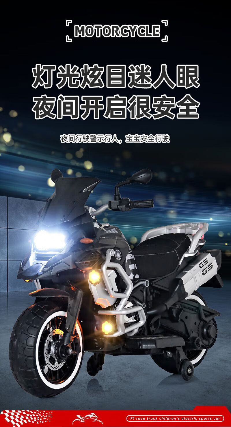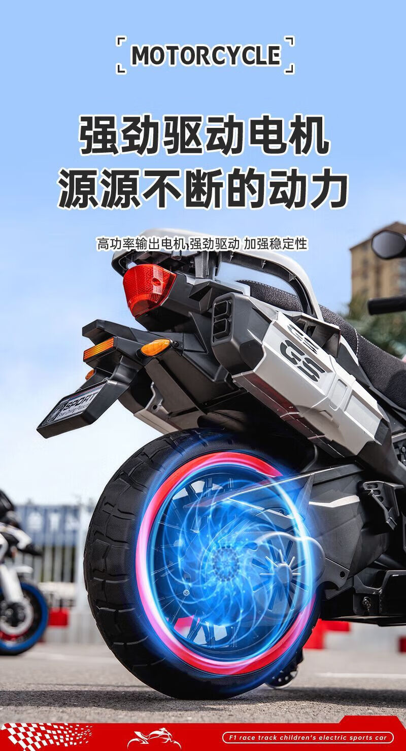 孩儿乖超大款儿童电动摩托车双人双座男女宝宝大人小孩双人充电生日礼物 白色警灯静音电机+24v8超大电瓶+皮座+软轮