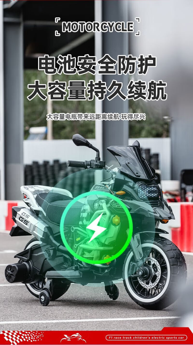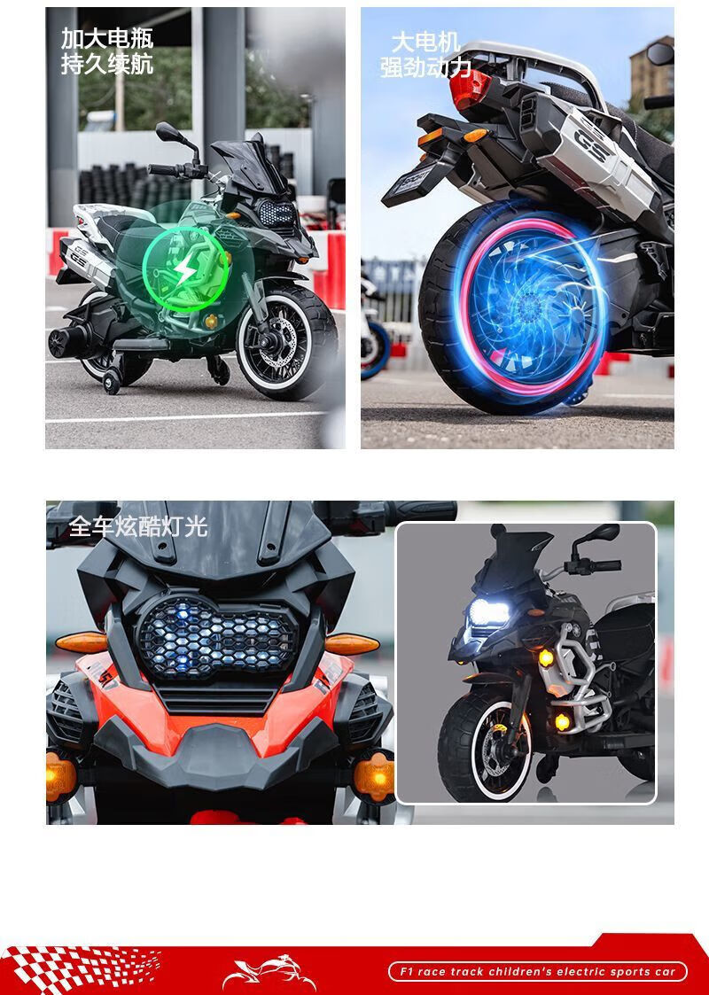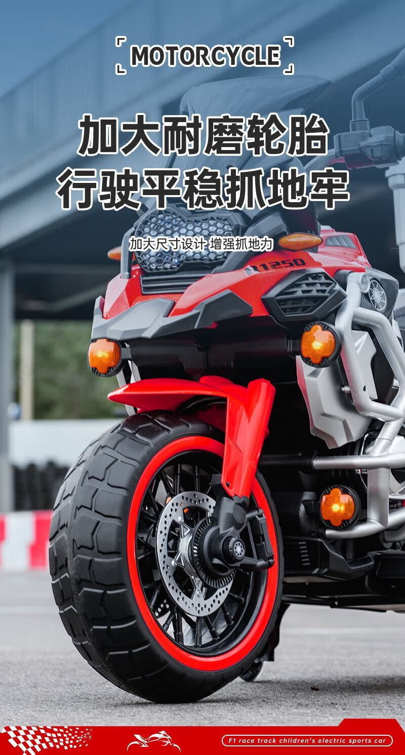 孩儿乖超大款儿童电动摩托车双人双座男女宝宝大人小孩双人充电生日礼物 白色警灯静音电机+24v8超大电瓶+皮座+软轮