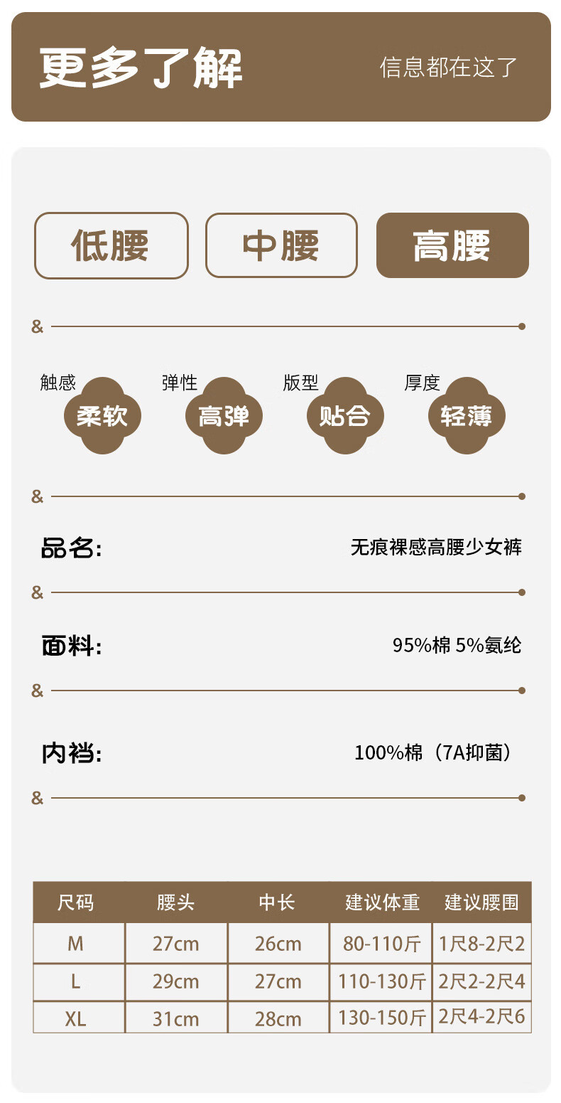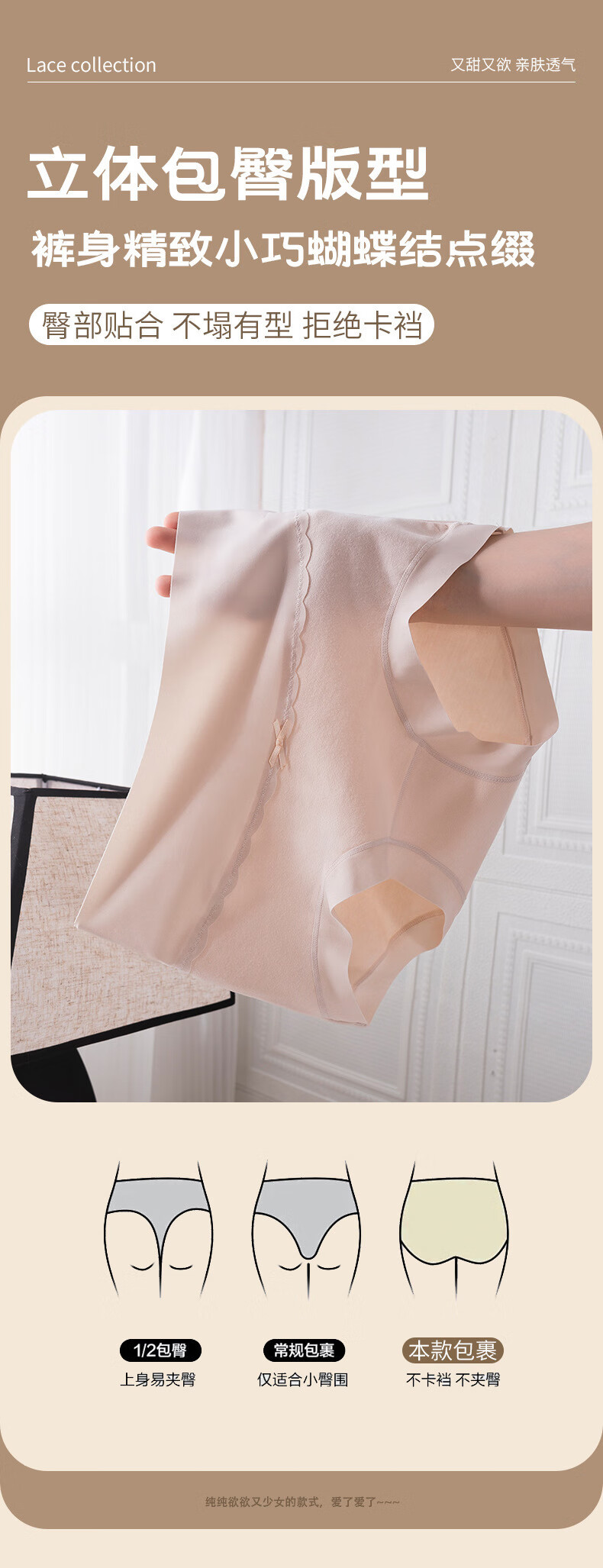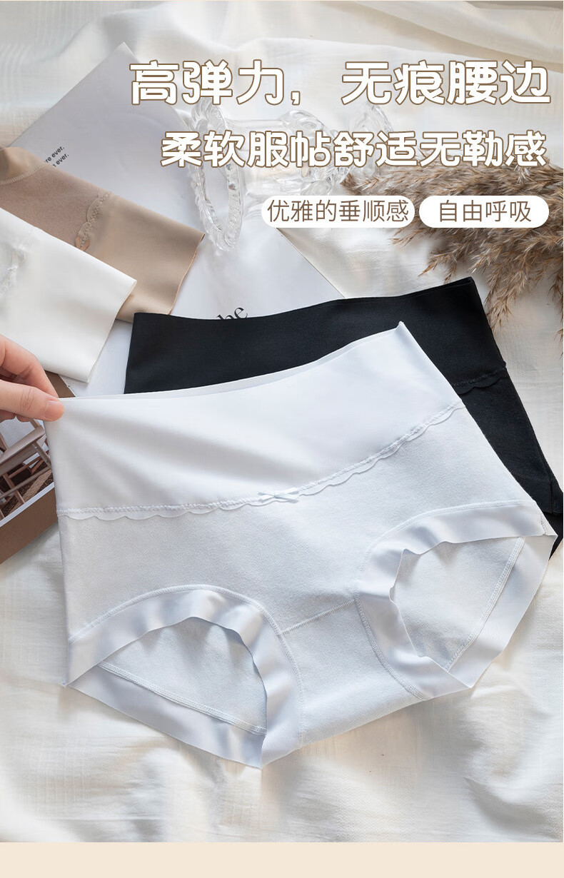 稚蝶60支新疆长绒棉 女士内裤7A抑菌高腰纯棉女生裤头大码三角裤女 混色 白色+粉色+黑色+蓝色 4条 M 高腰165/90