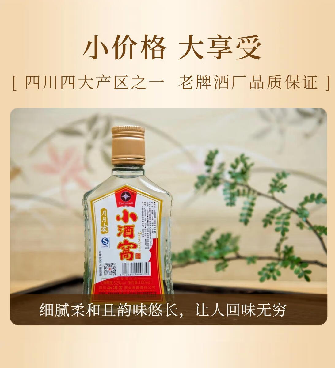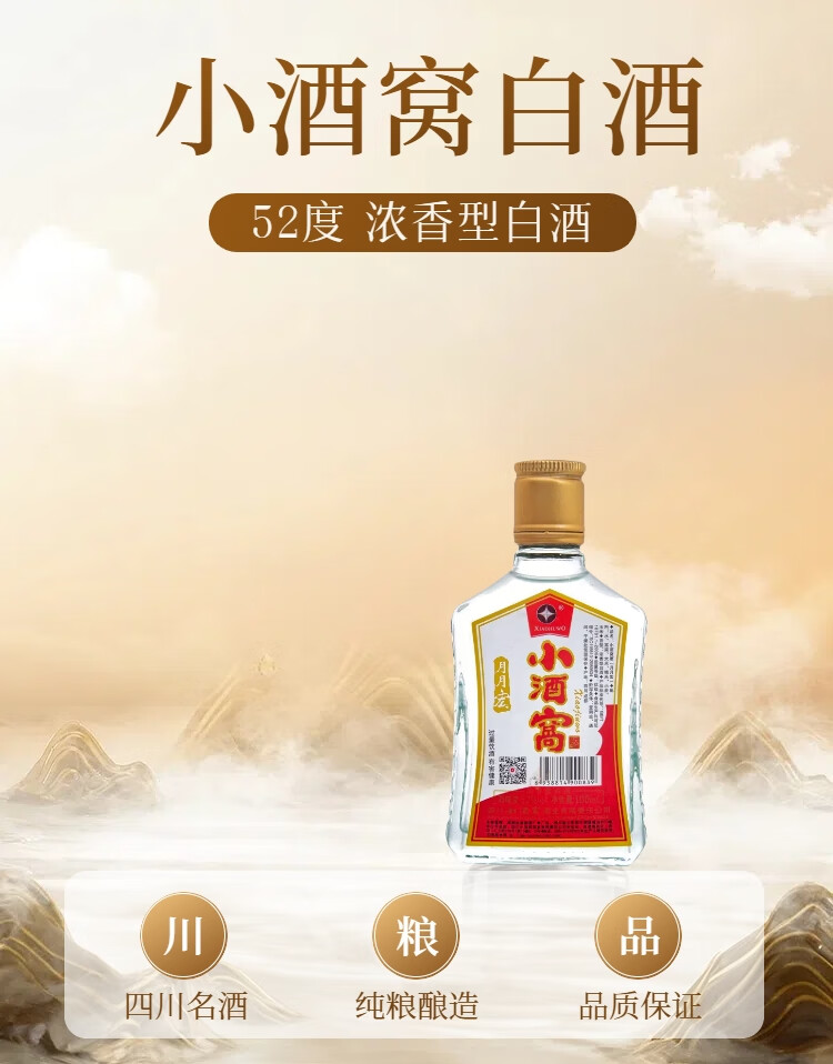 小酒窝【单瓶尝鲜】100ml2两光瓶小酒52度纯粮酿造白酒6瓶组合装小酒窝 52度 100mL 6瓶 【2017年生产】