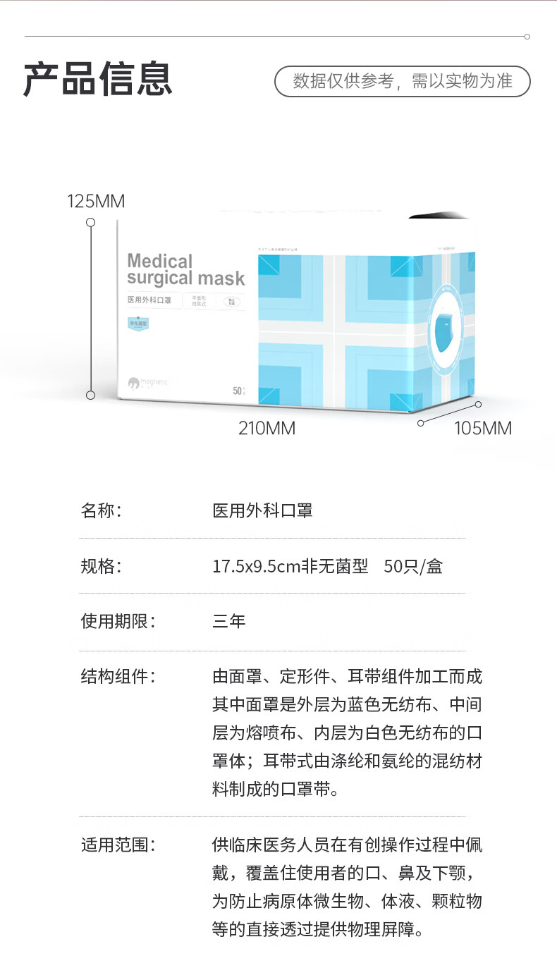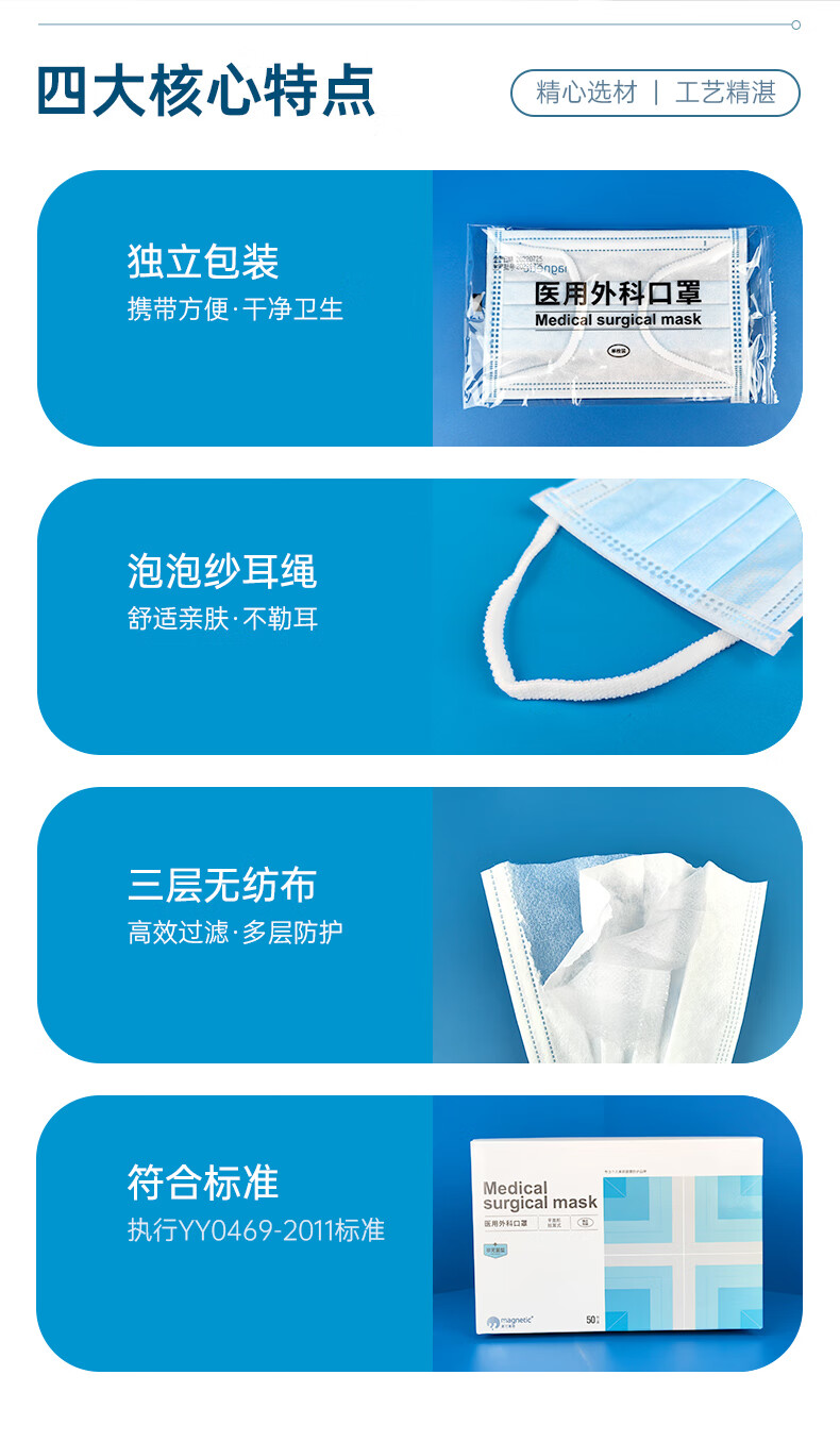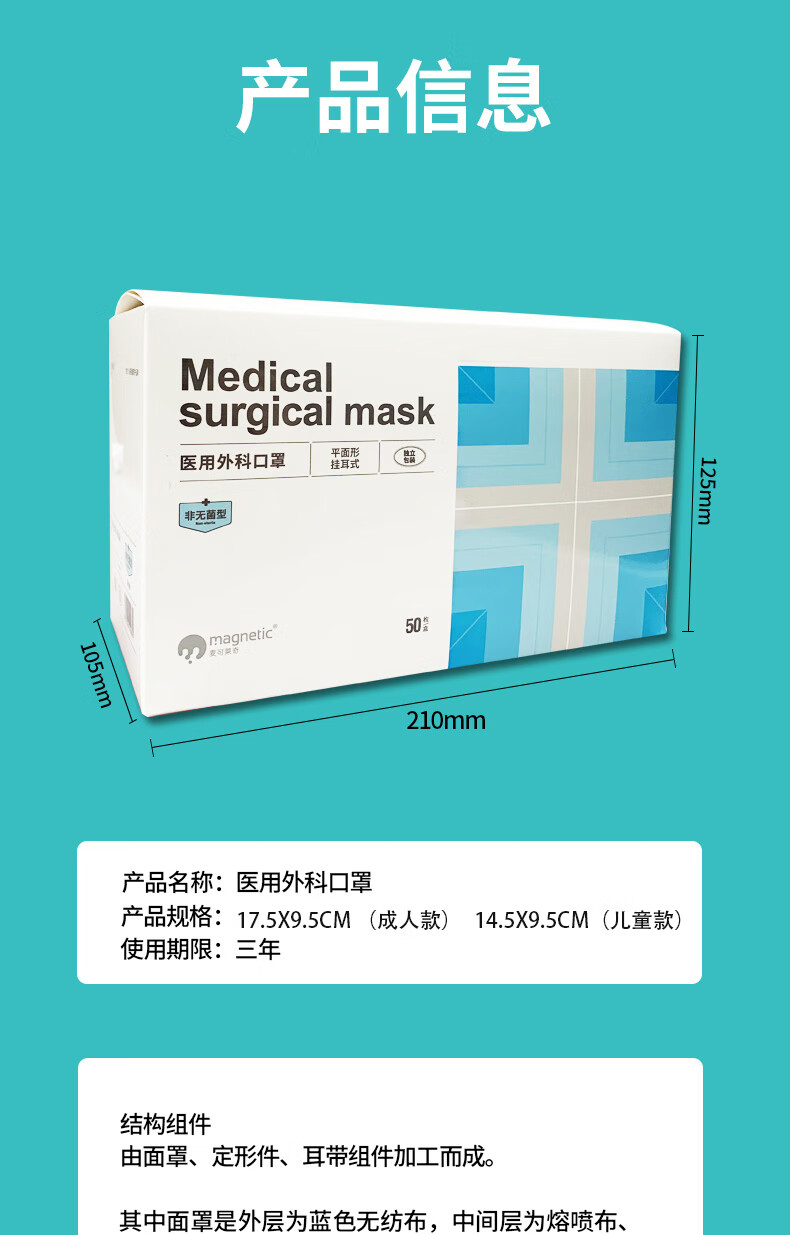 麦可莱奇医用外科防护口罩舒适亲肤三层防护独立包装泡泡纱耳绳资质齐孕妇 【儿童款】蓝色 500只(50只/盒)