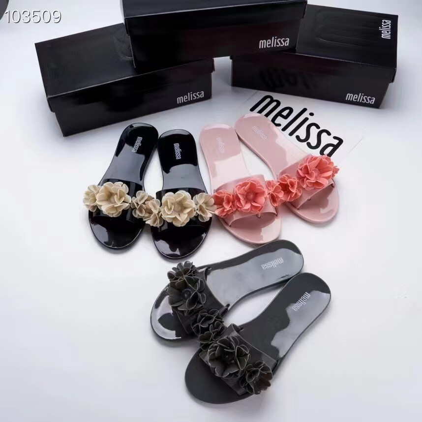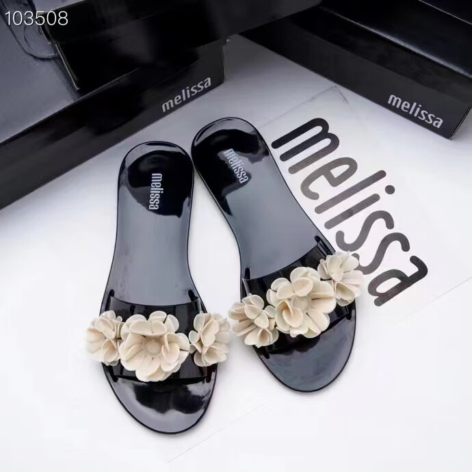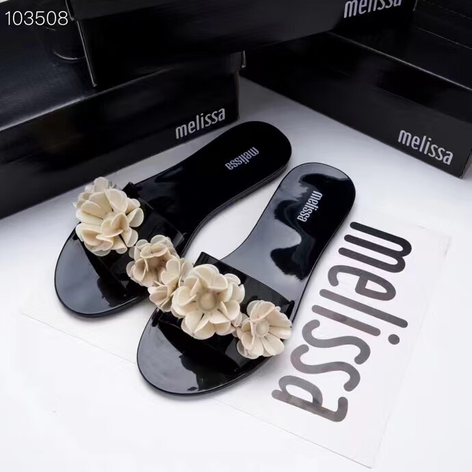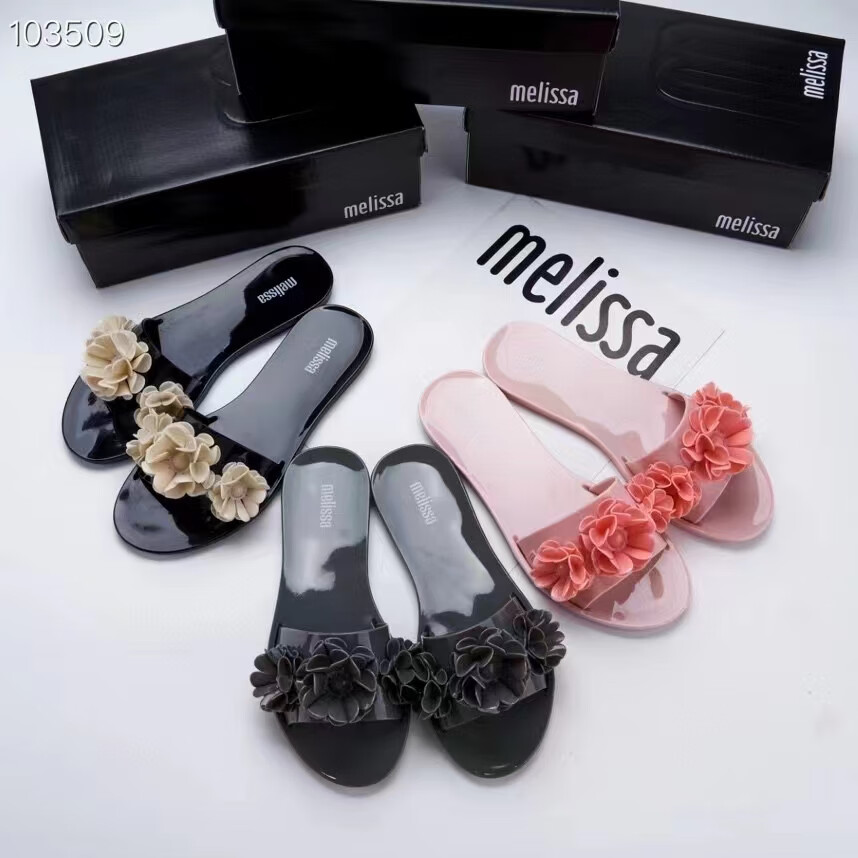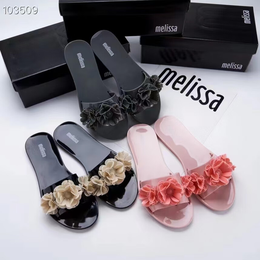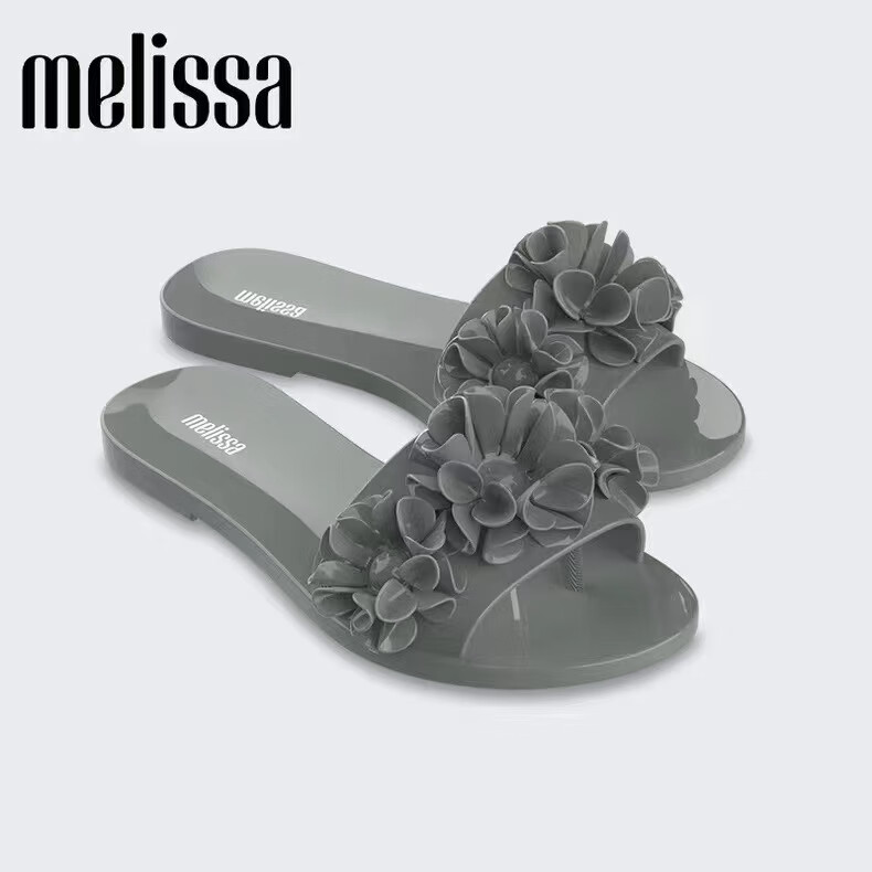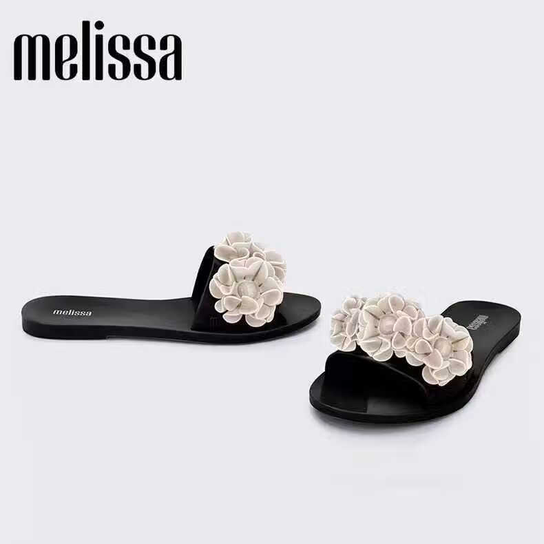梅丽莎2024新款果冻鞋melissa拖鞋人字拖立体山茶花巴西一字拖外穿 黑山茶花 40