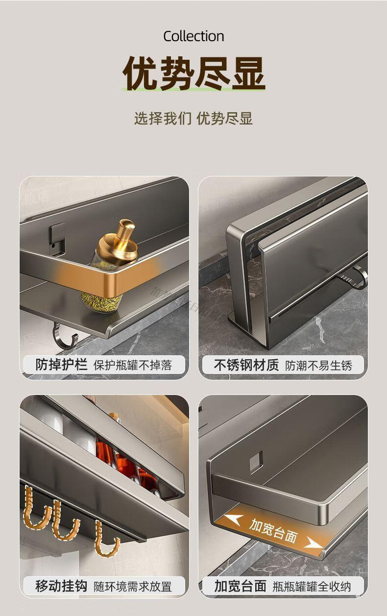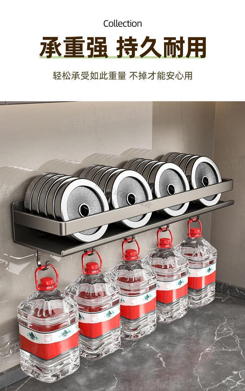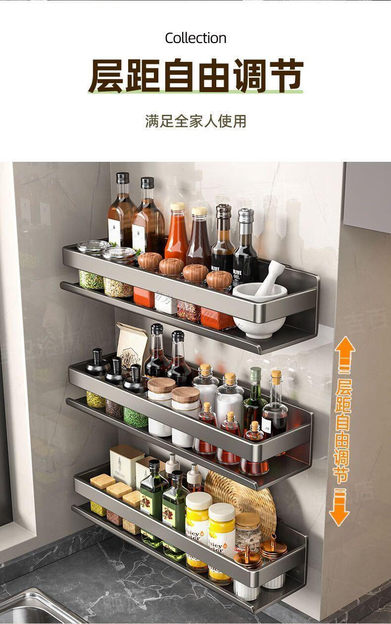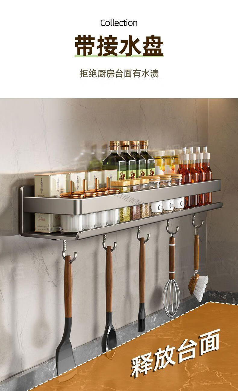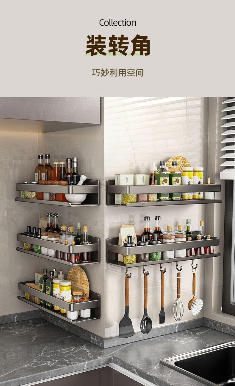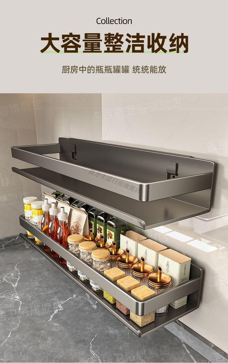 笛芳厨房置物架调味料品罐收纳架子墙上免打孔壁挂式调料架放置移动 【白色】双层可拆洗厨房置物架60cm-碳钢(带钩)
