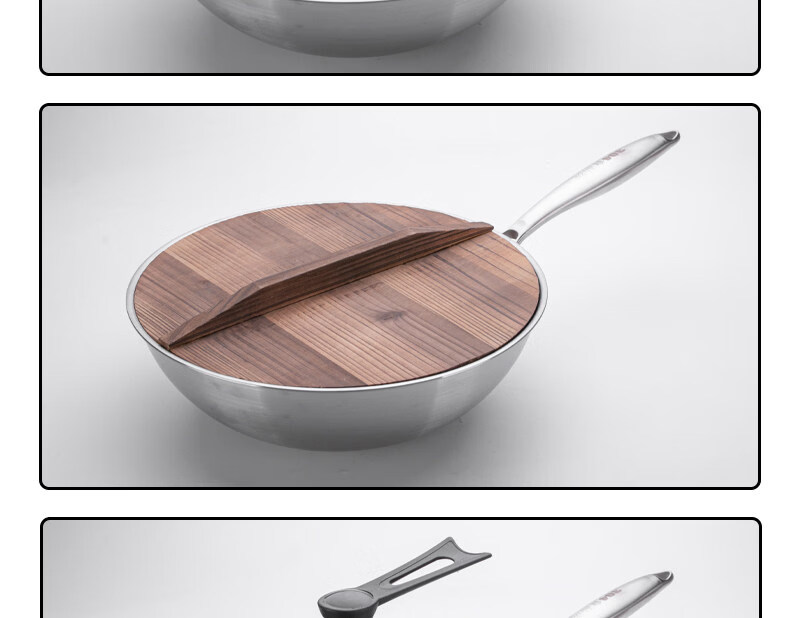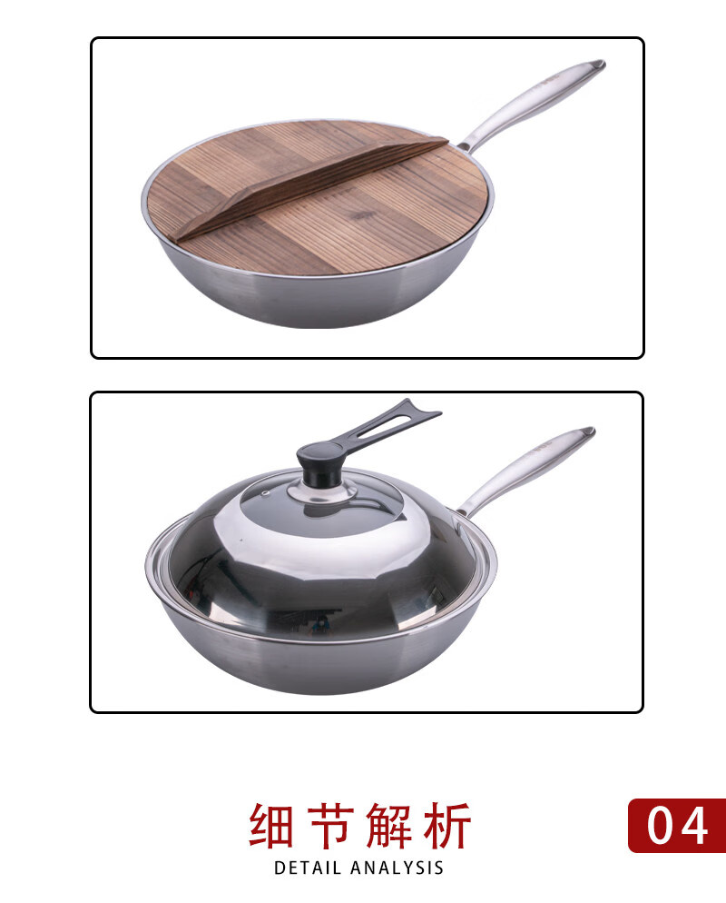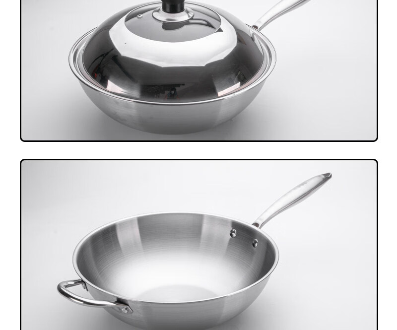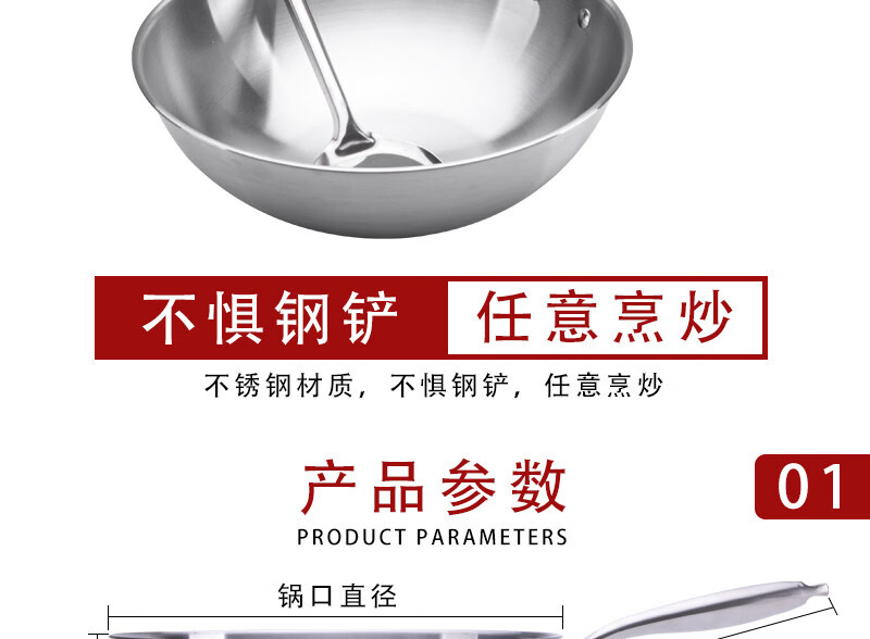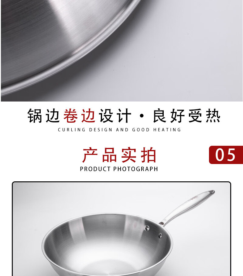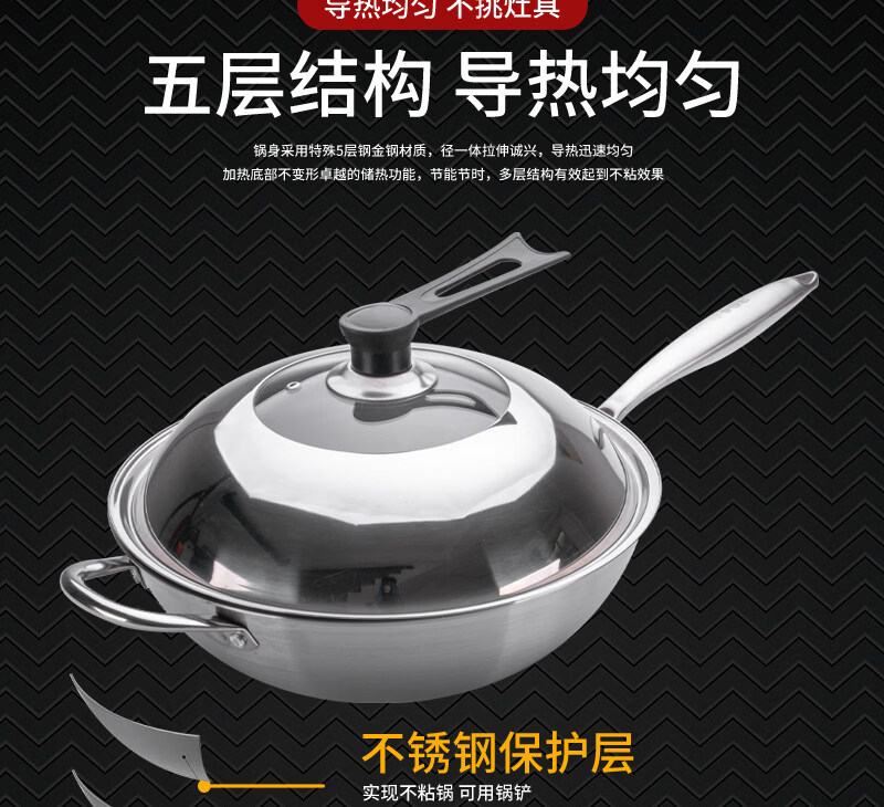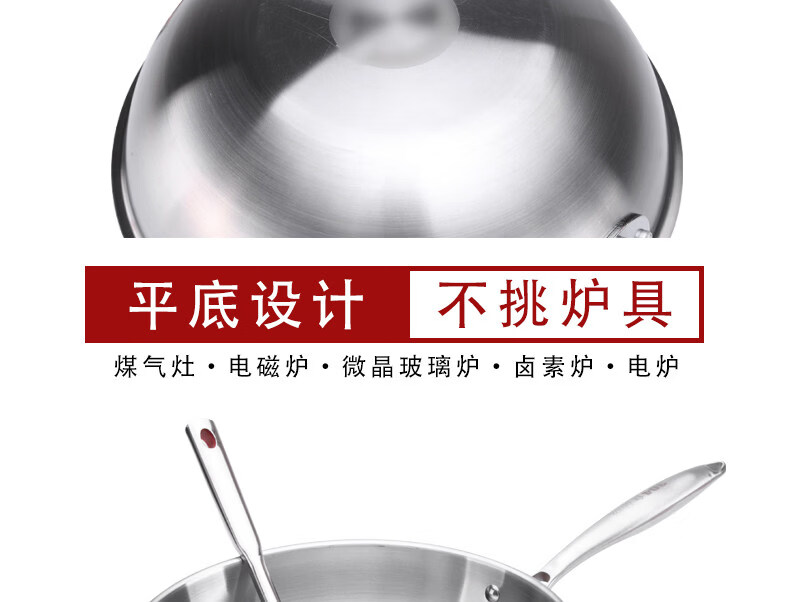 胖东来同款圆底不沾锅炒锅家用不锈钢炒锅电磁炉瓦斯灶专用平底锅 内径无耳五层钢【平底】(食品级) 30cm