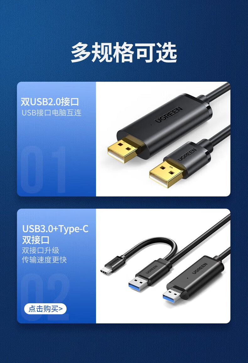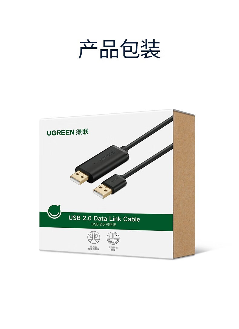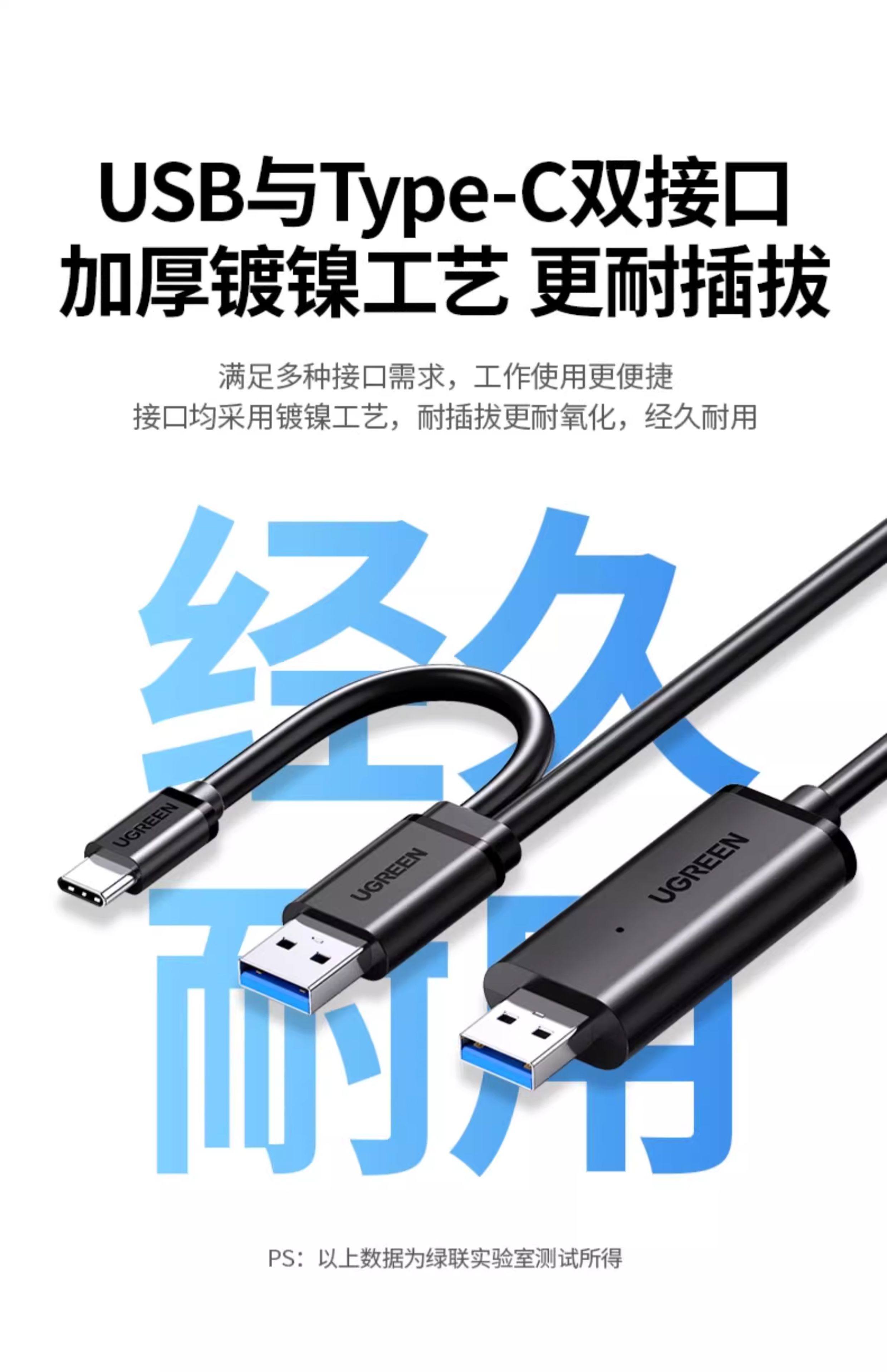 绿联 USB对拷线 电脑数据对传线 免驱多功能传输连接线 鼠标键盘互联共享线 双USB口PC对电脑对拷线 【双USB2.0口】对拷线 20233 2米