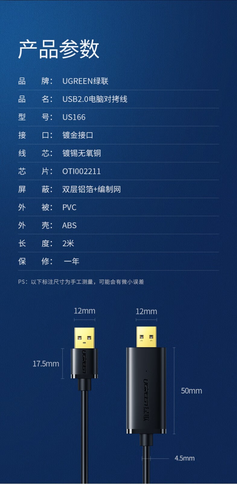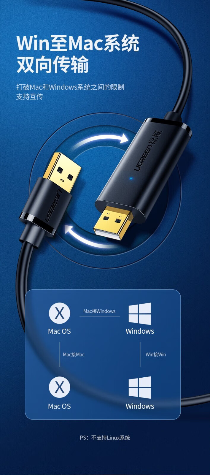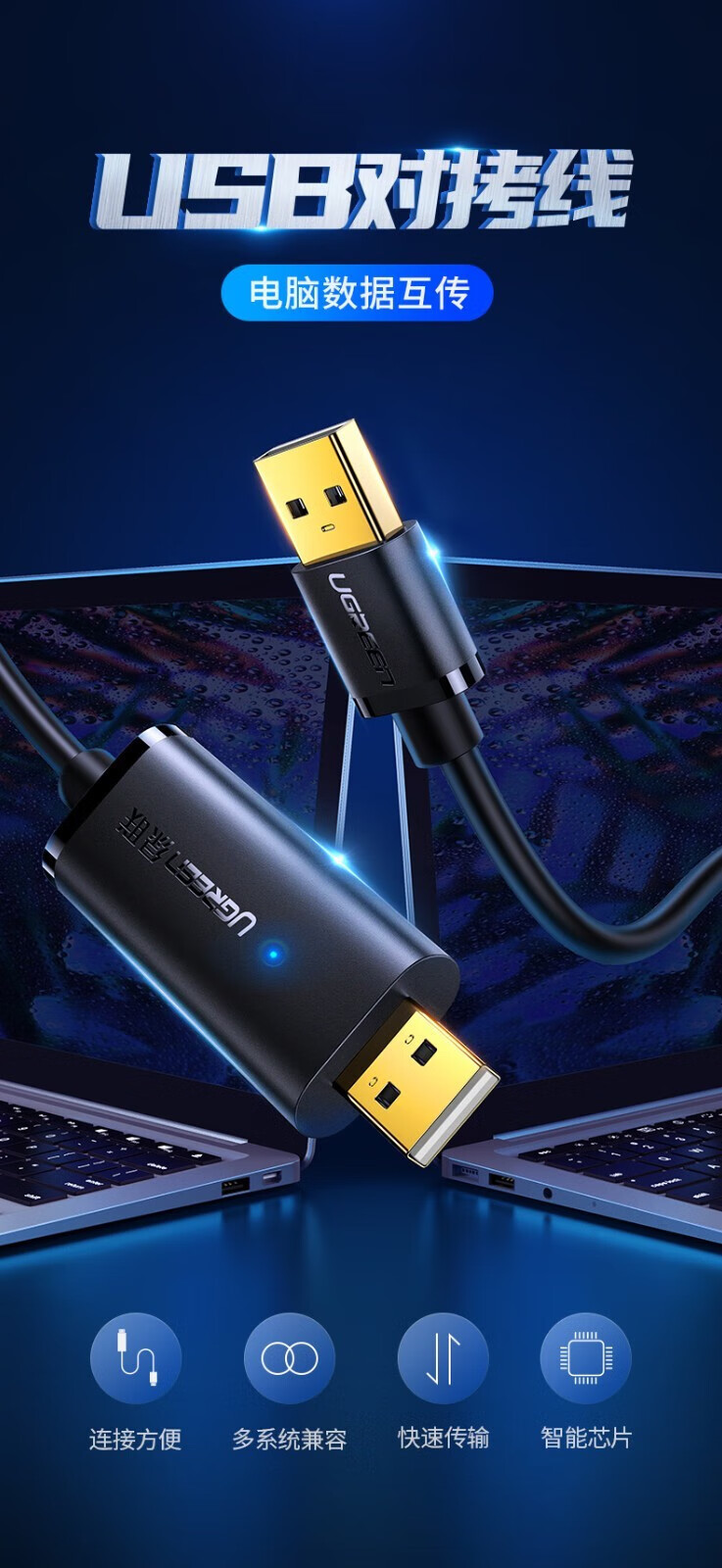 绿联 USB对拷线 电脑数据对传线 免驱多功能传输连接线 鼠标键盘互联共享线 双USB口PC对电脑对拷线 【双USB2.0口】对拷线 20233 2米