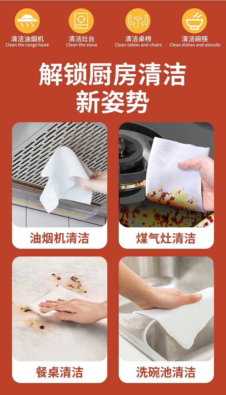 简禾厨房湿巾擦油烟专用清洁强力去油污抹布加大加厚湿纸巾加大装 80抽 3包 【强力去污+加大加厚】