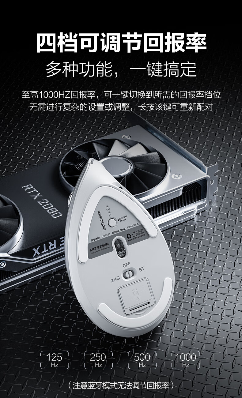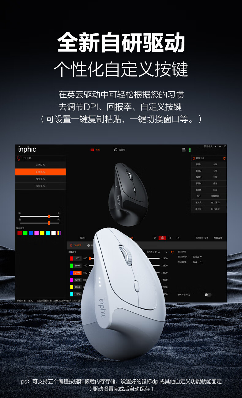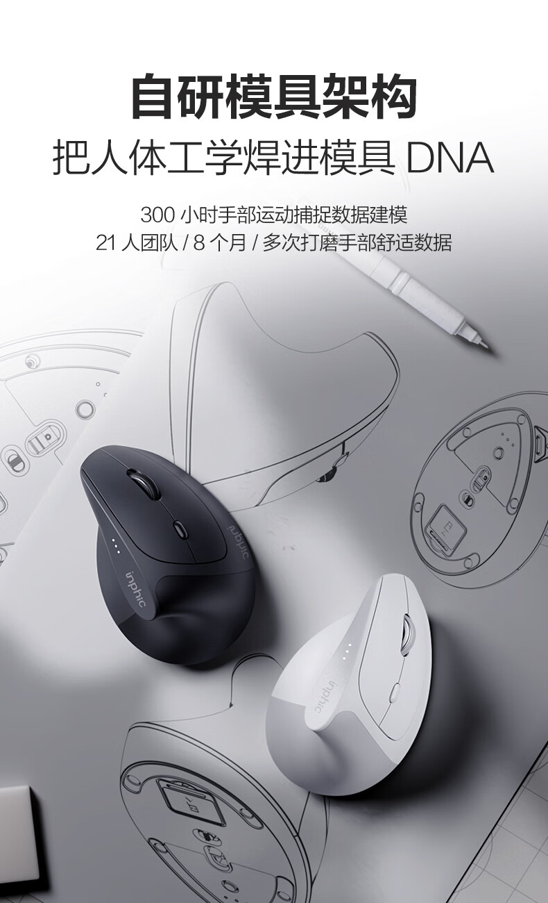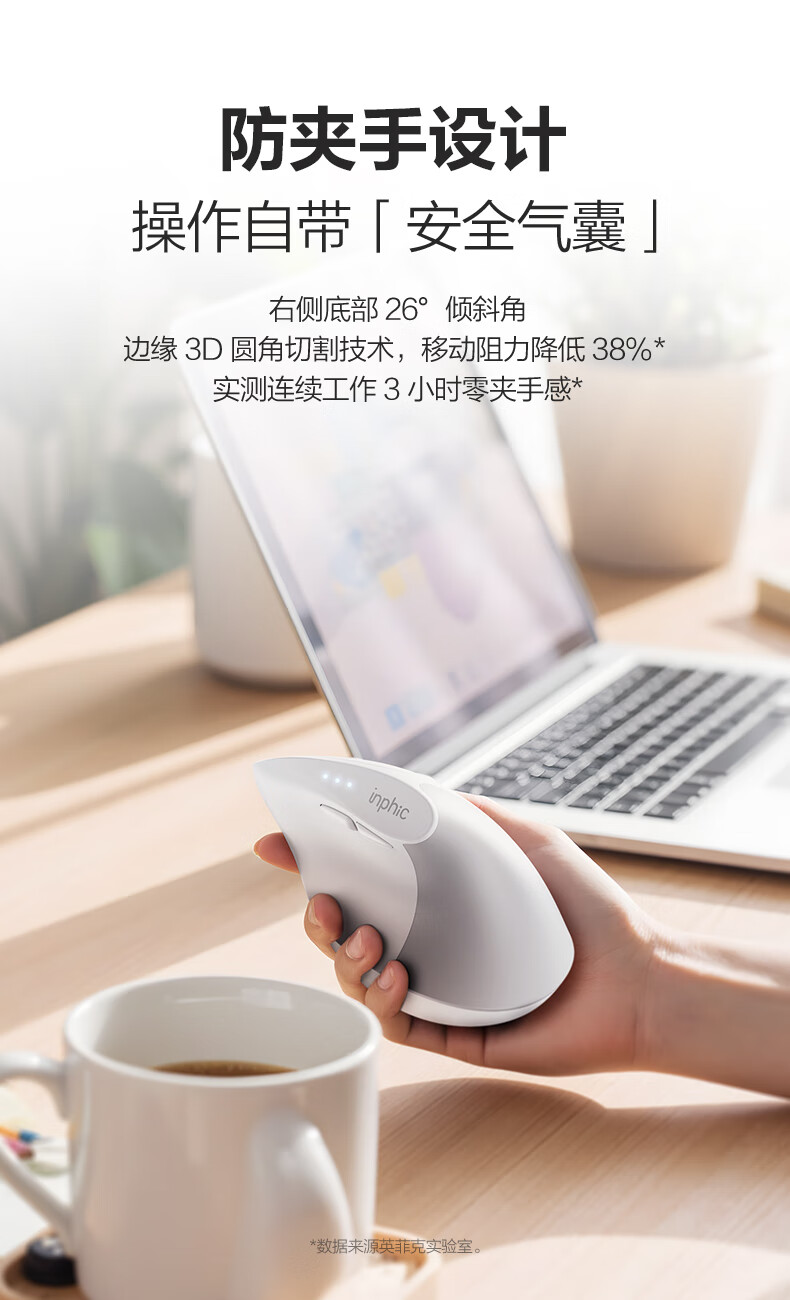 英菲克(INPHIC)X9人体工学垂直立式鼠标无线蓝牙双模充电静音办公电脑笔记本竖握立体鼠标防鼠标手专用 竖握滑鼠 【店长推荐】X9PRO灰蓝牙版【1k回报+宏编程】