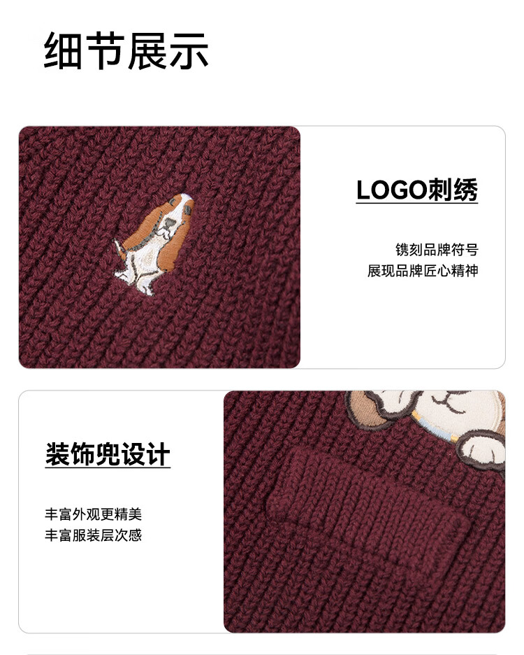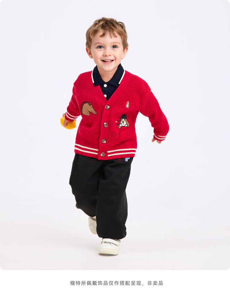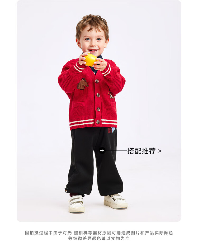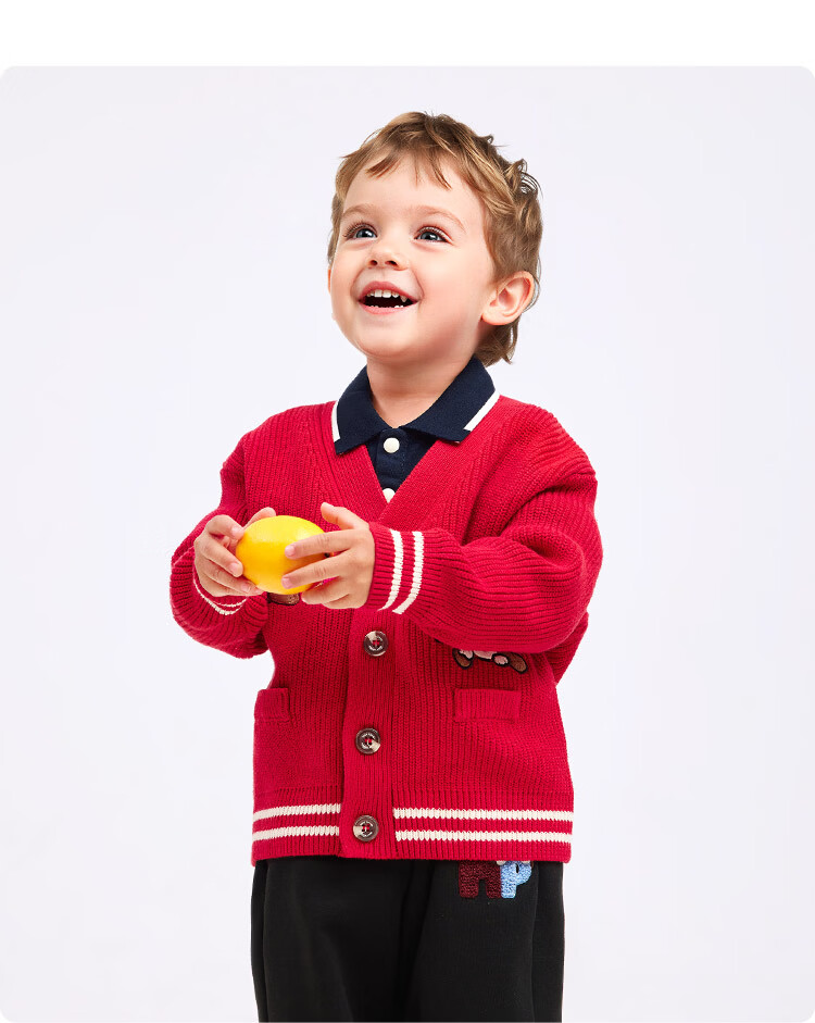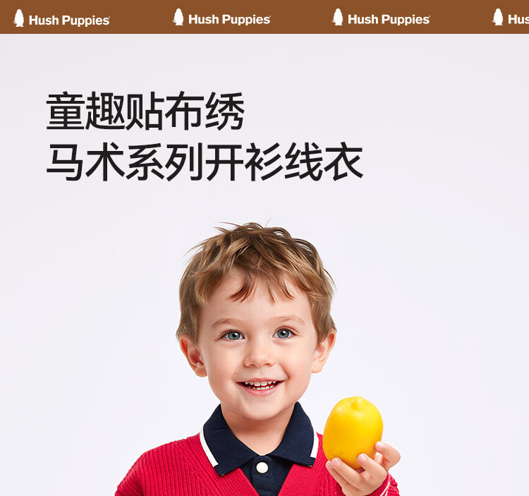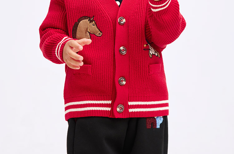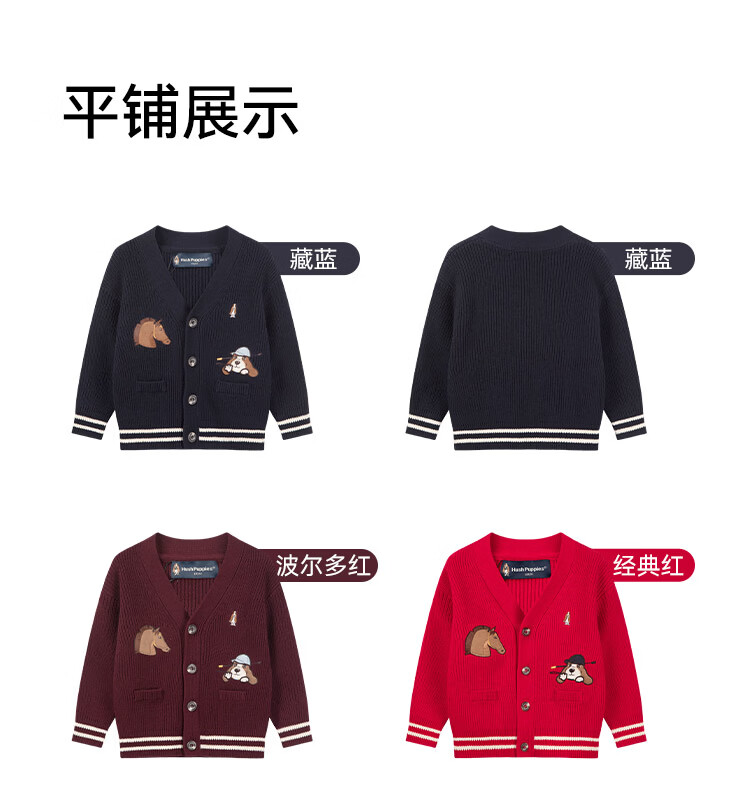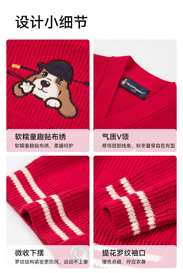 暇步士(Hush Puppies)童装儿童男大童2025秋季新款时尚童趣贴布绣马术系列开身线衣 经典红 130 cm