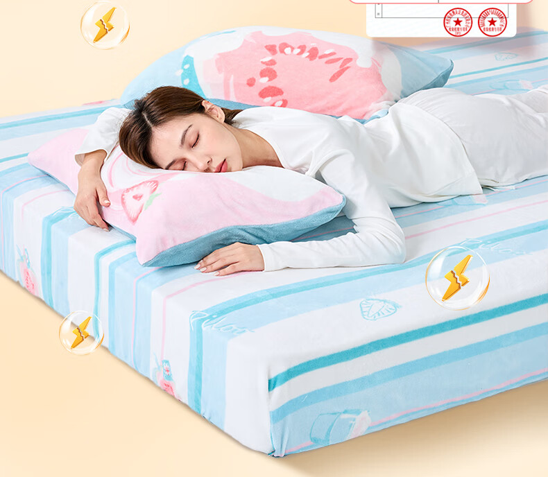 多兰诗(Duolanshi)牛奶绒四件套卡通双面加绒学生宿舍家用床单被套床上用品套件 可爱恐龙 1.8米 床单款 被套200*230cm 四件套