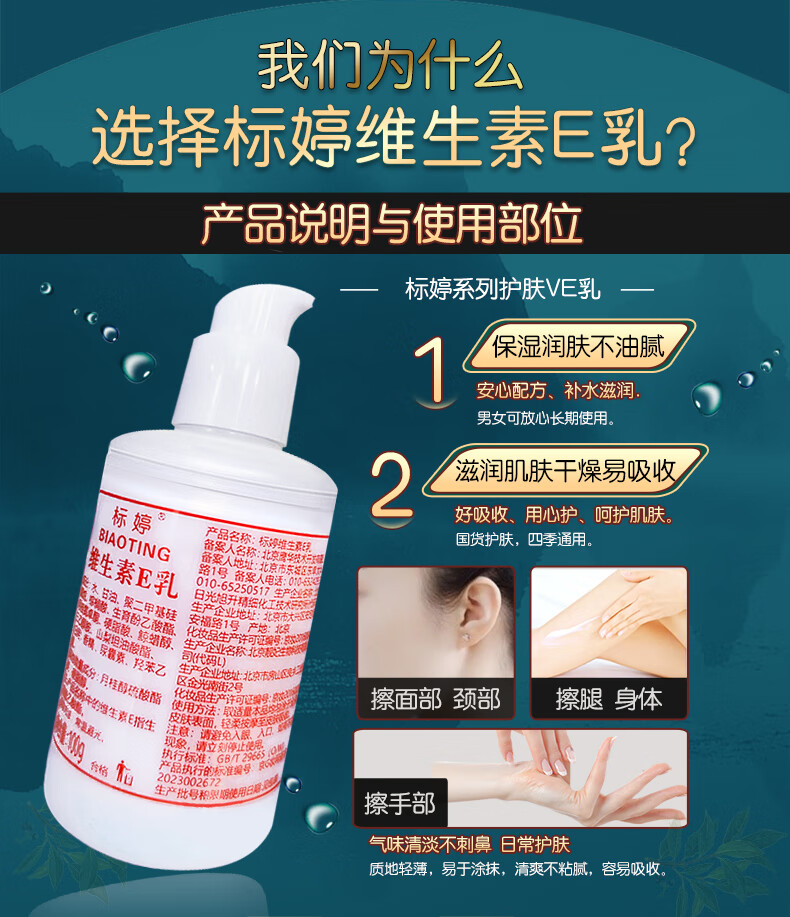 标婷维生素E乳100g*1瓶按压款乳液膏女男身体乳护手霜女保湿补水滋润