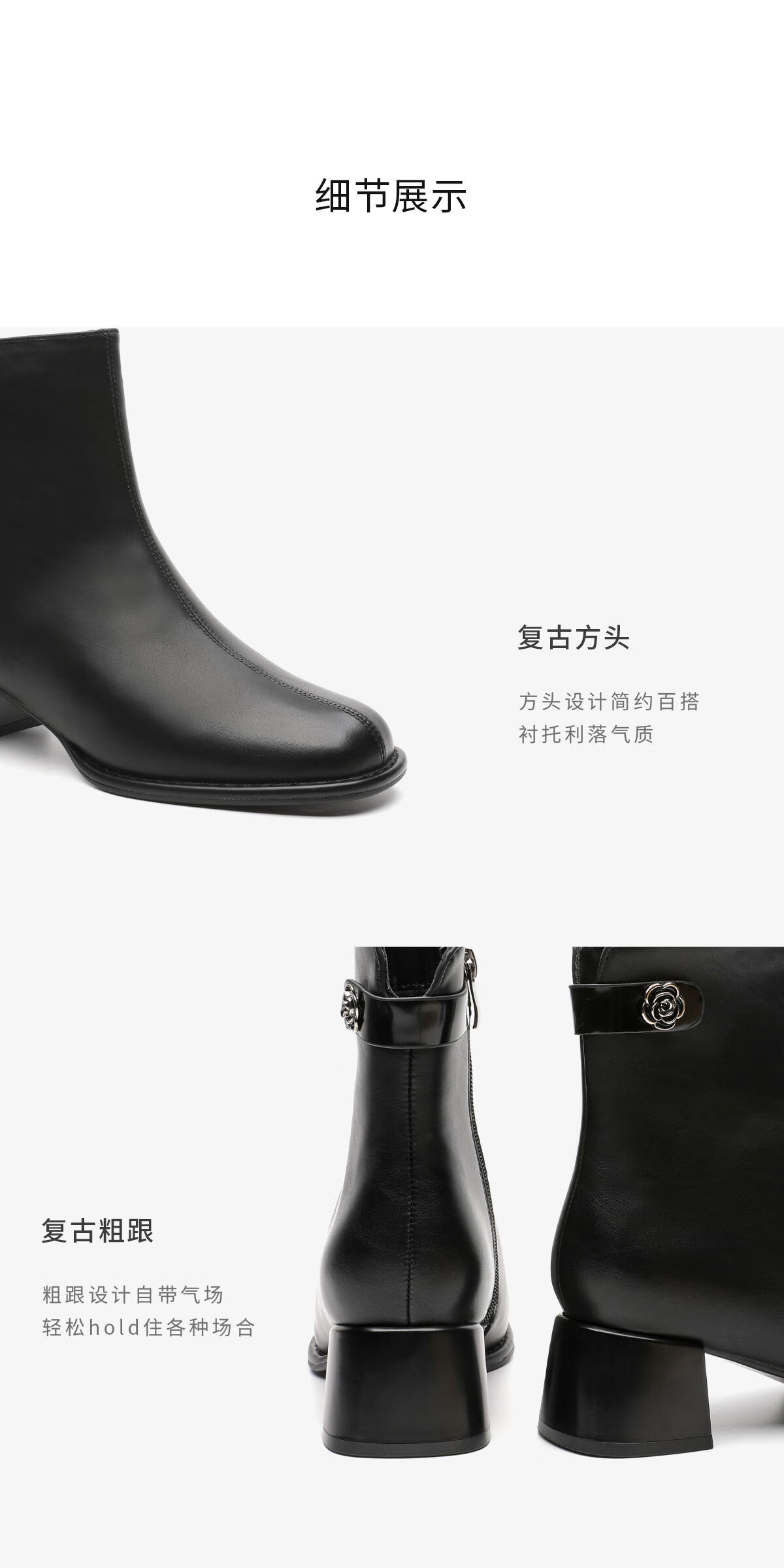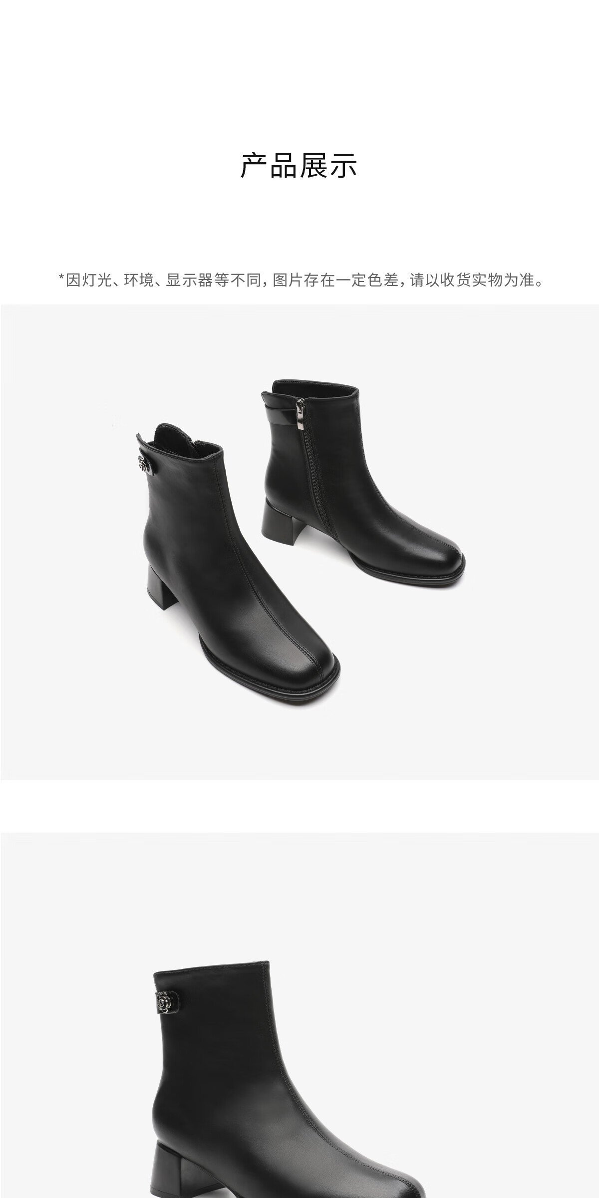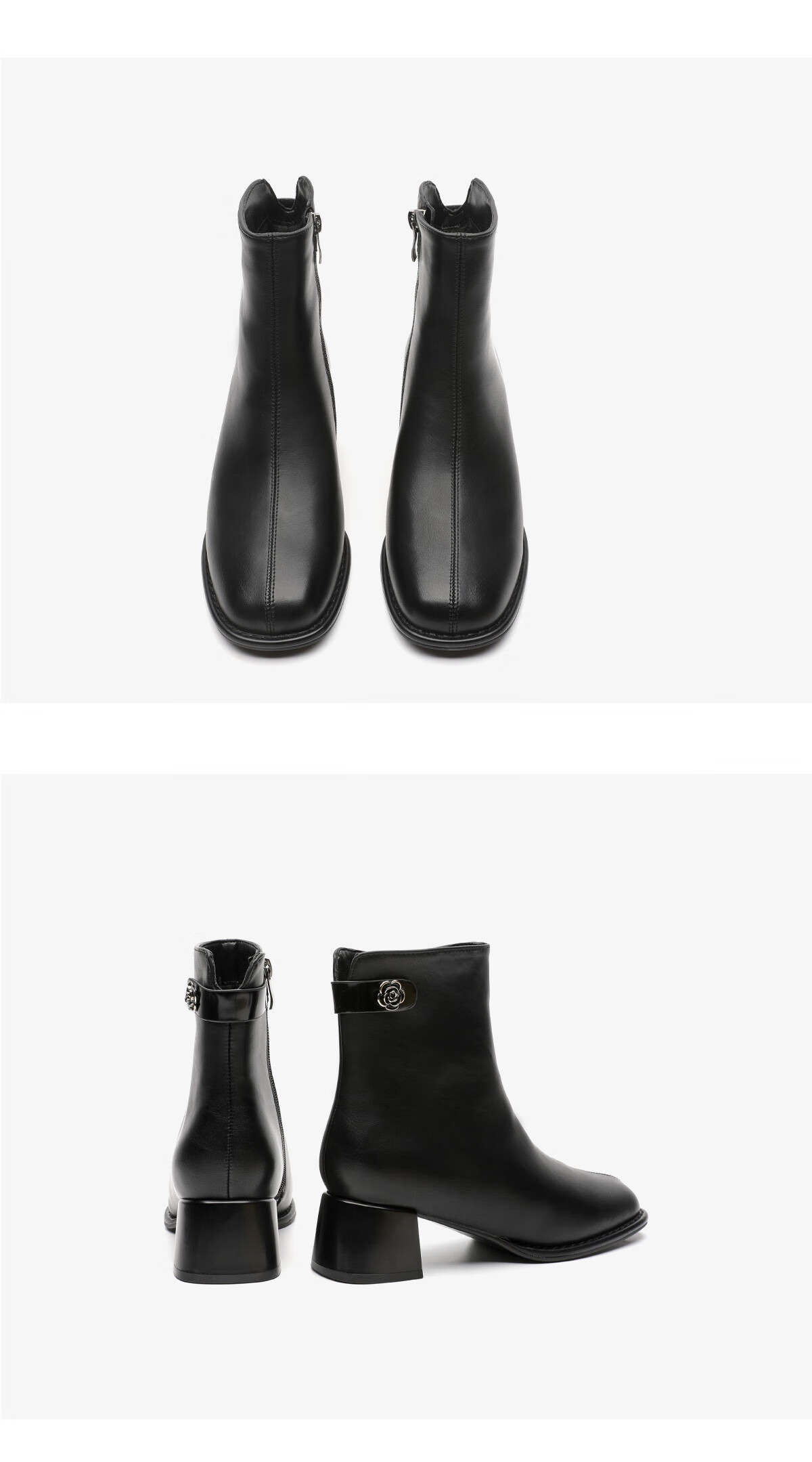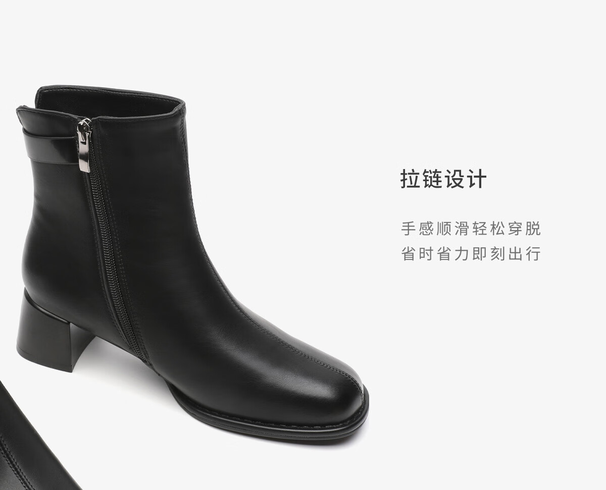 月芽儿法式方头短靴女中跟靴百搭时装靴侧拉链气质女靴瘦瘦靴 绒里黑色01T 34