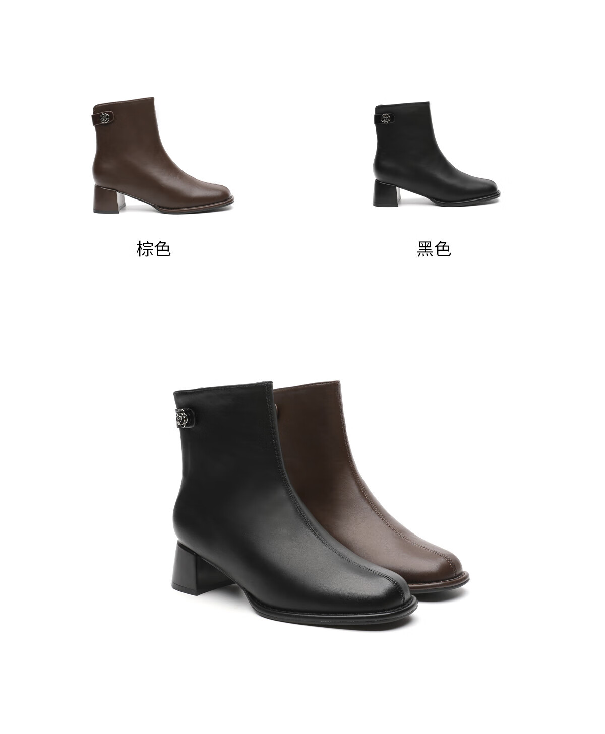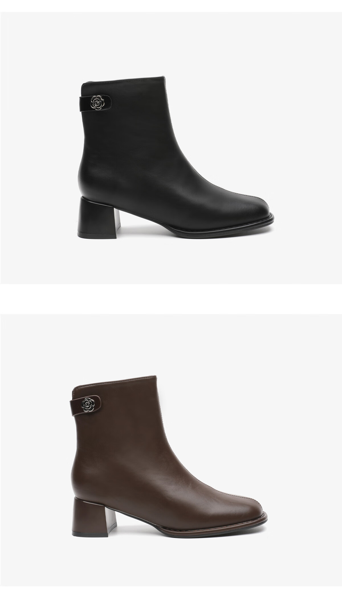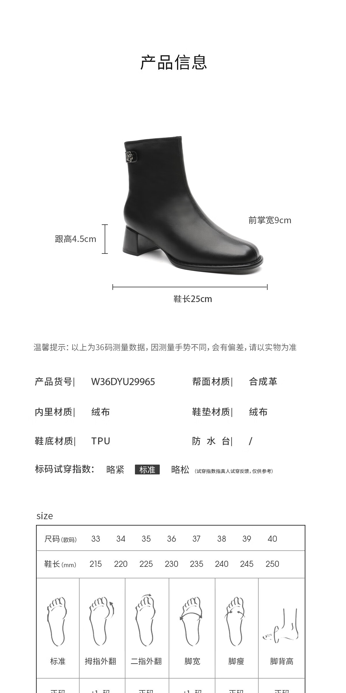 月芽儿法式方头短靴女中跟靴百搭时装靴侧拉链气质女靴瘦瘦靴 绒里黑色01T 34