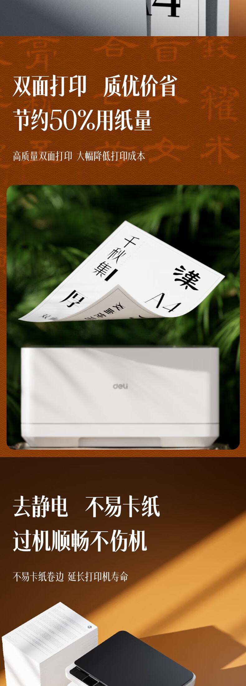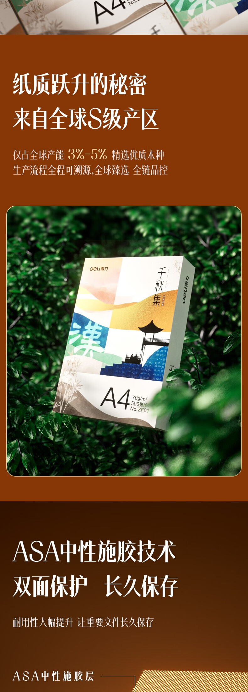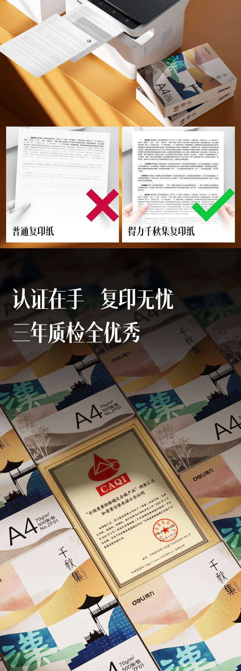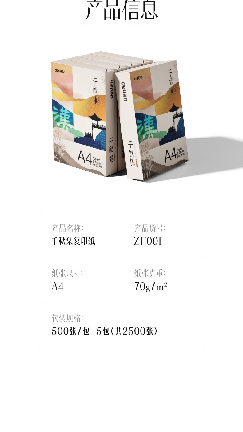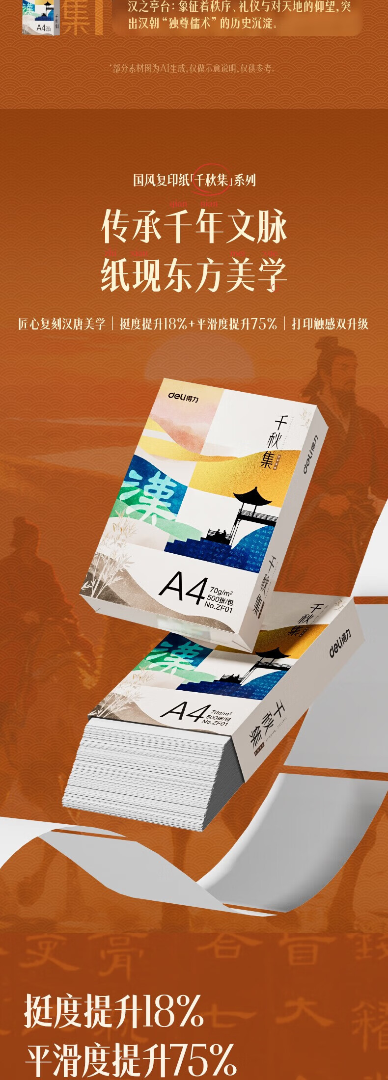 得力(deli)国风·汉A4打印纸 70g克500张5包一箱 双面复印纸 高性价比草稿纸【新品】 【5包/2500张/70g】护眼纸