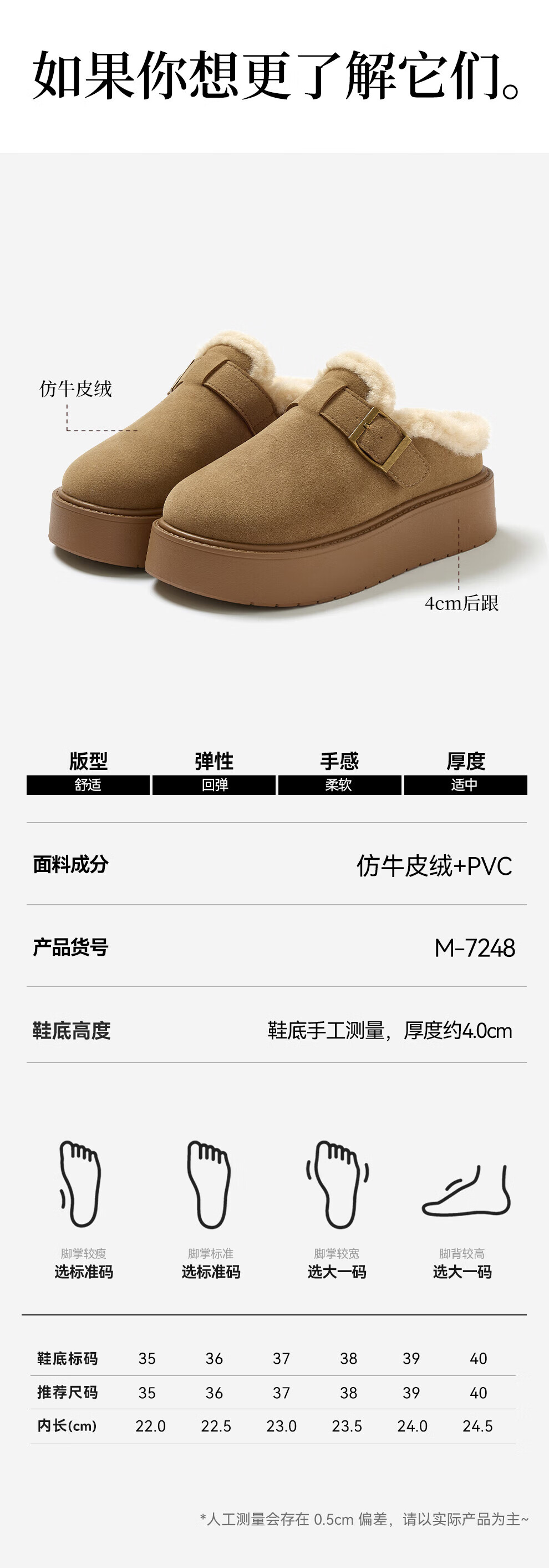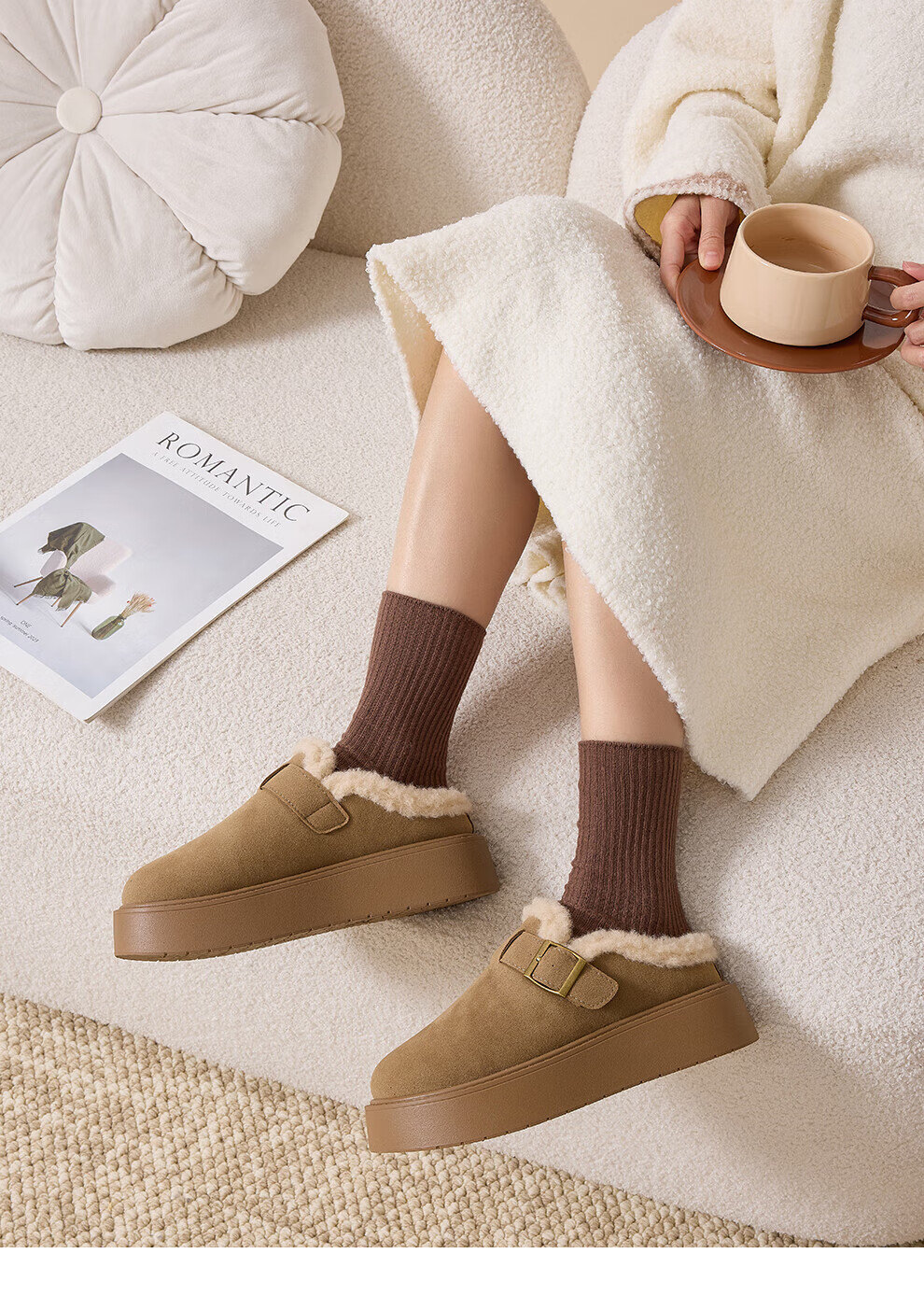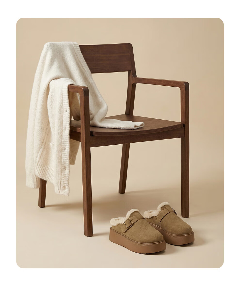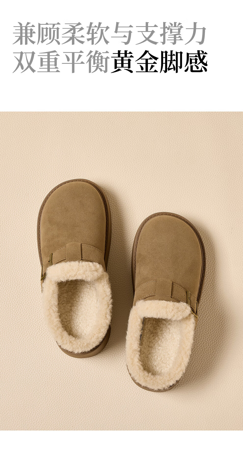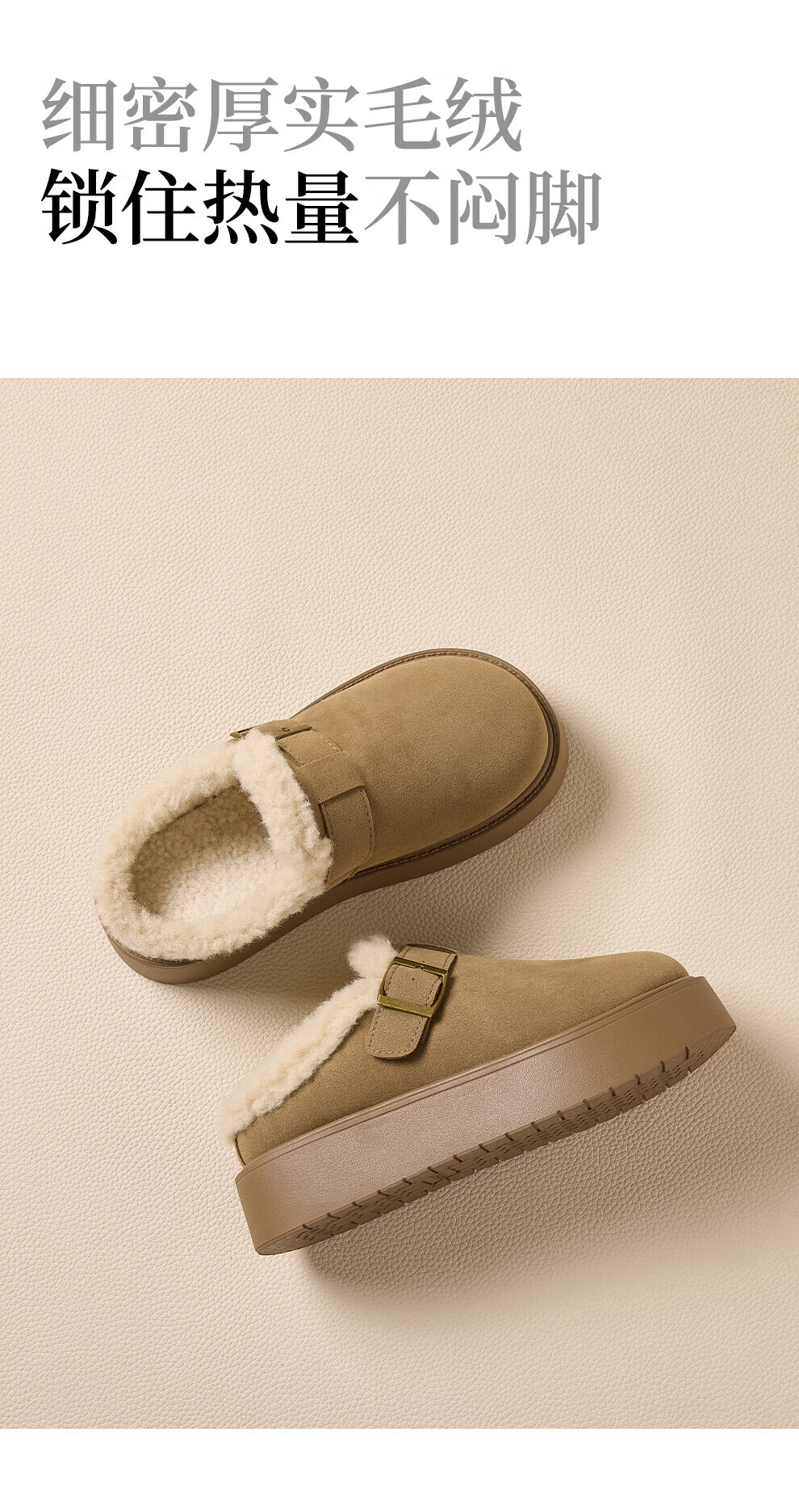 FZT厚底勃肯鞋半拖女外穿2025秋冬季新款加绒增高软底全包毛毛鞋棉鞋 卡其 35 标准码