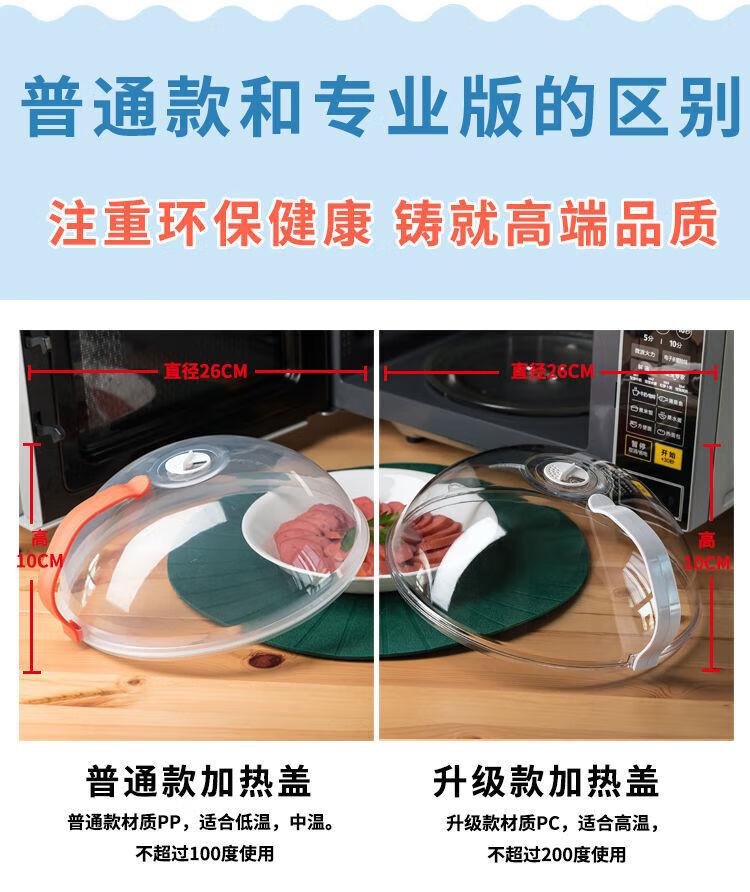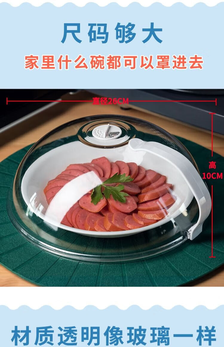 京迭微波炉内加热专用盖防溅防油盖保鲜盖子热饭耐高温通用热菜盘 微波炉盖