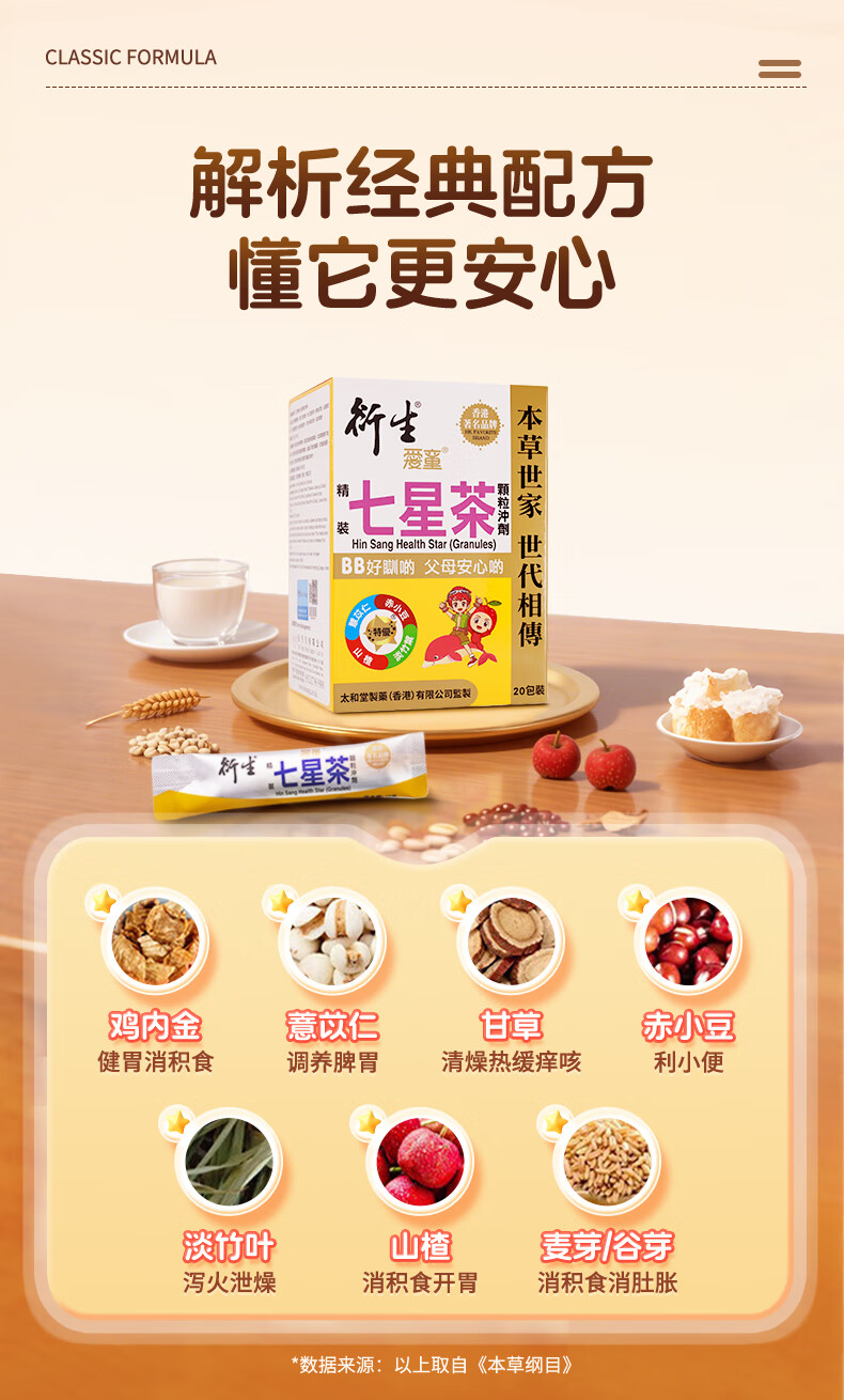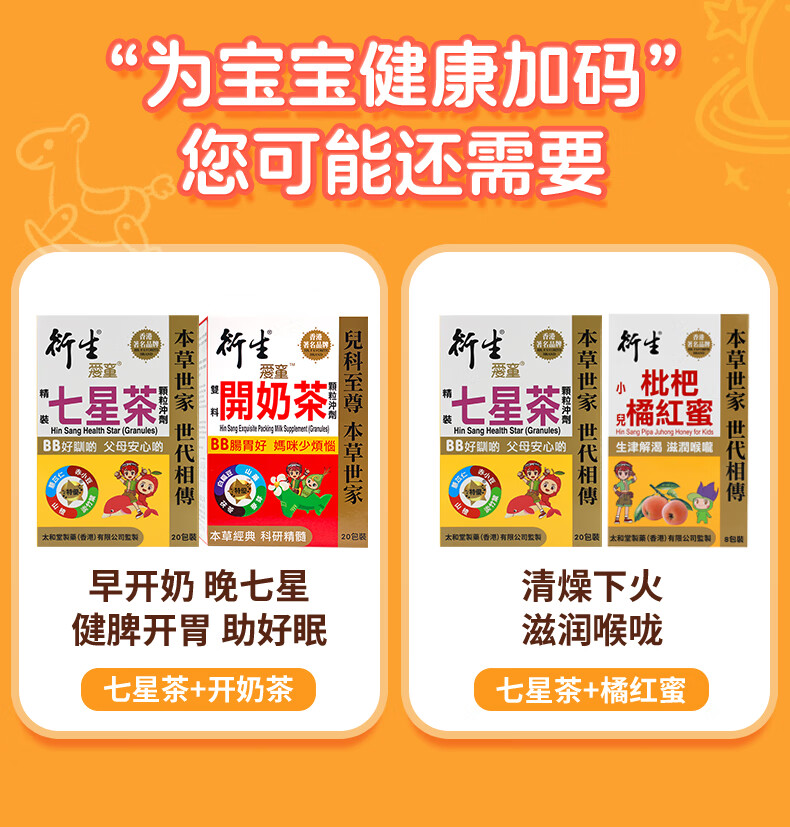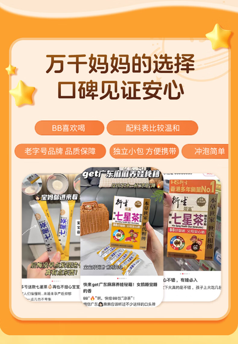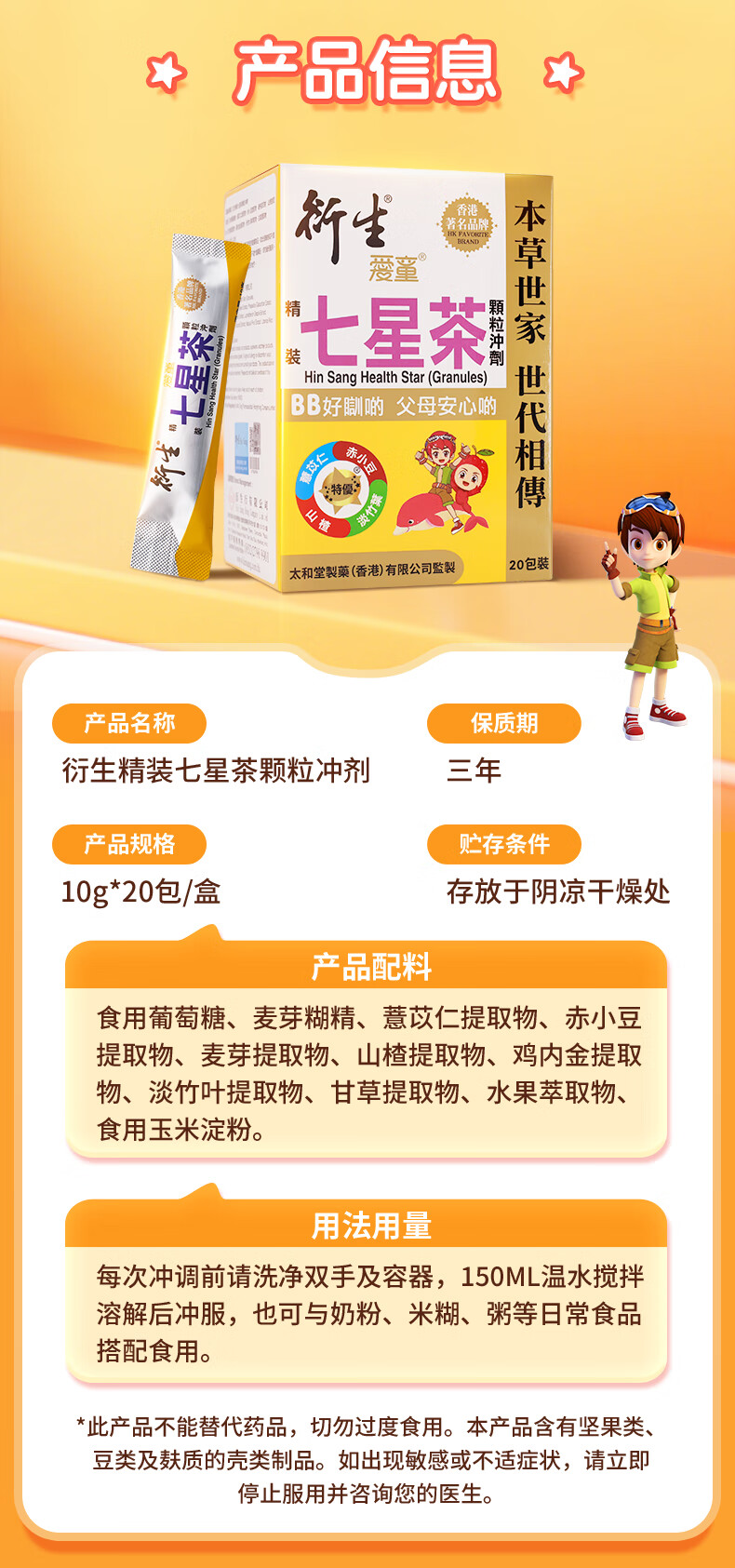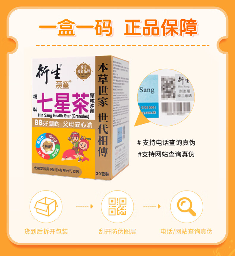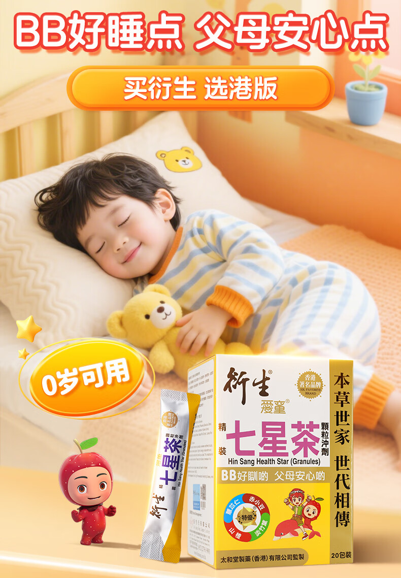 衍生港版七星茶清燥热儿童维生素夜啼睡眠不安稳精装七星茶10g*20包