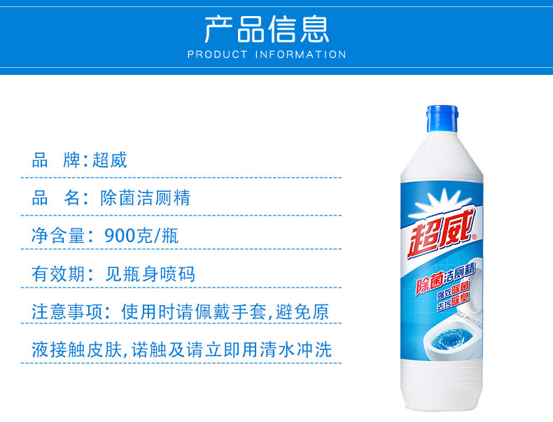 超威除菌洁厕灵900g*2瓶 马桶清洁剂 洁厕液 厕所清洁剂 去污除臭