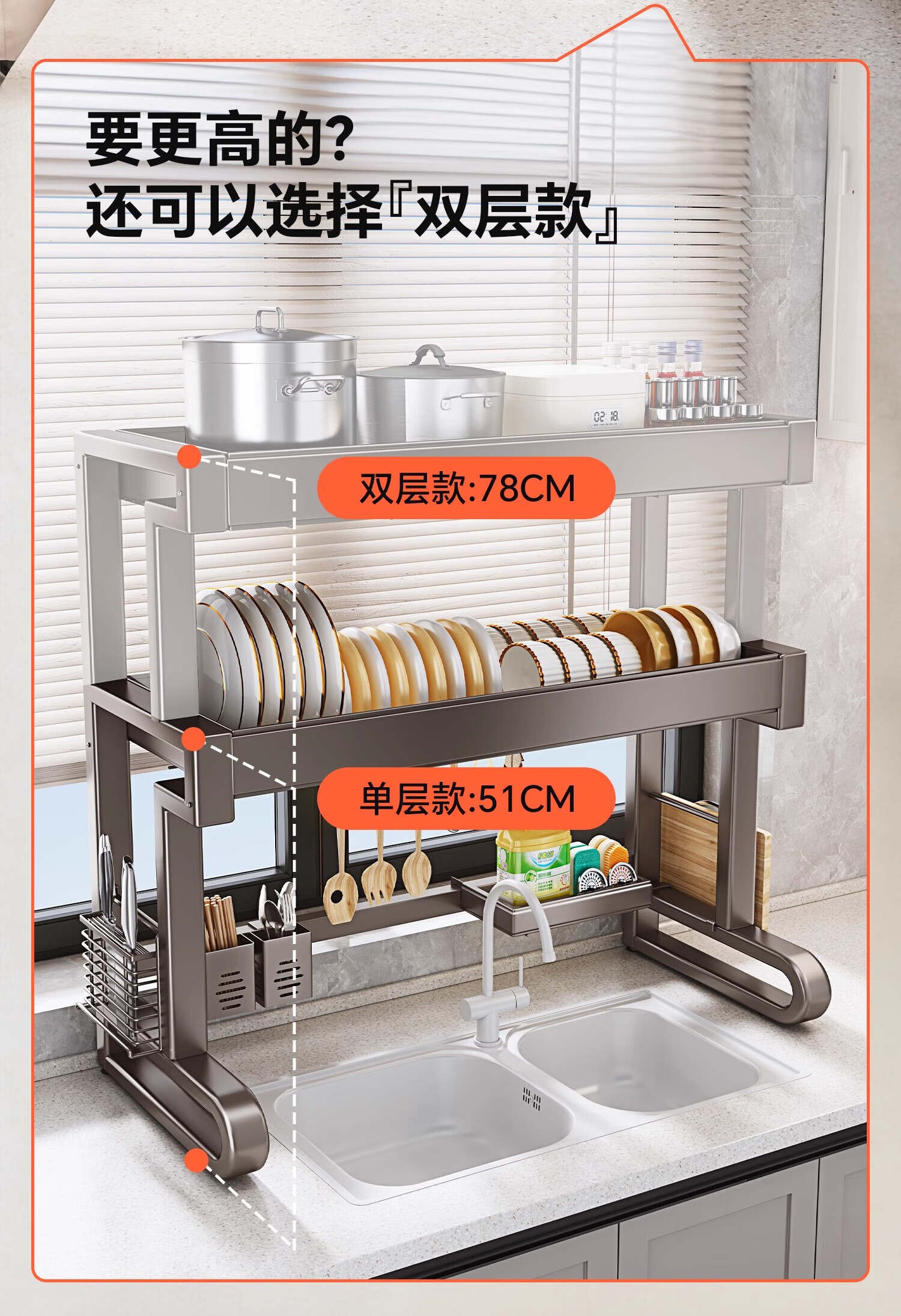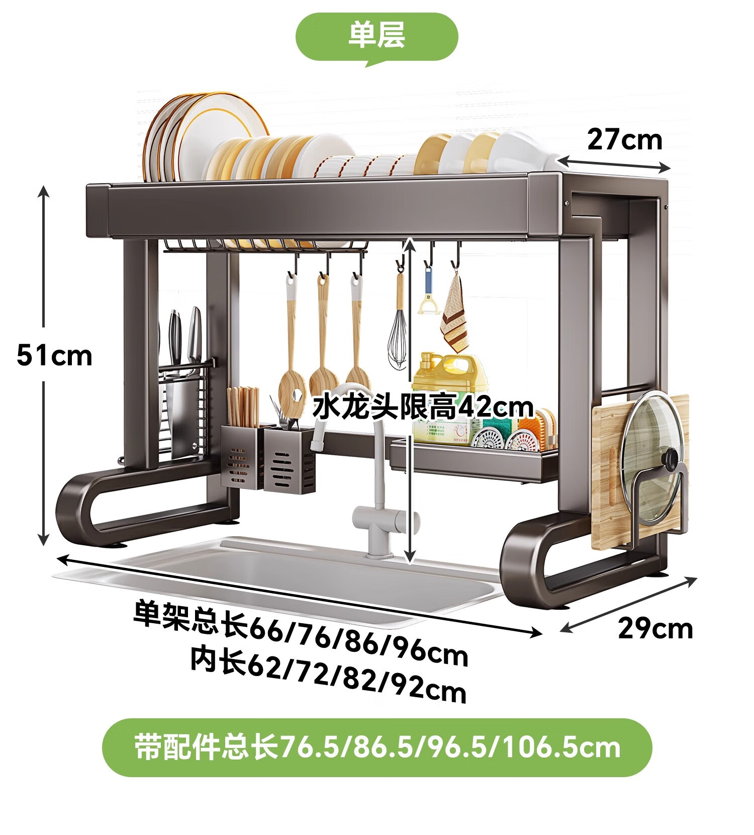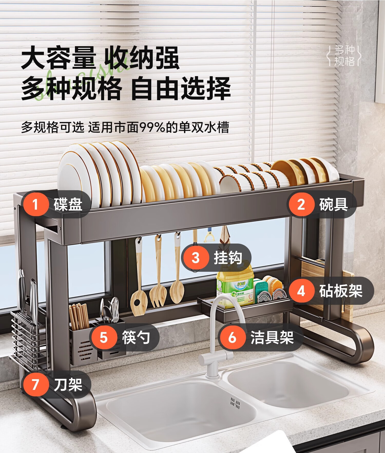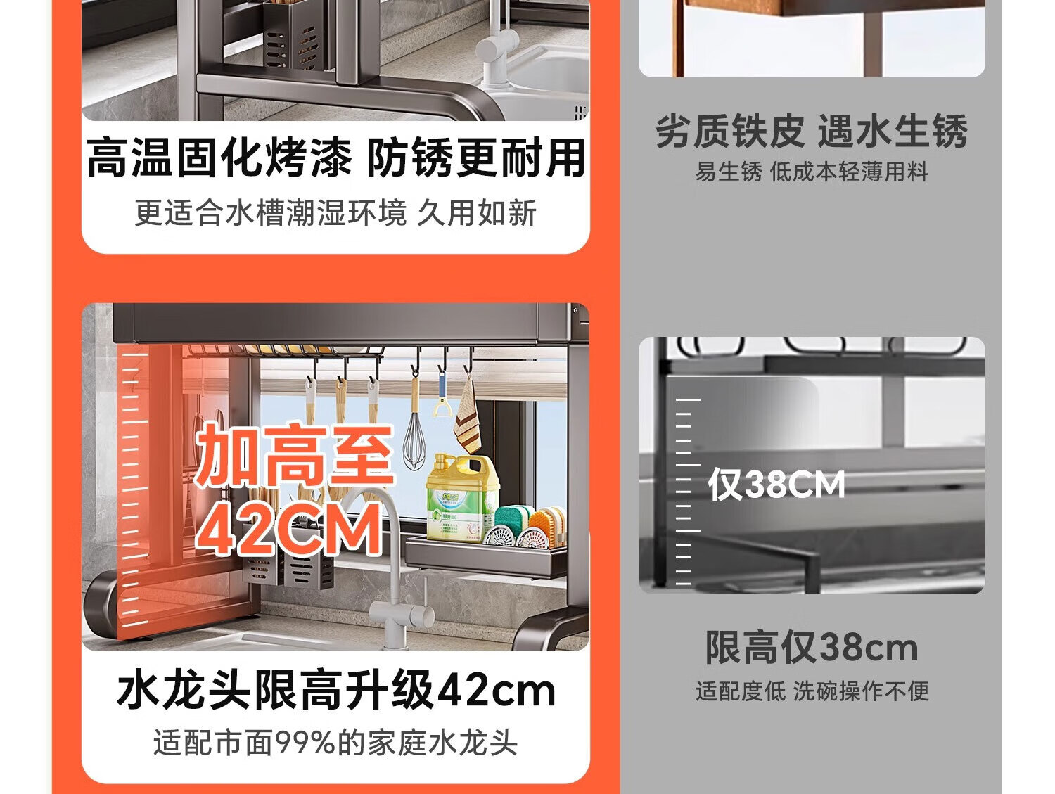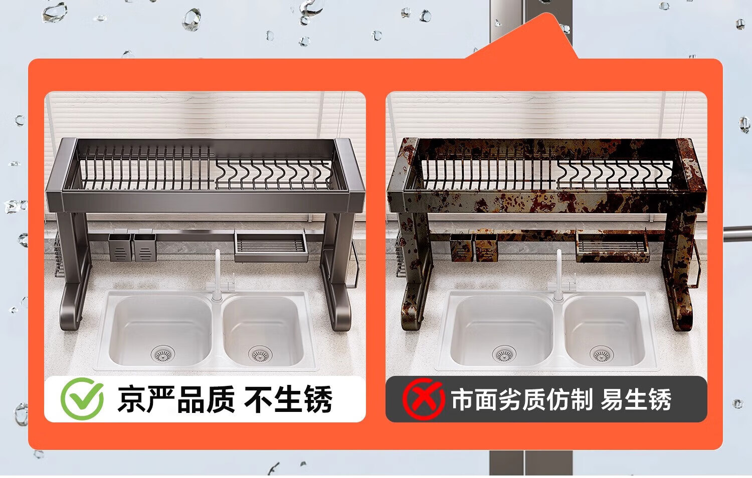 京严厨房水槽置物架水池沥水架碗碟架洗碗池收纳架多功能吸盘搁物架