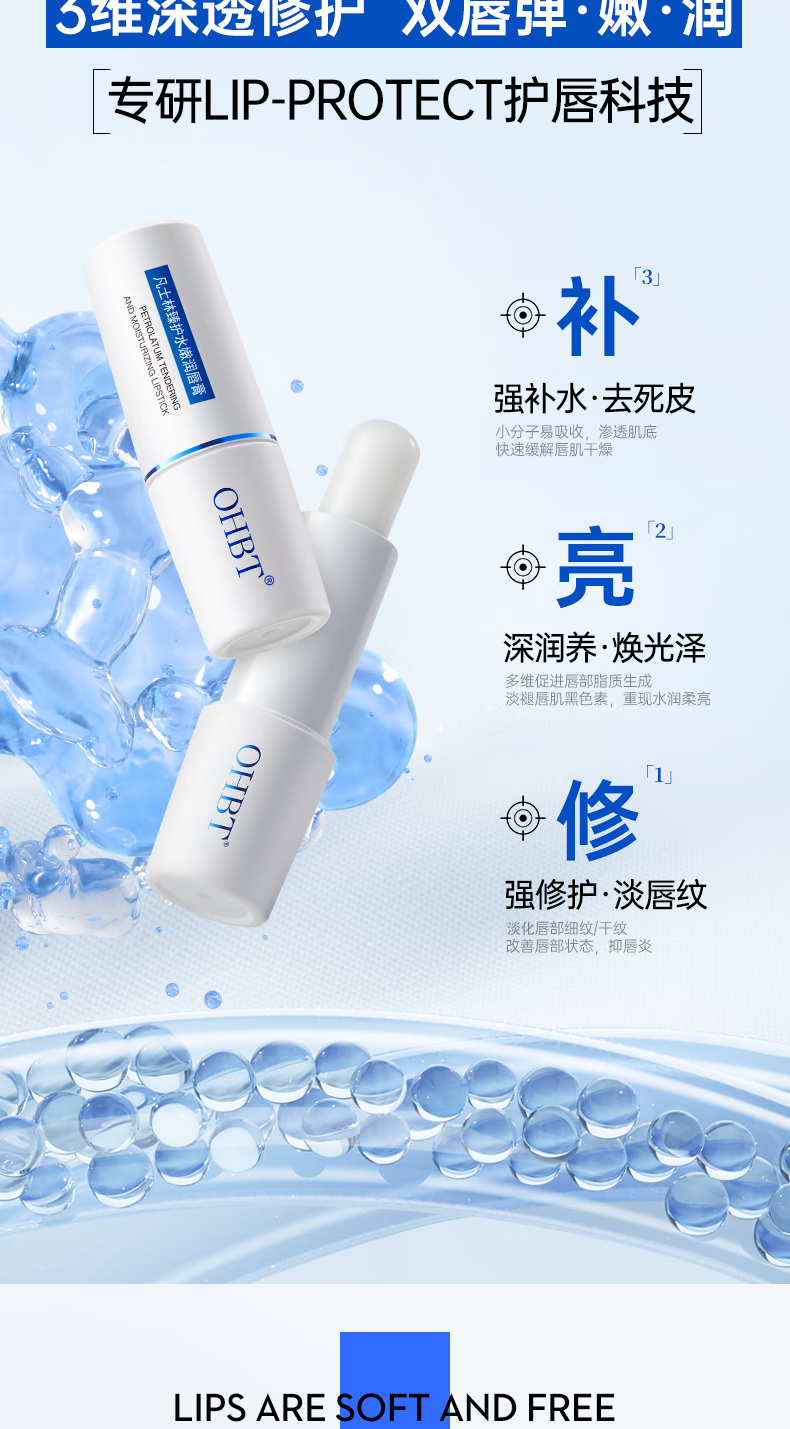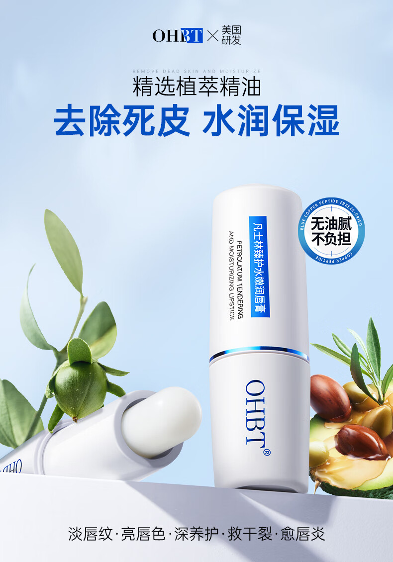 OHBT凡士林润唇膏男女士补水保湿滋润嘴唇防干裂去死皮淡唇纹修护唇炎