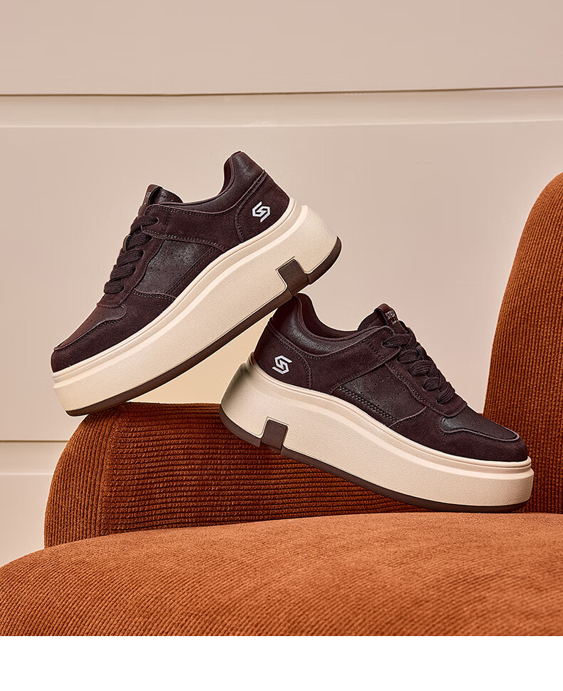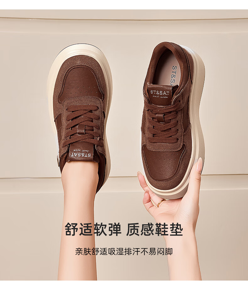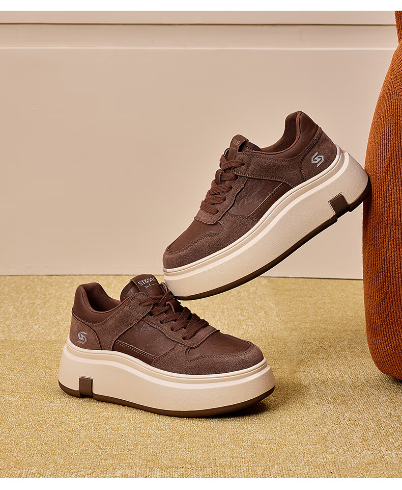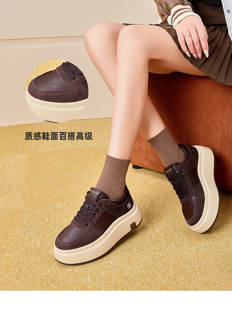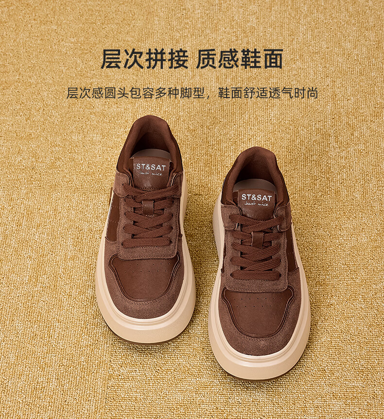 星期六(St&Sat)星期六时尚增高美拉德时尚休闲鞋女2025新款潮流复古圆头厚底板鞋 棕色 35