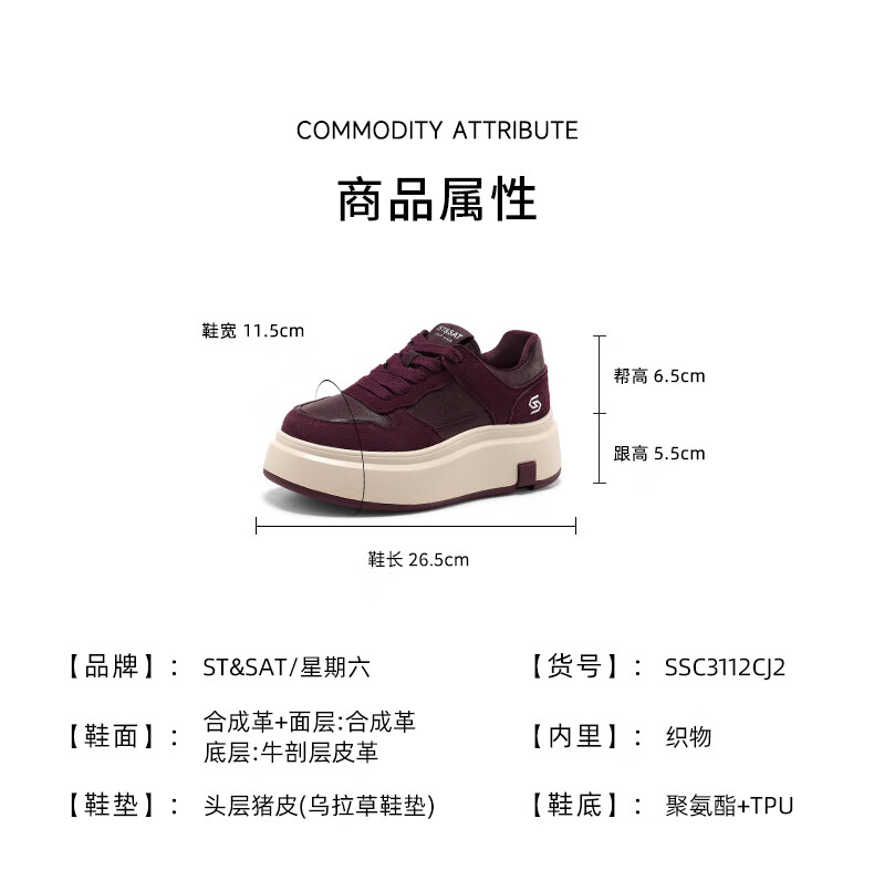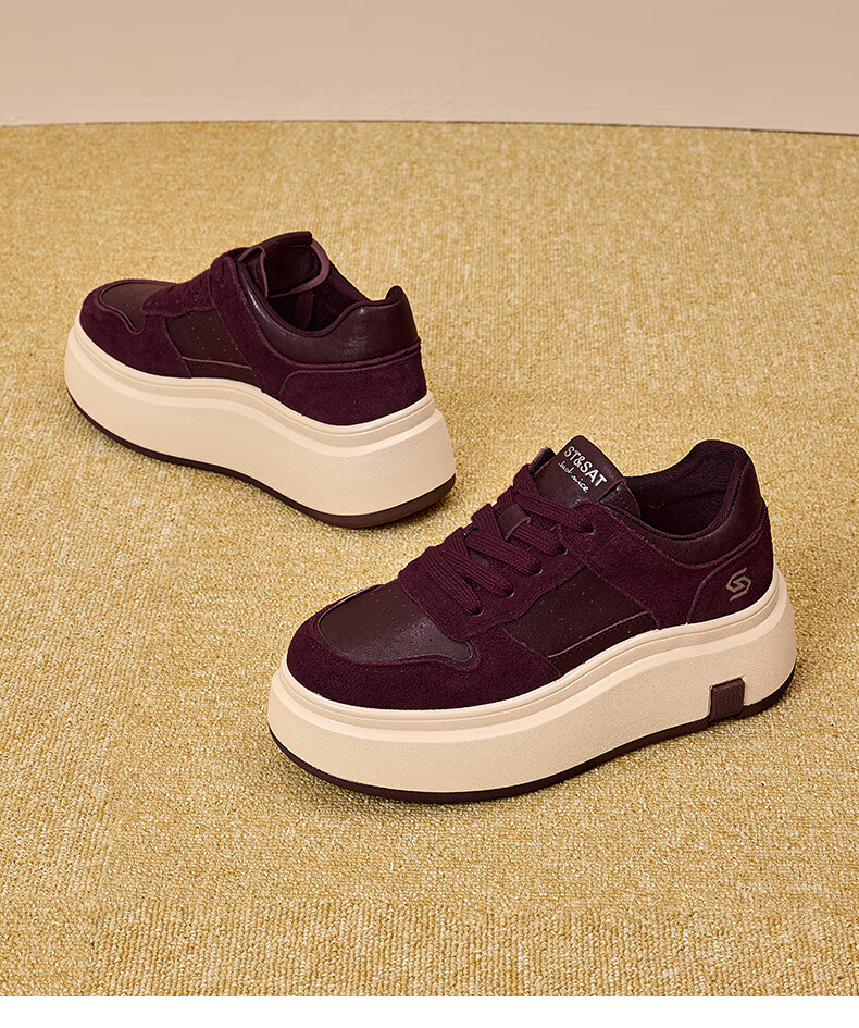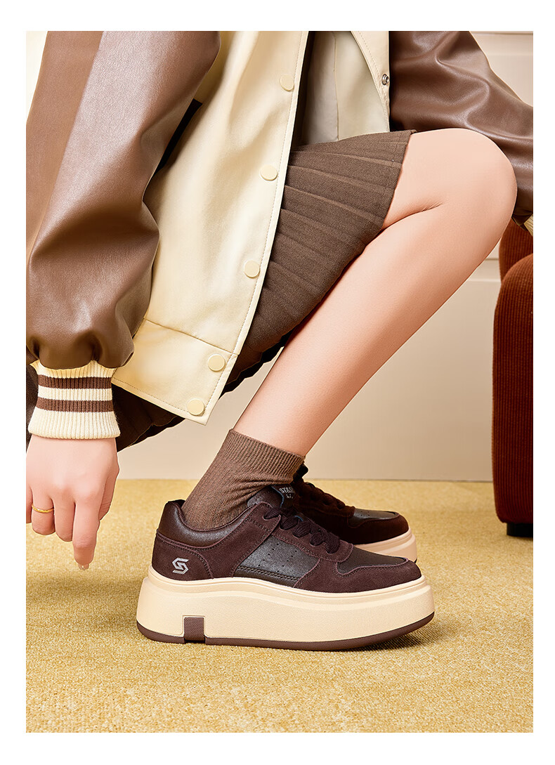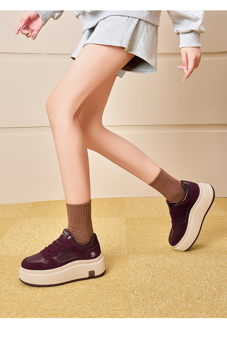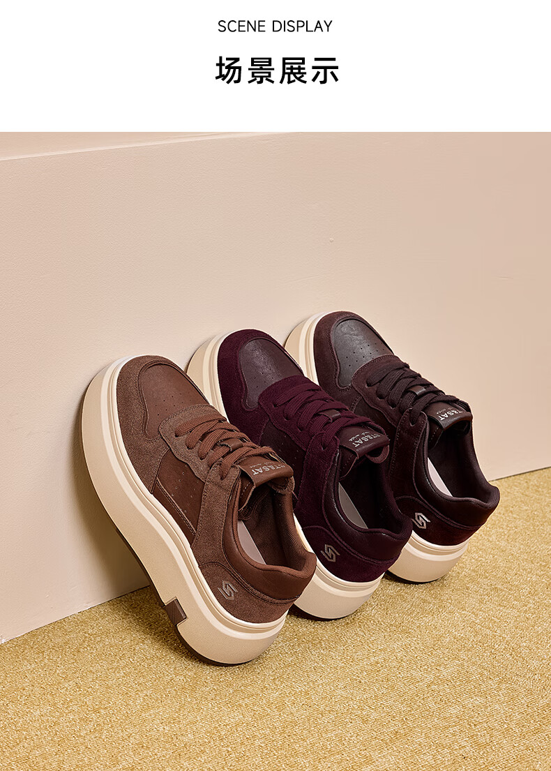 星期六(St&Sat)星期六时尚增高美拉德时尚休闲鞋女2025新款潮流复古圆头厚底板鞋 棕色 35