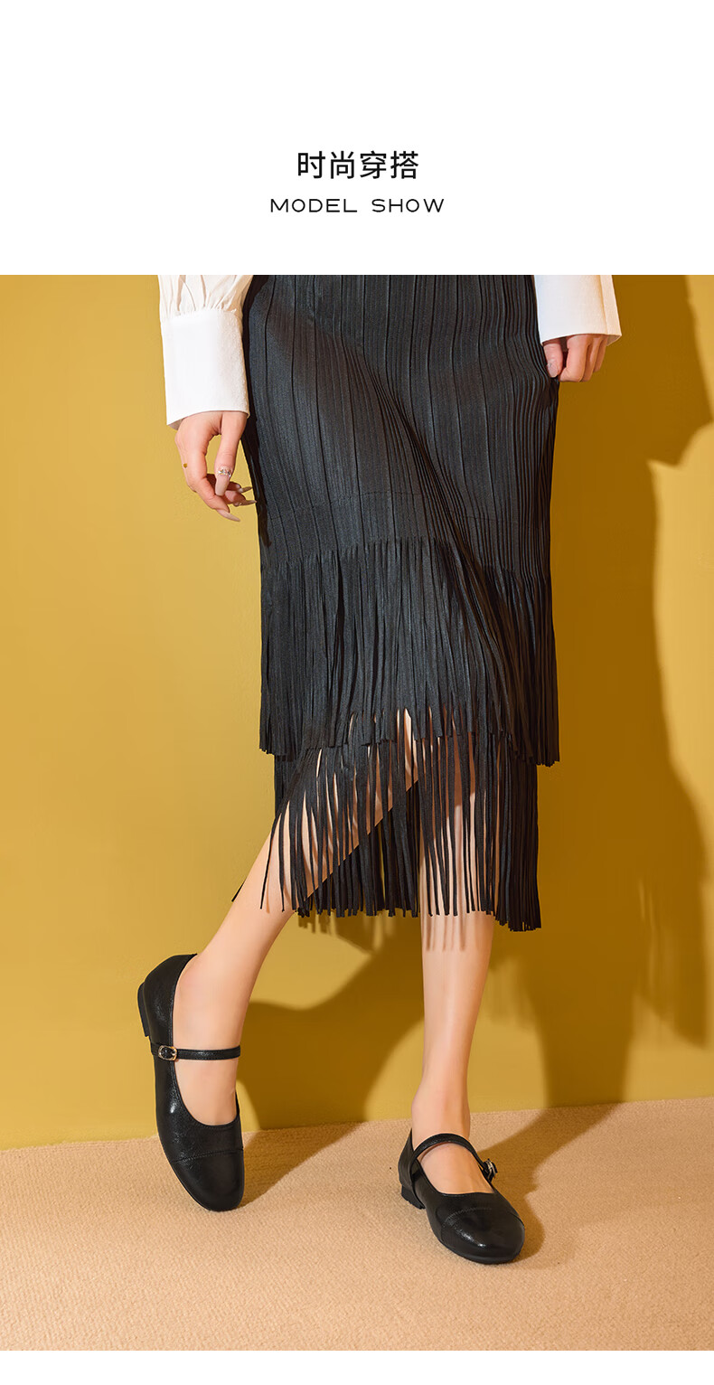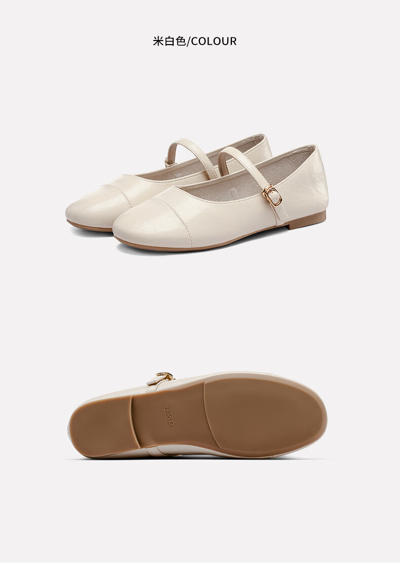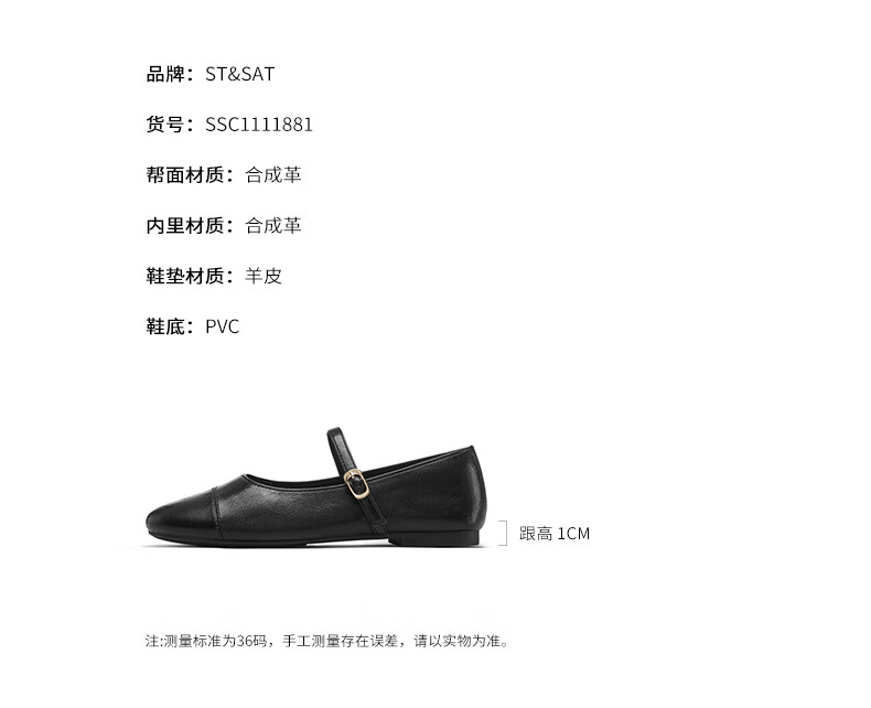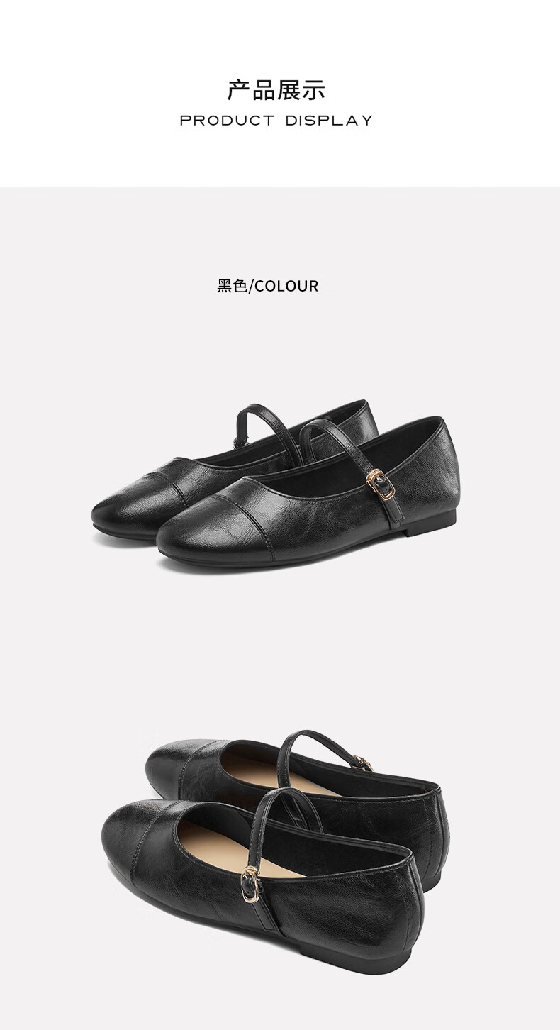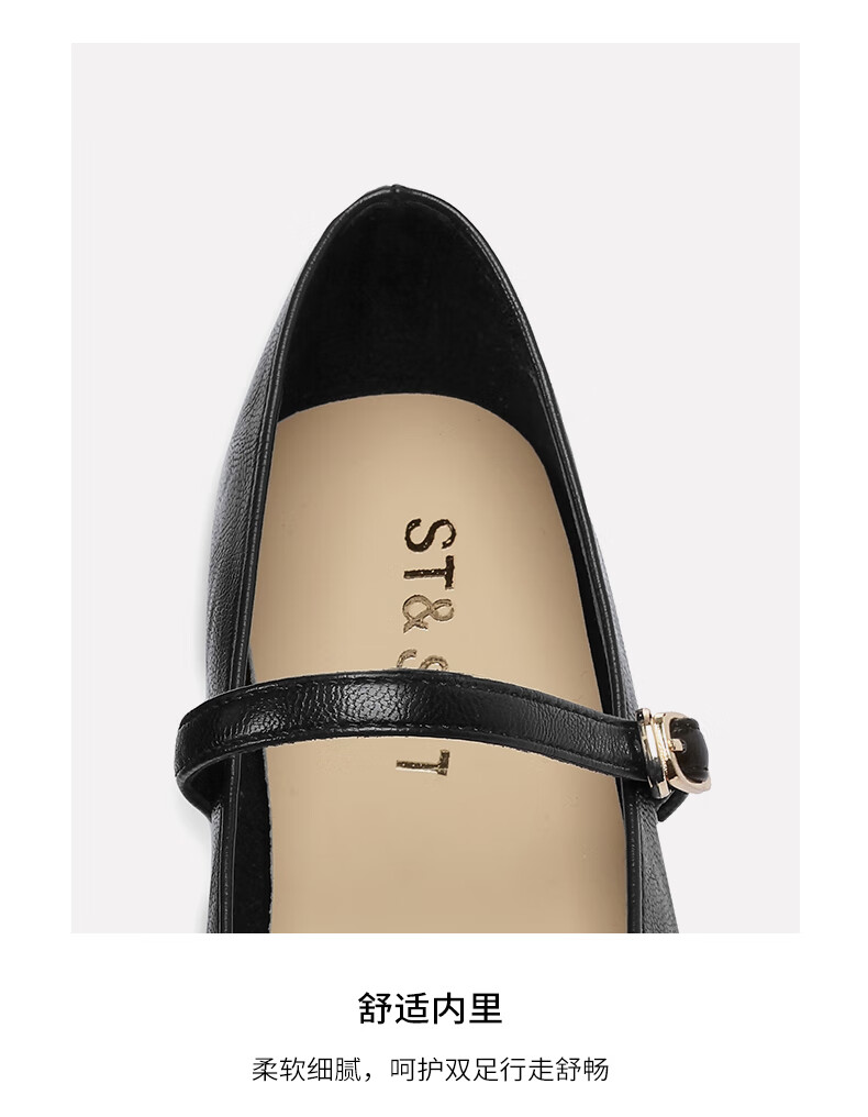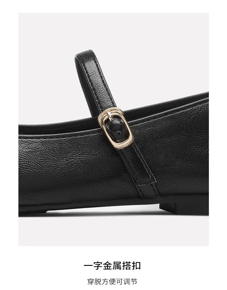 星期六平底纯色复古时装鞋2025秋季新款粗跟一字扣休闲单鞋女 黑色 37