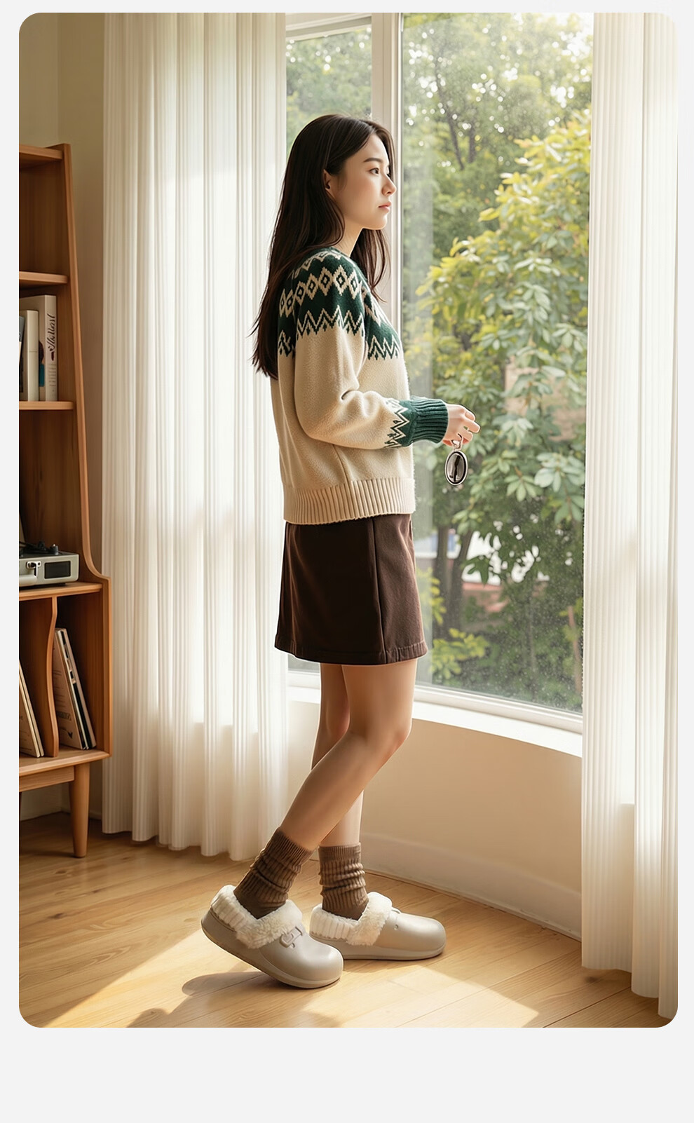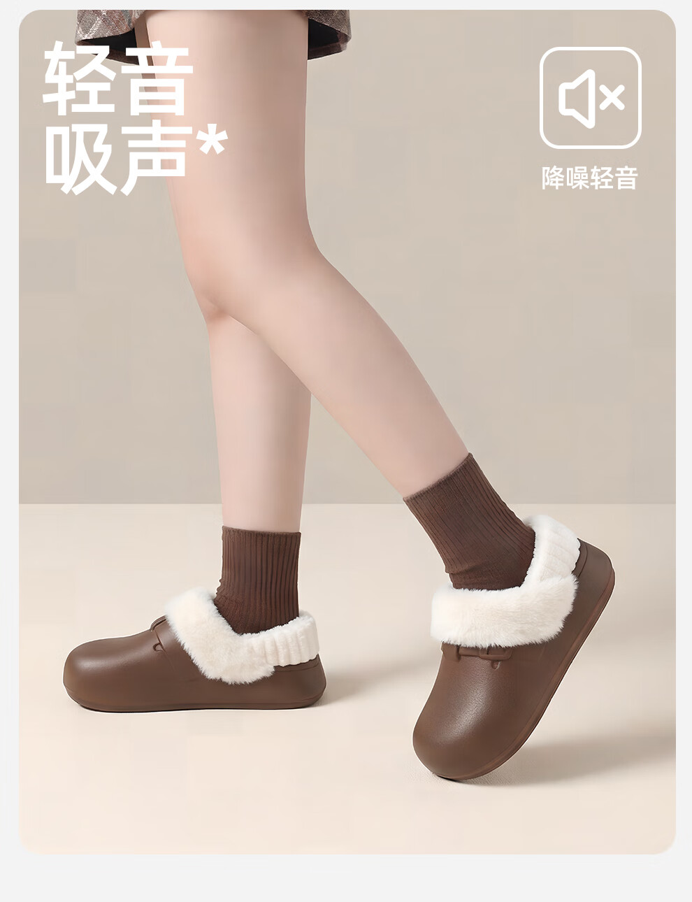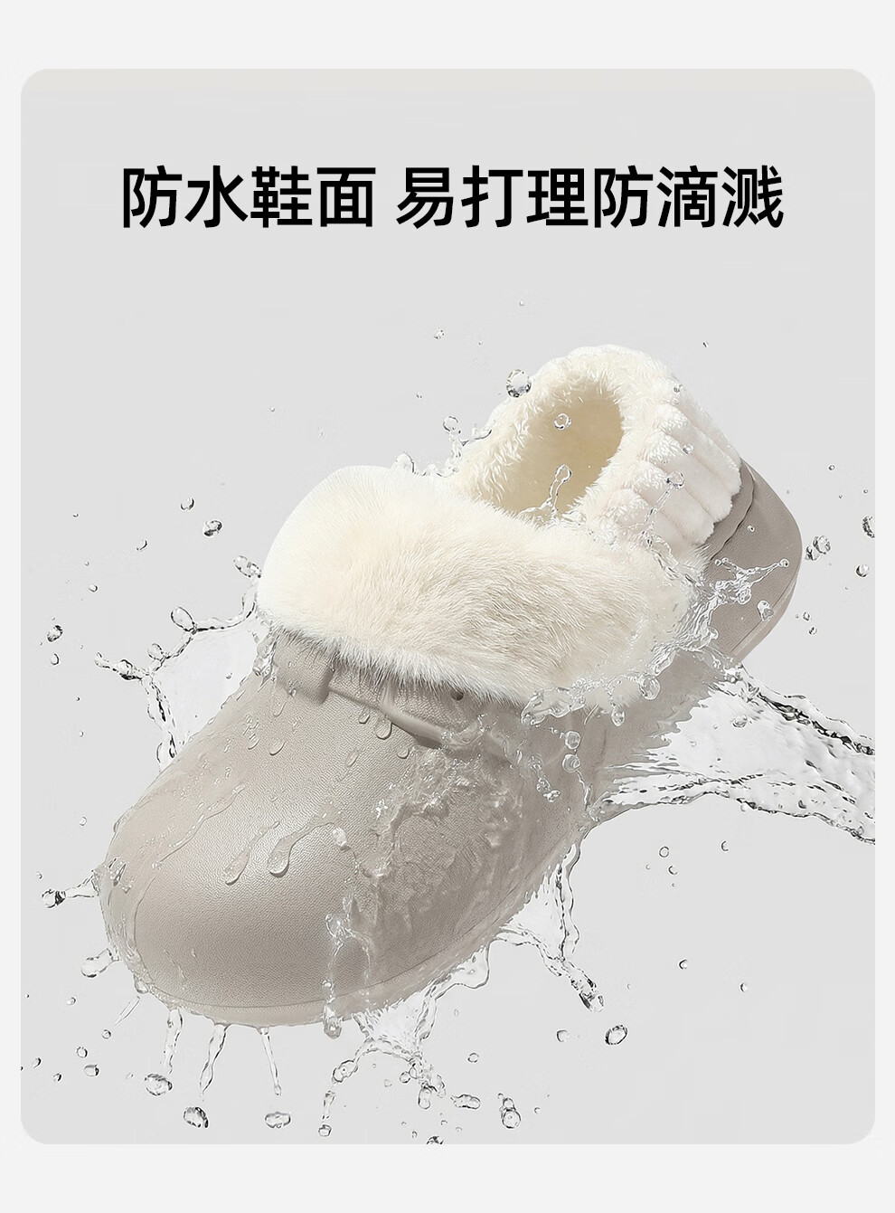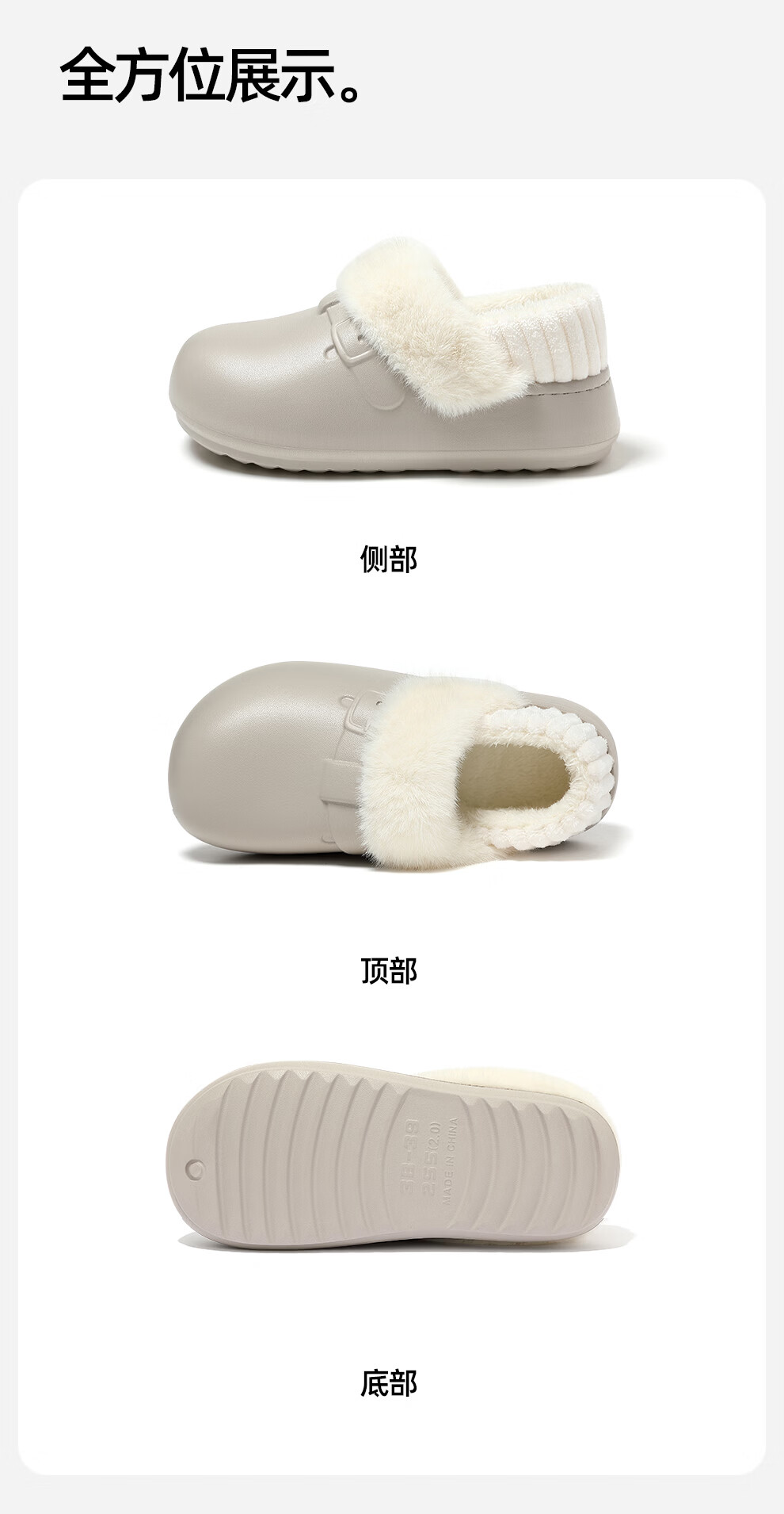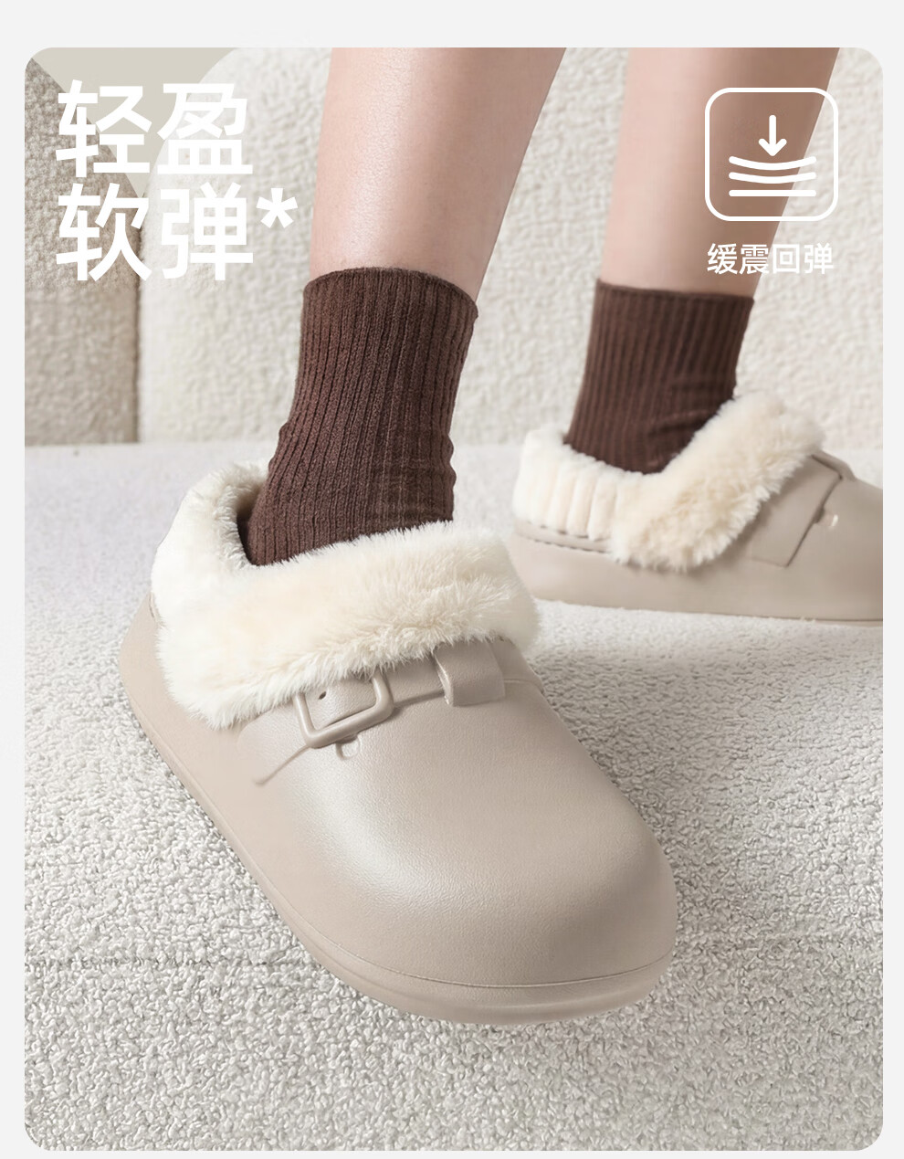 FZT包根雪地靴棉拖鞋女2025冬季新款厚底防滑带毛绒休闲鞋棉拖鞋男 浅卡其 36-37 标准码【内长225mm】