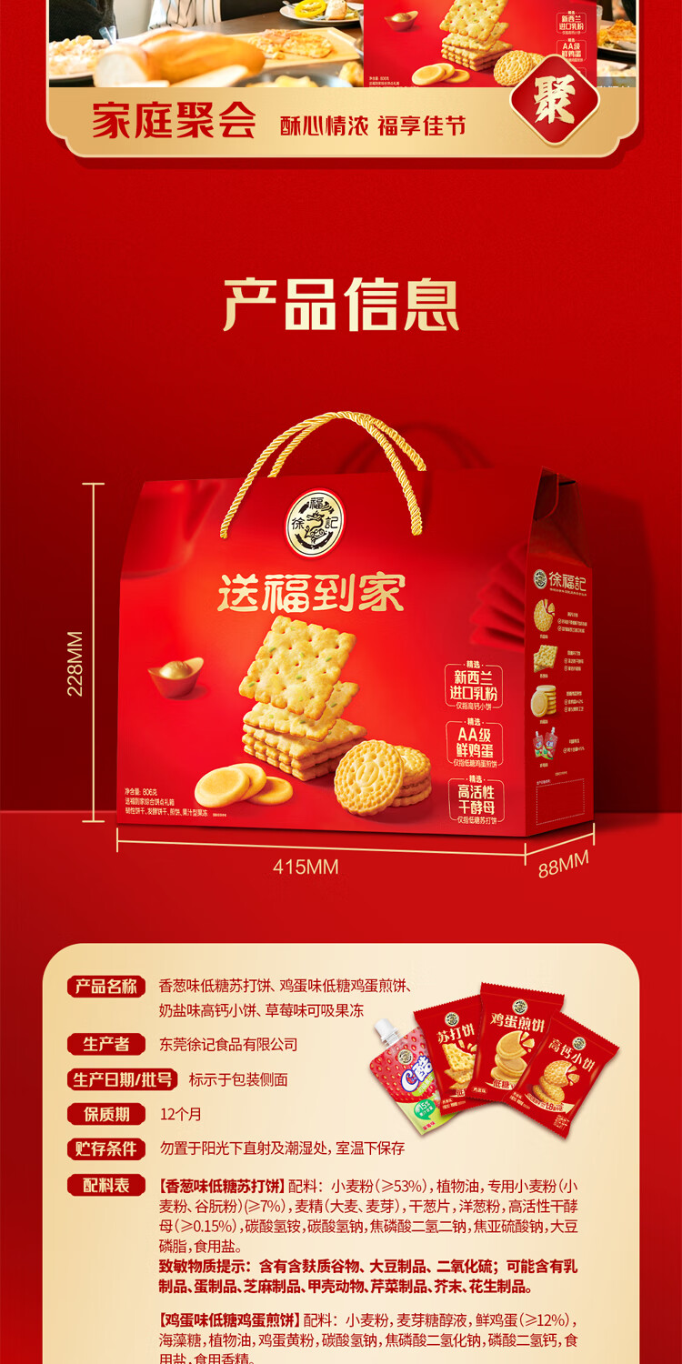 徐福记年货礼盒送礼 多口味混合饼干礼盒 休闲零食饼干糕点新年团购 【内含4款】送福到家806g