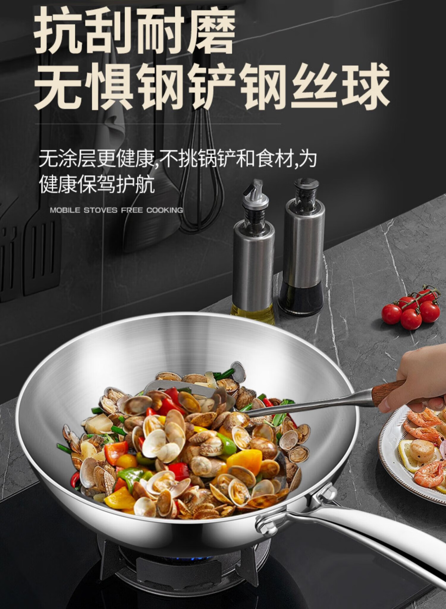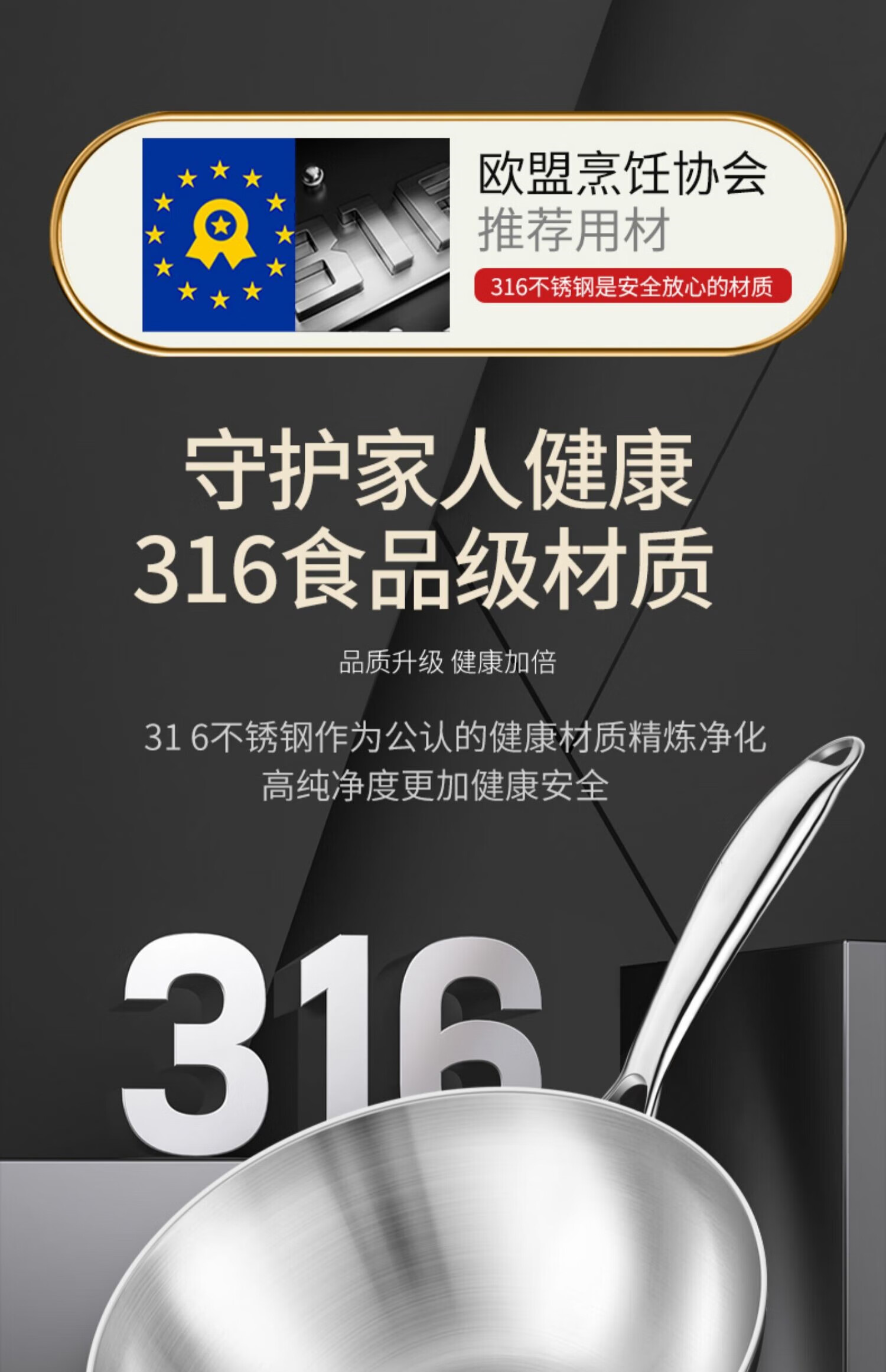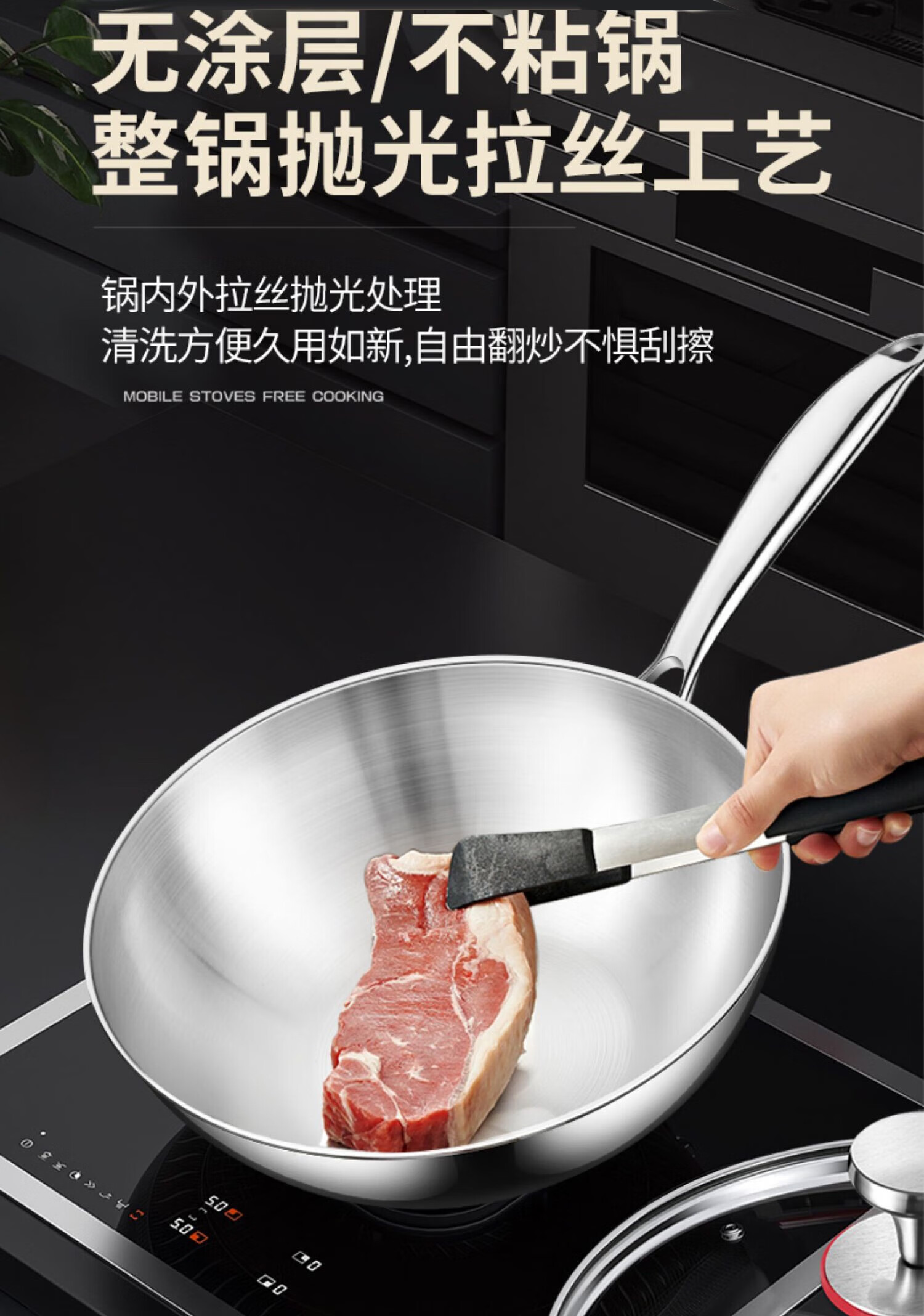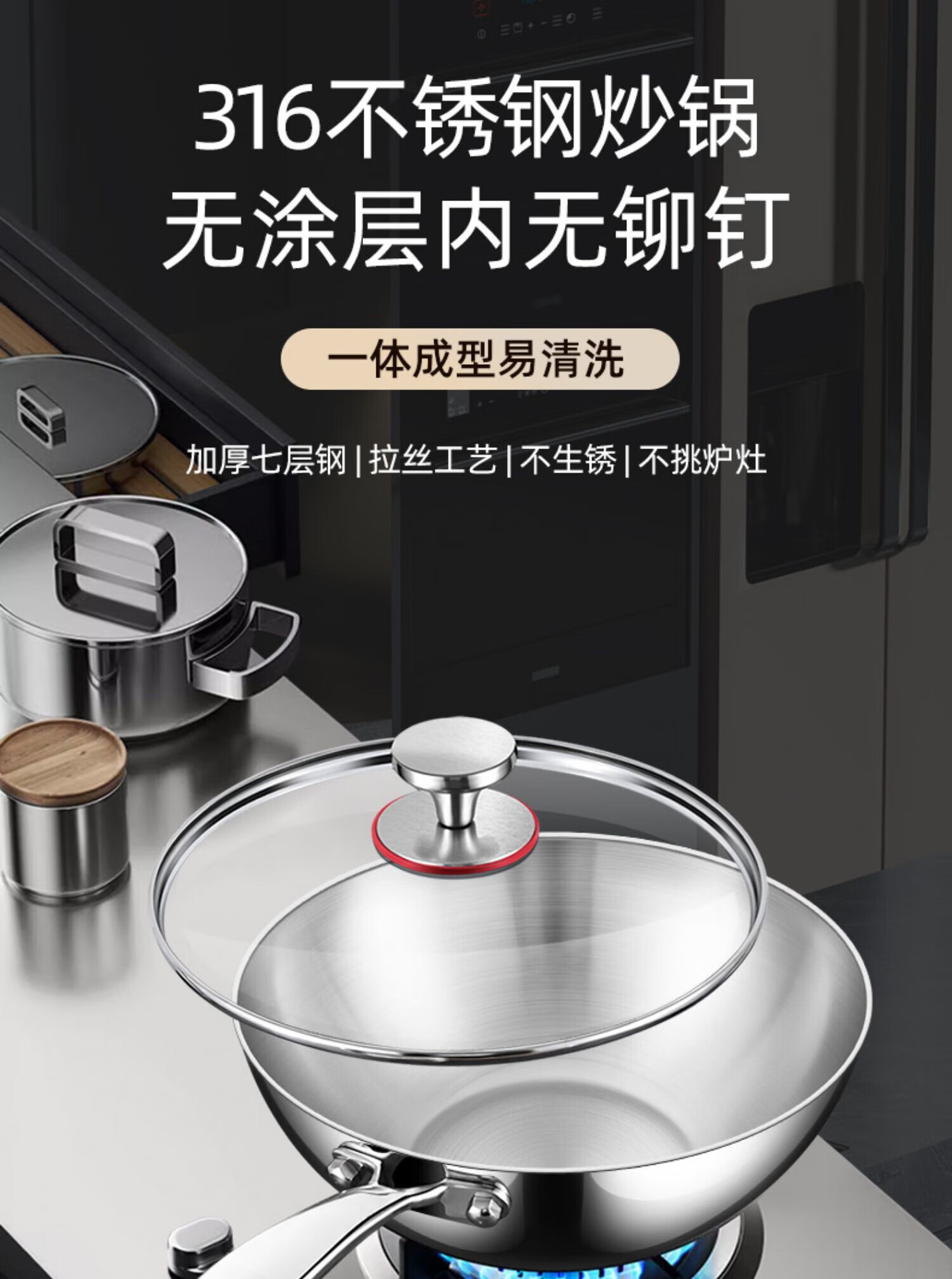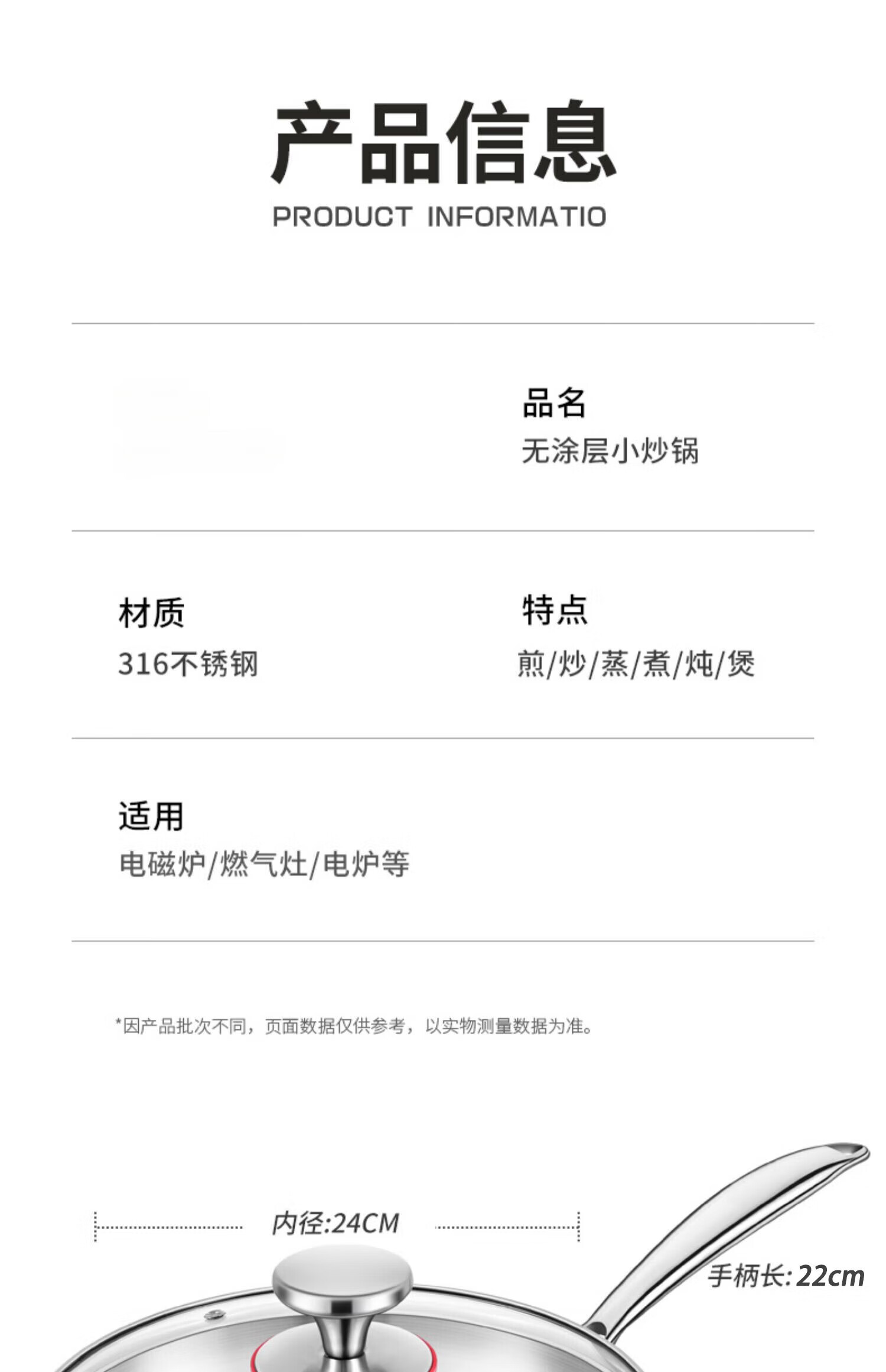 双立人德国进口高端同款品质无涂层小炒锅不锈钢家用316L食品级平底 炒锅带盖 26cm