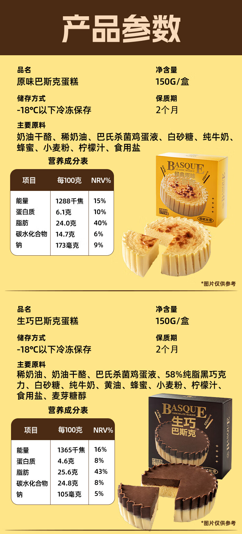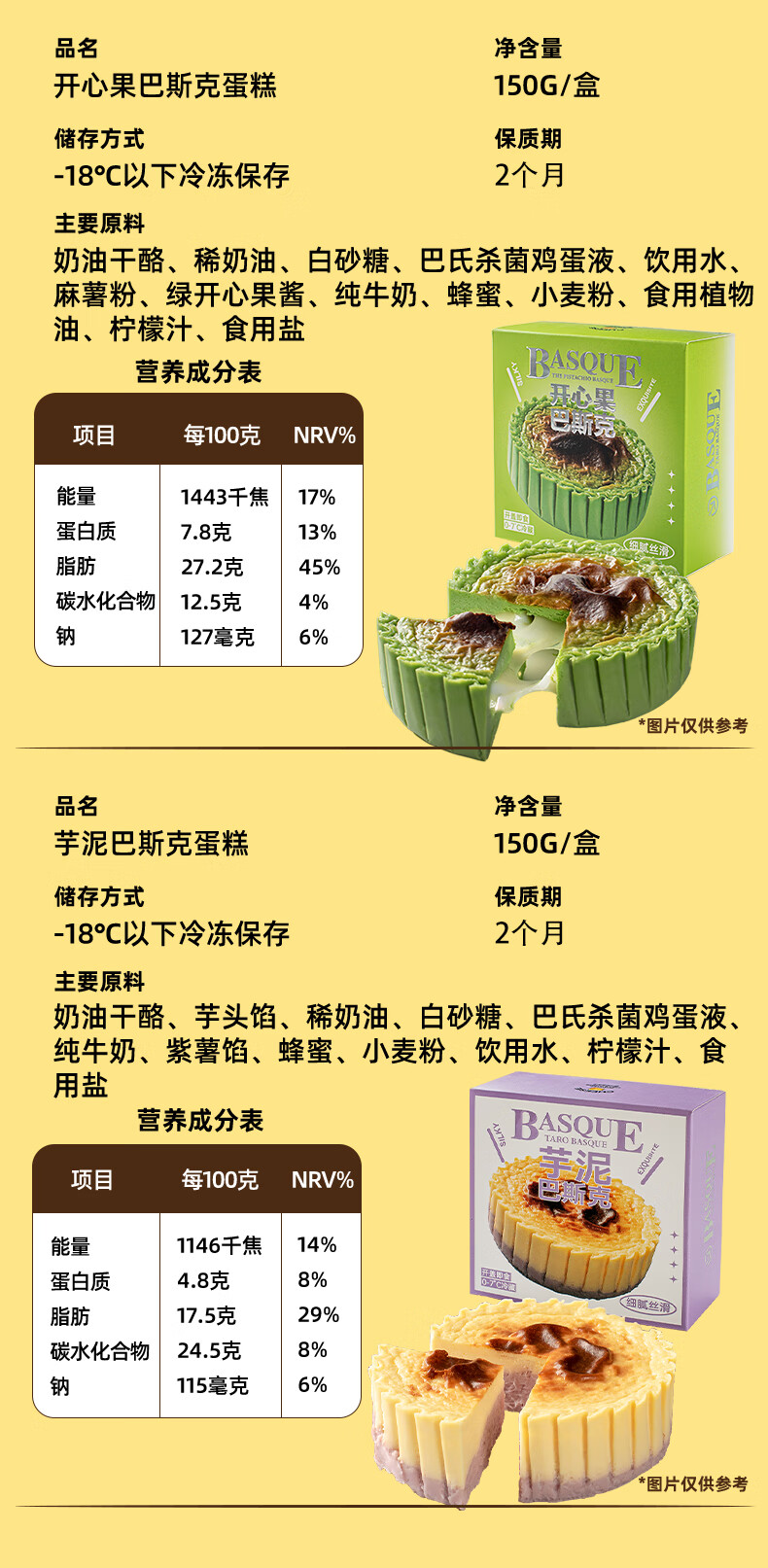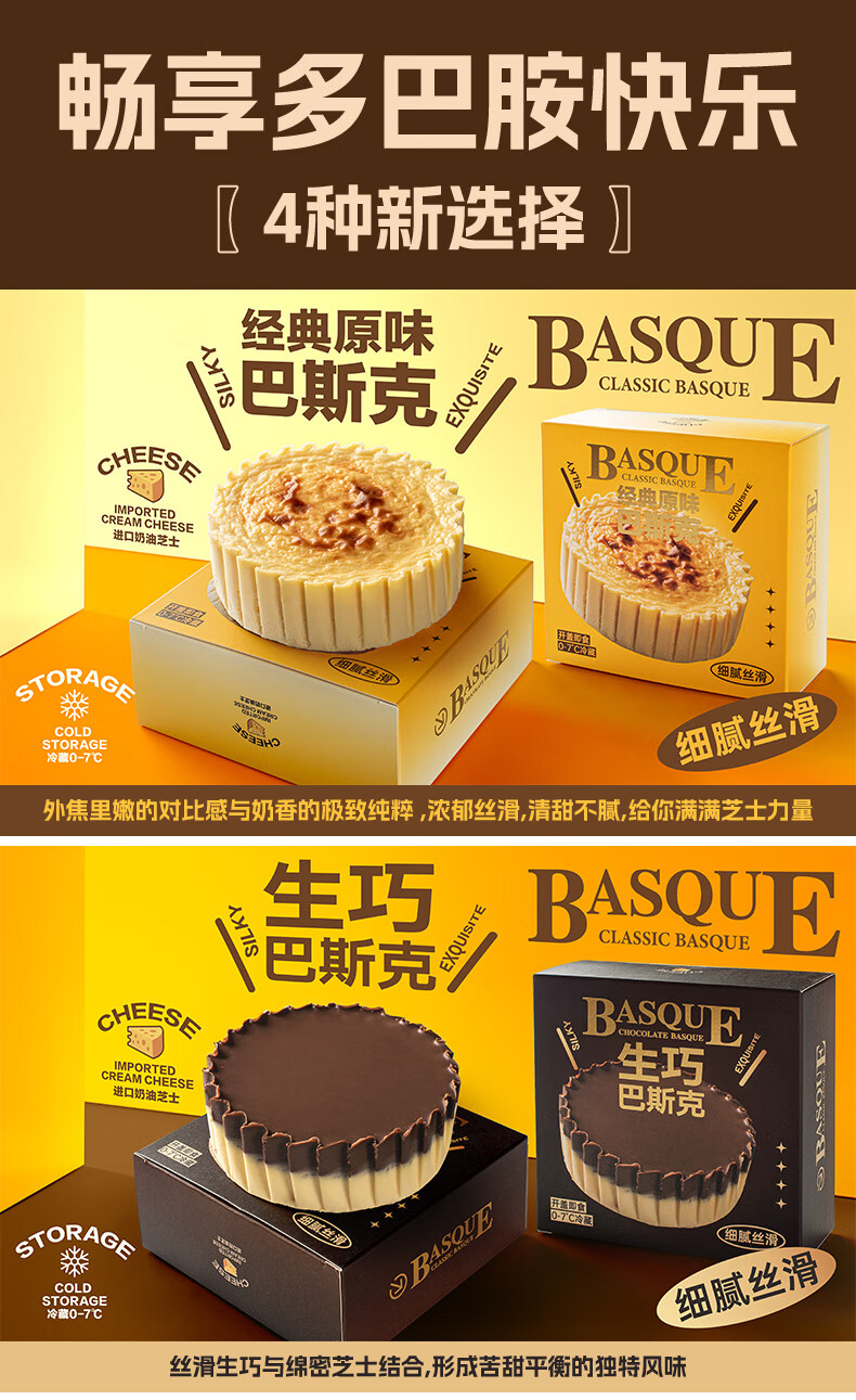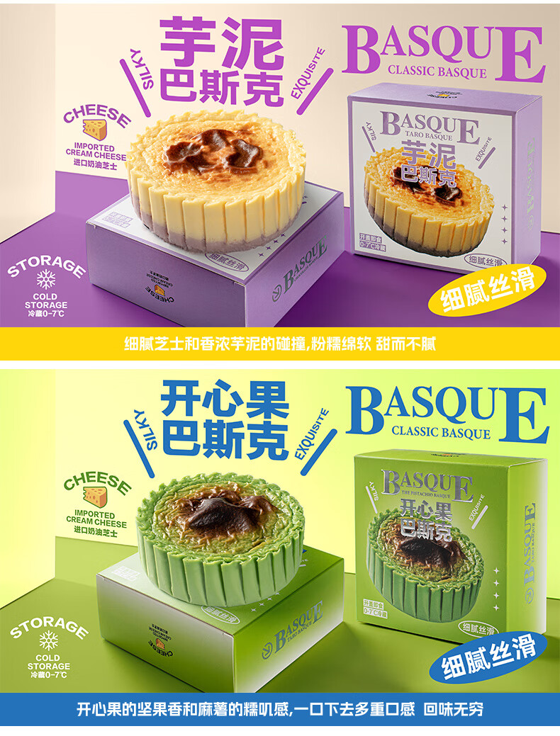 巴斯克奶酪芝士蛋糕网红甜品原味生巧芋泥开心果多口味下午茶 【芋泥+生巧】巴斯克150g*2盒