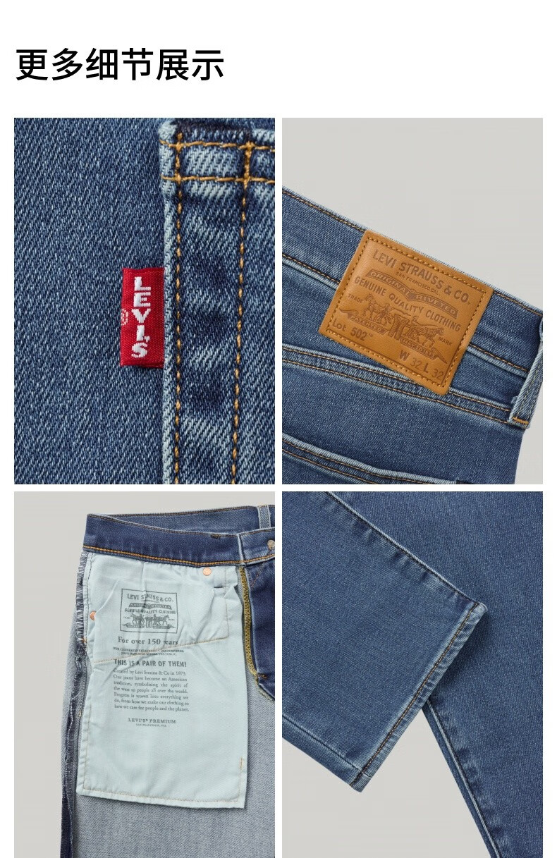 Levi's李维斯冬暖系列男士502锥型美式复古休闲简约水洗牛仔裤 中蓝色 34 (32)