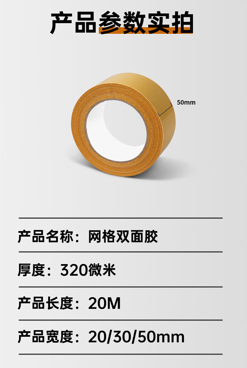 离草布基胶带双面胶强力高粘度 网格双面胶墙面不留痕 加厚贴对联地毯隐形无痕 20mm*20m*320μm1卷