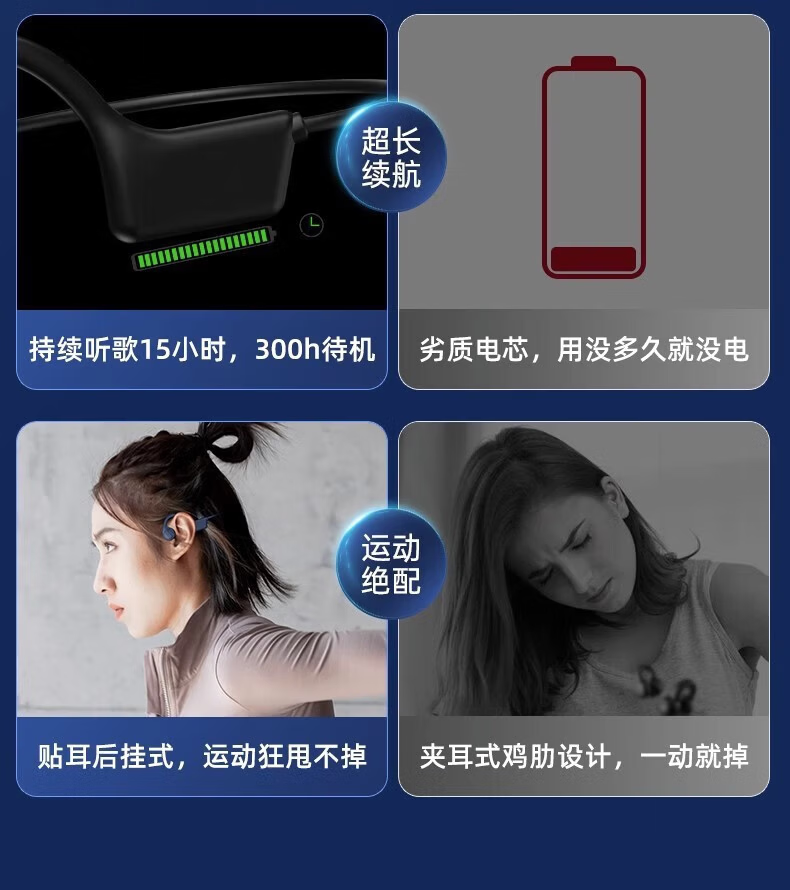 歌玥【优选】无线骨传导蓝牙耳机挂耳式运动适用于华为vivo小米OPPO苹果通 骨传导裸机(不含充电线包装盒