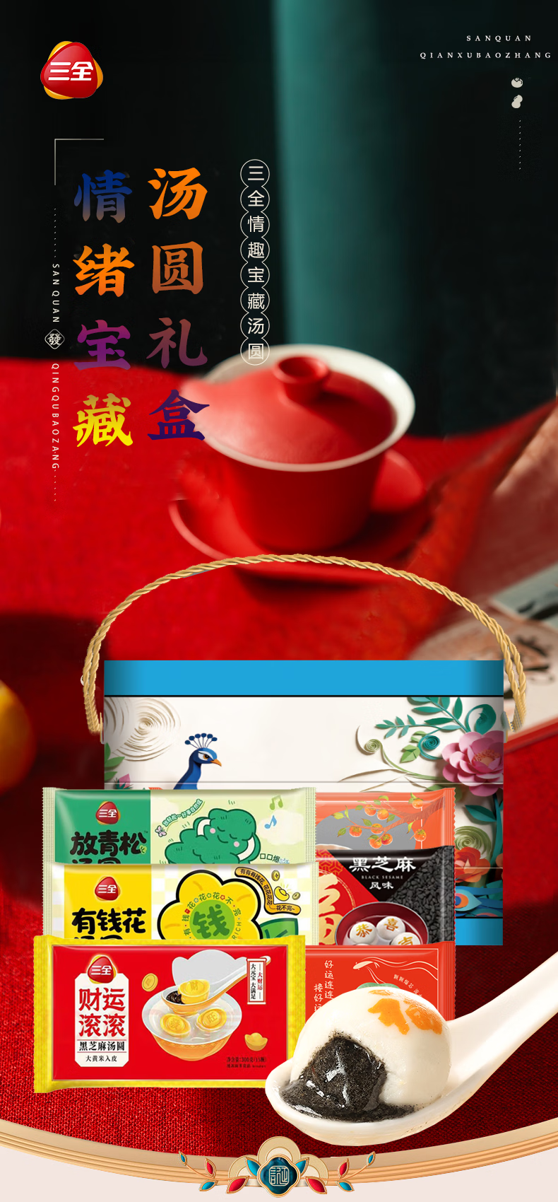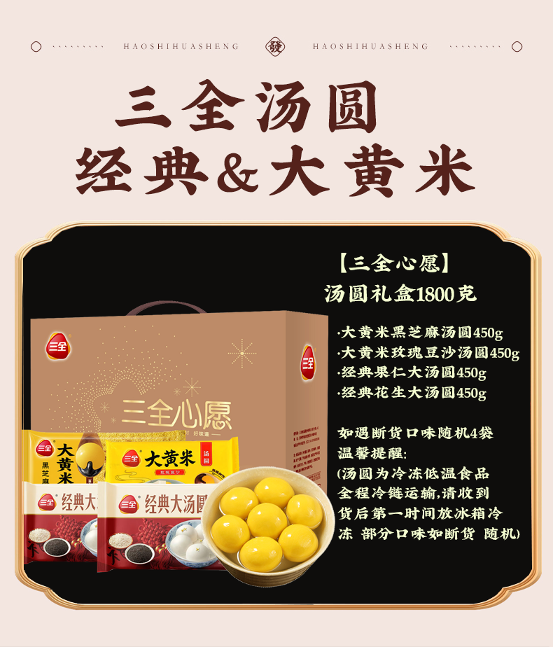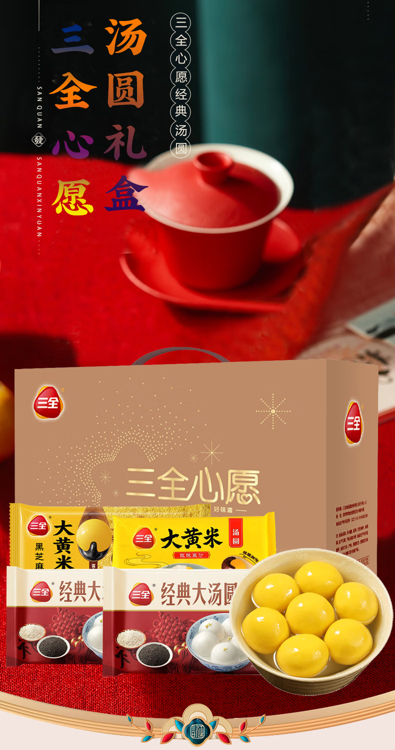 三全汤圆礼盒元宵节大黄米五黑五红食养汤圆多种口味年货礼盒 心愿汤圆礼盒1800g