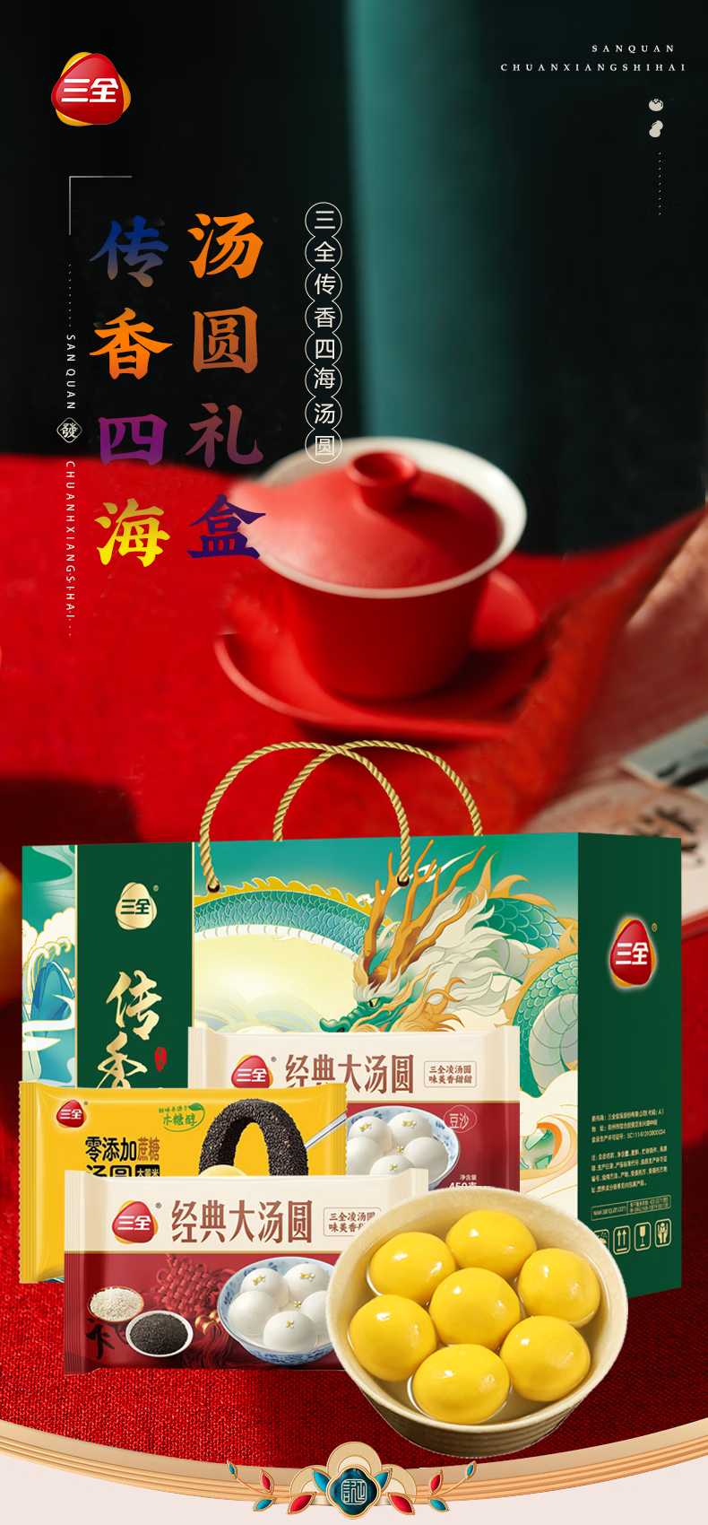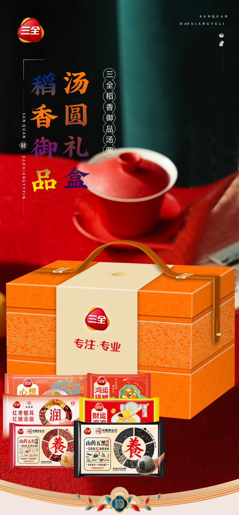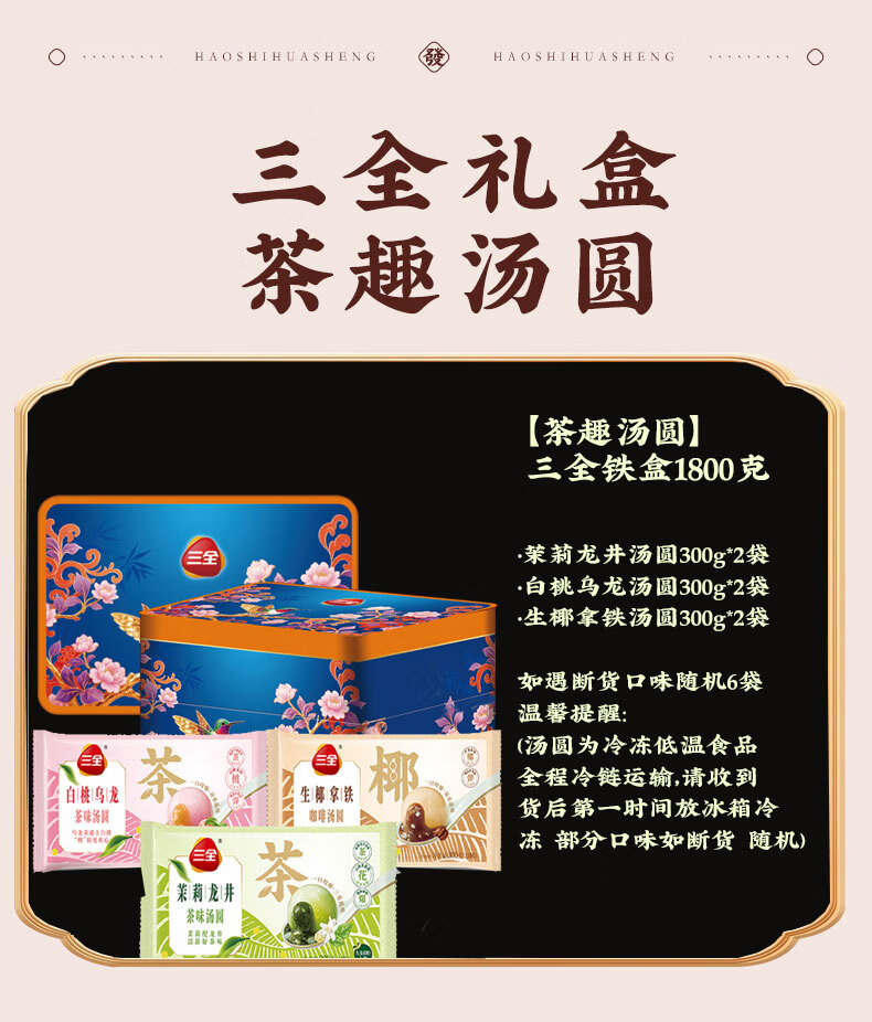 三全汤圆礼盒元宵节大黄米五黑五红食养汤圆多种口味年货礼盒 心愿汤圆礼盒1800g
