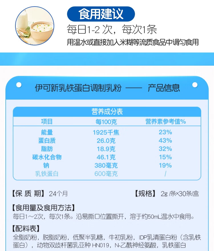 伊可新乳铁蛋白调制乳粉30条 含乳铁蛋白免疫球蛋白儿童乳铁蛋白粉 30条*3盒 厂家直供正品保障