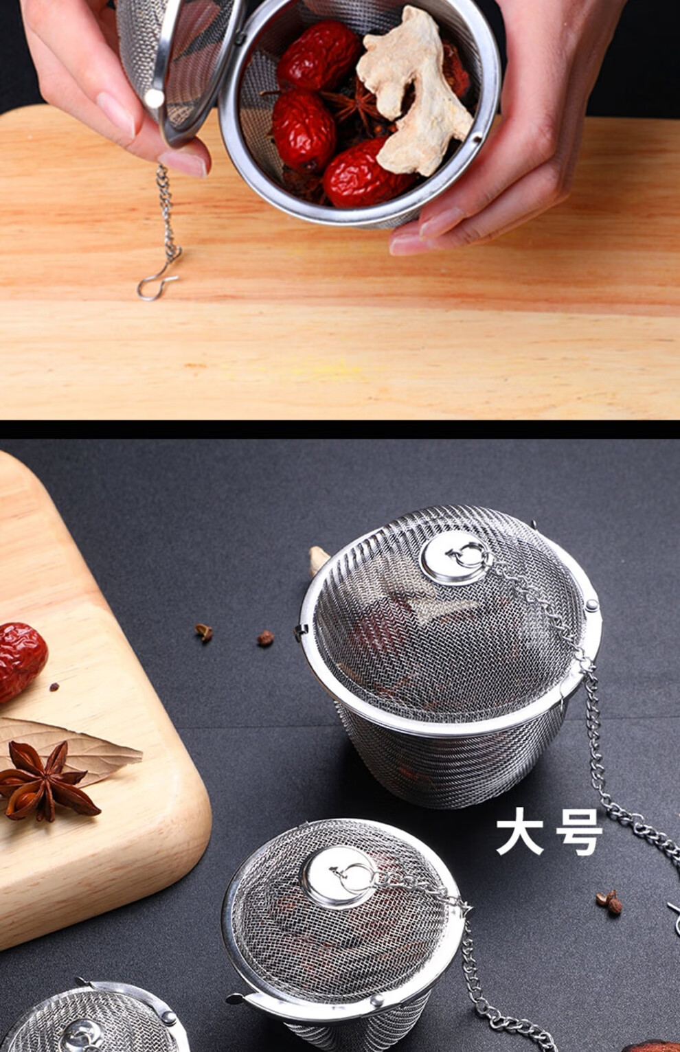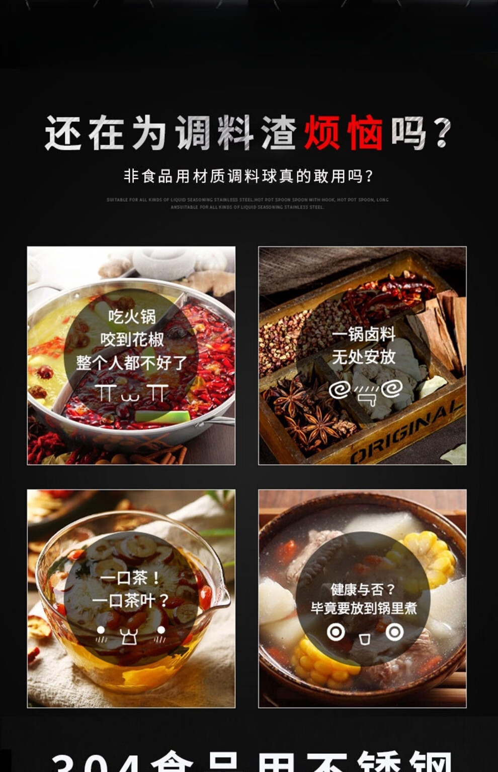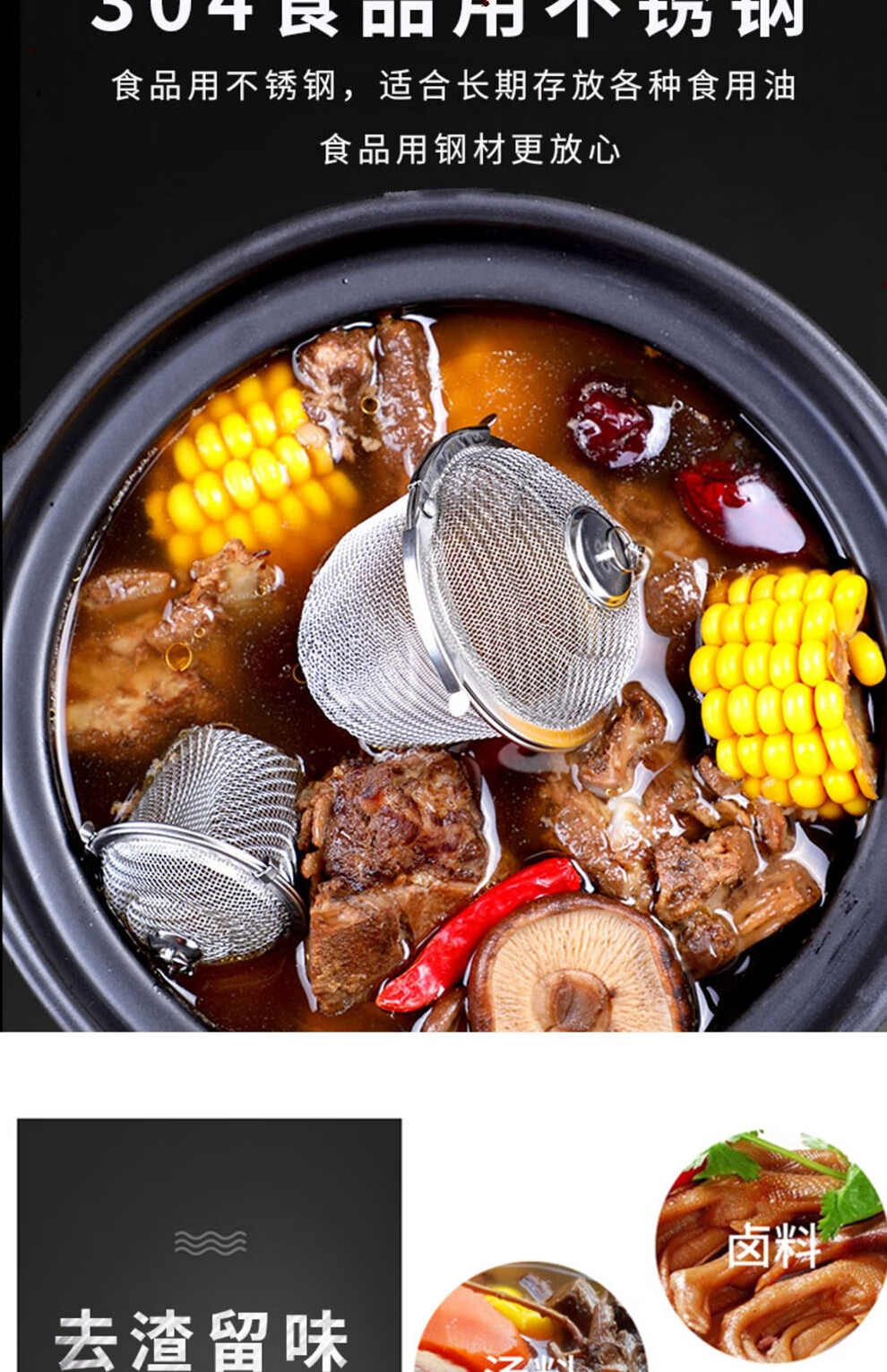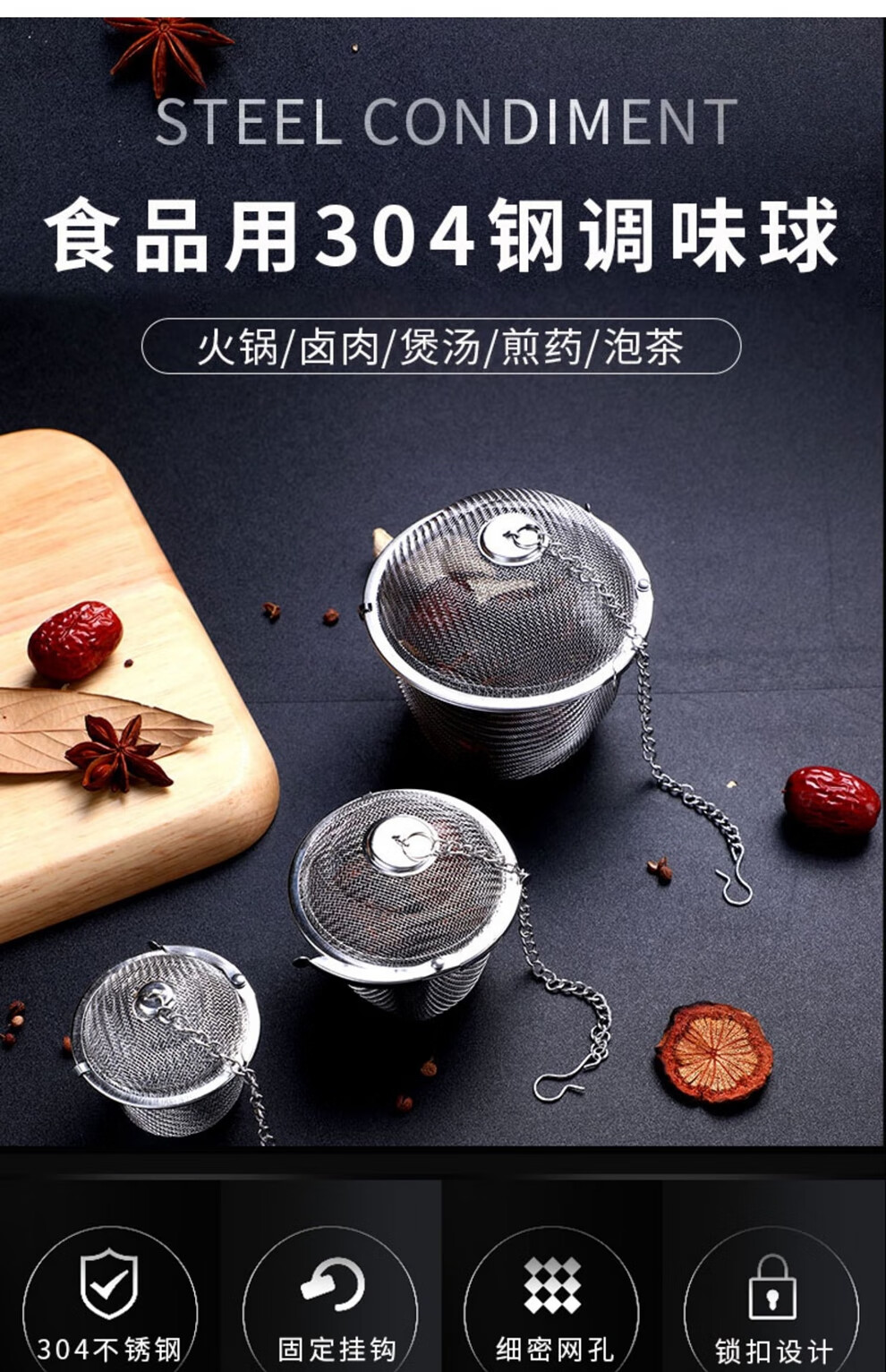 日禾盛唐304不锈钢调味球包调料球卤料球煲汤袋炖肉调料盒煮肉过滤球味宝 升级款调味球【8*8cm】加大号