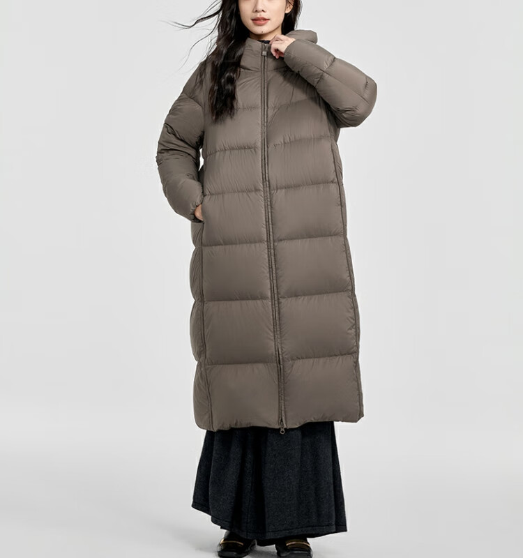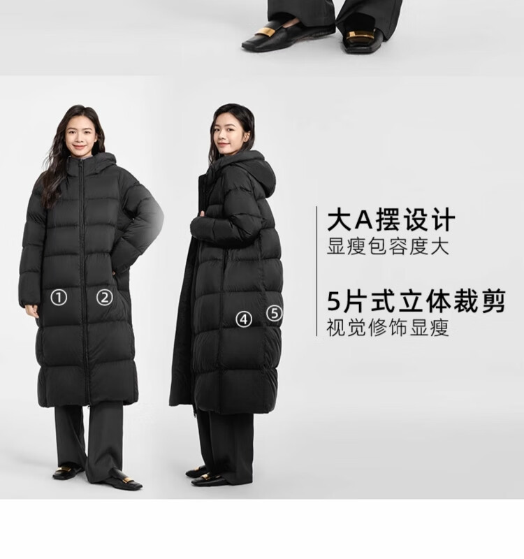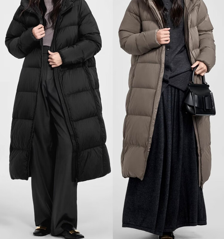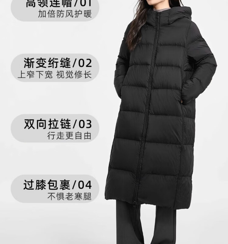 千仞岗【刘涛同款】2024新款冬季羽绒服女士长款连帽外套加厚保暖防寒服 魔力黑-升级版 M (165)