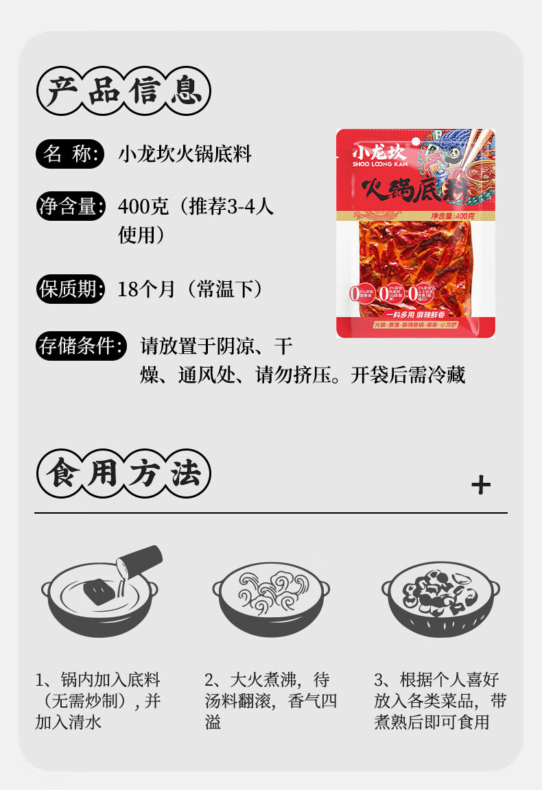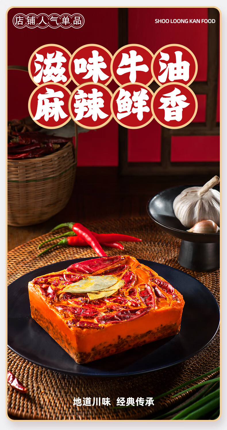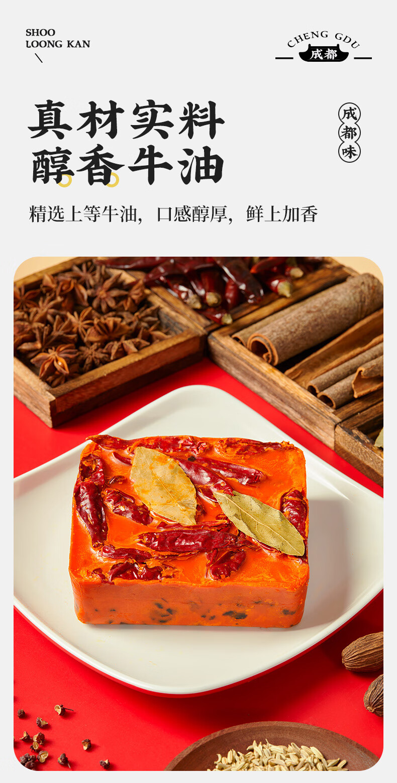 小龙坎 火锅底料 牛油手工全型重庆四川特产麻辣香锅调味品红汤冒菜调料 川式火锅底料150g*6袋