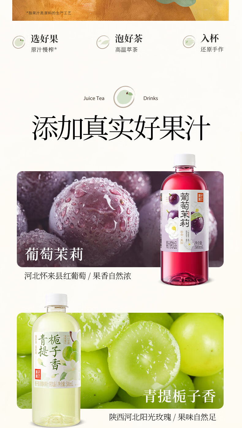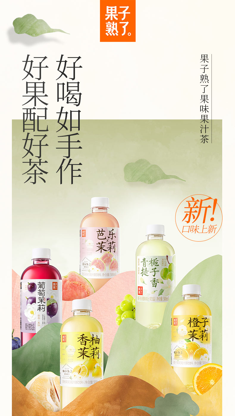 果子熟了果汁茶果汁饮料栀子香青提500ml多口味多规格可选 【混合】6口味 6瓶