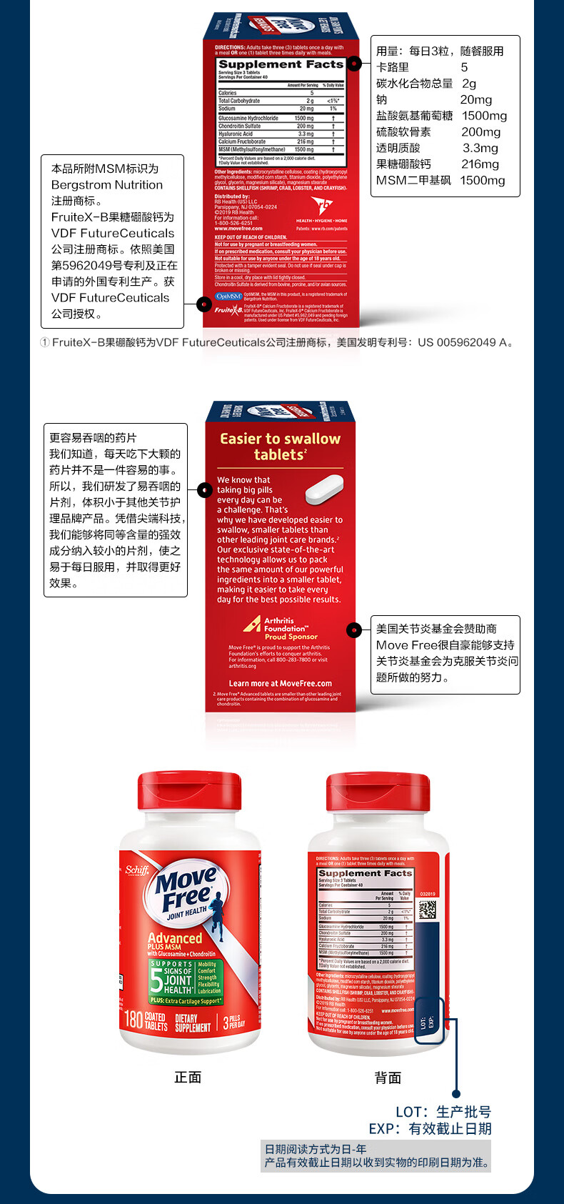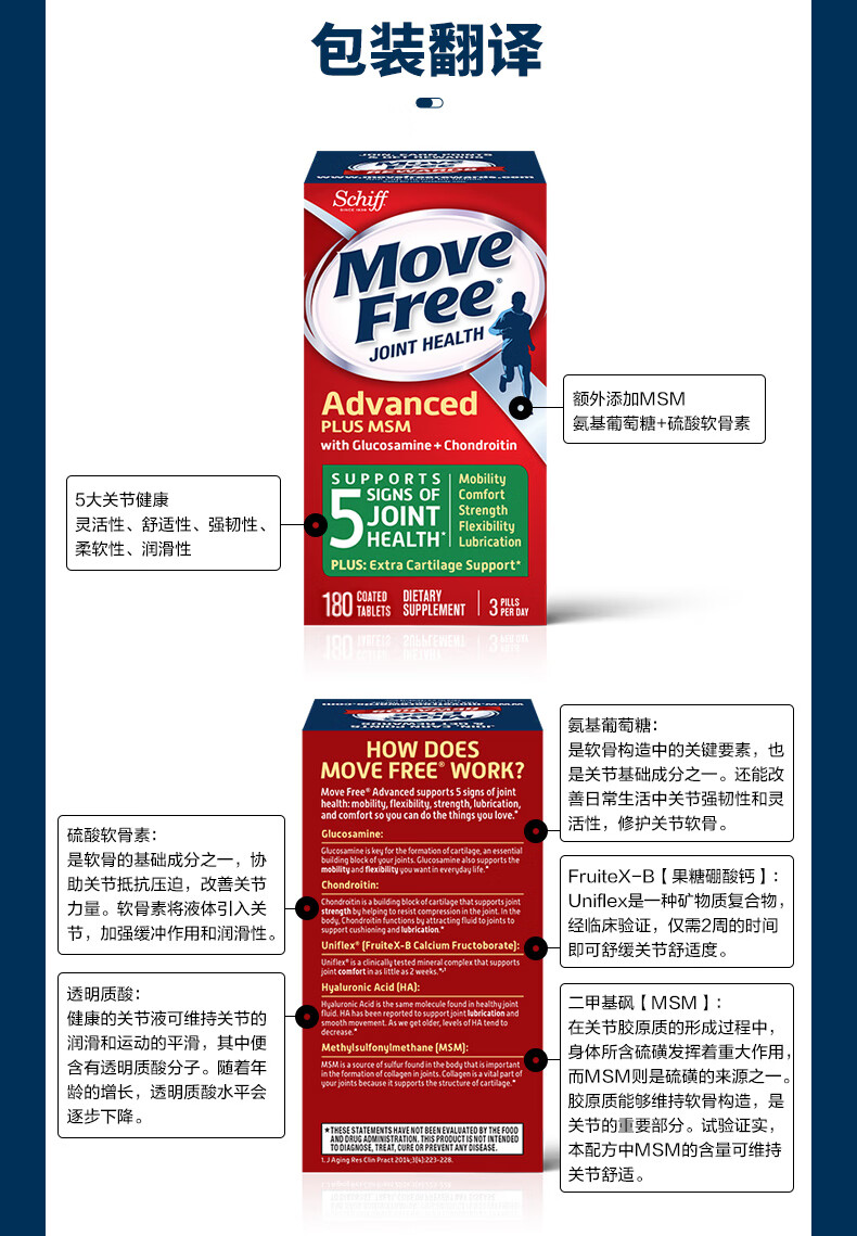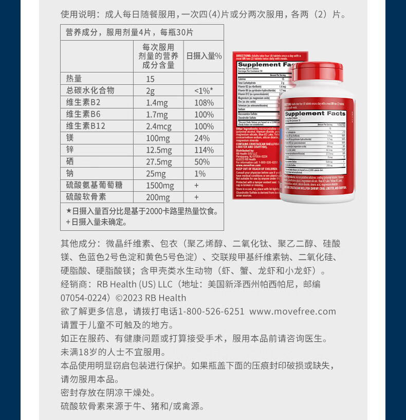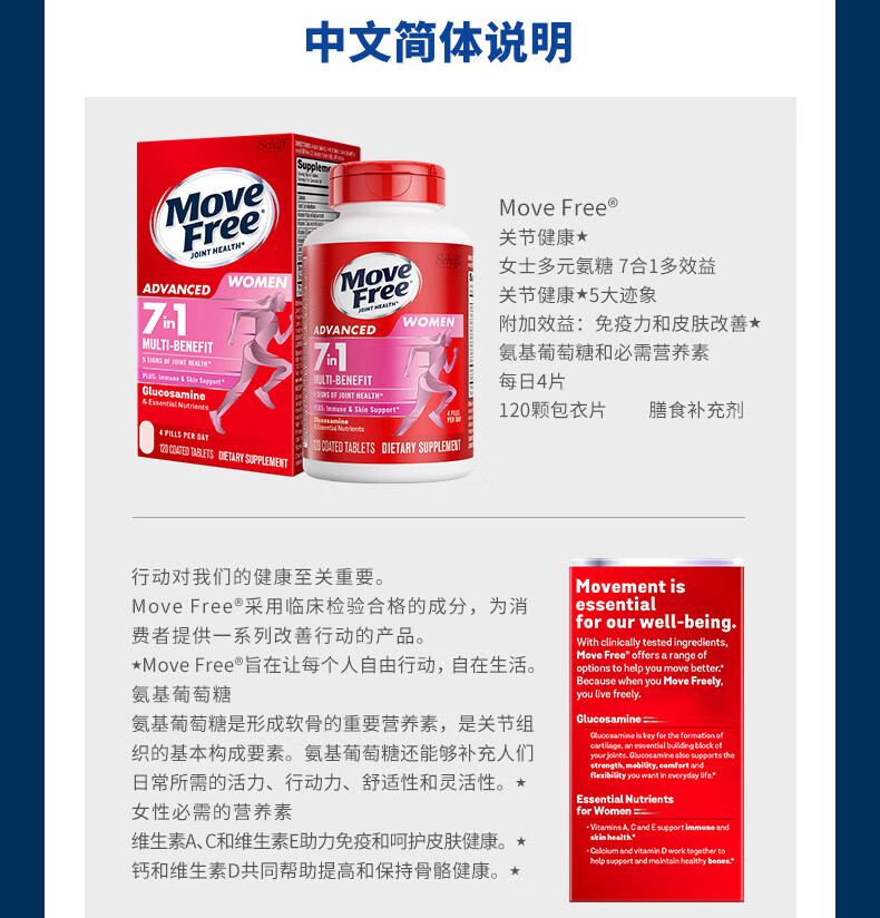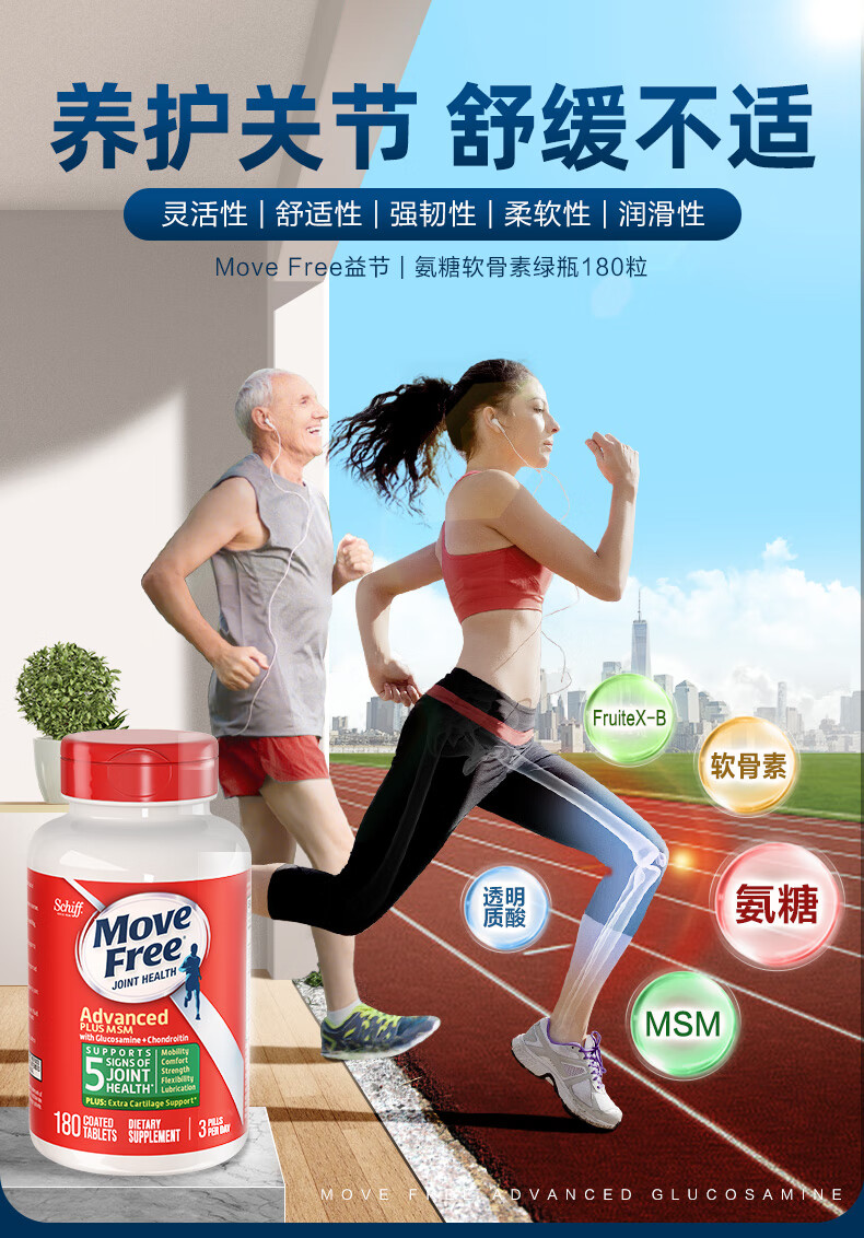 益节(Move Free)绿瓶 维骨力氨糖软骨素含MSM舒缓因子美国原装进口 成人中老年人 【关节缓痛】绿瓶氨糖 120粒*1瓶