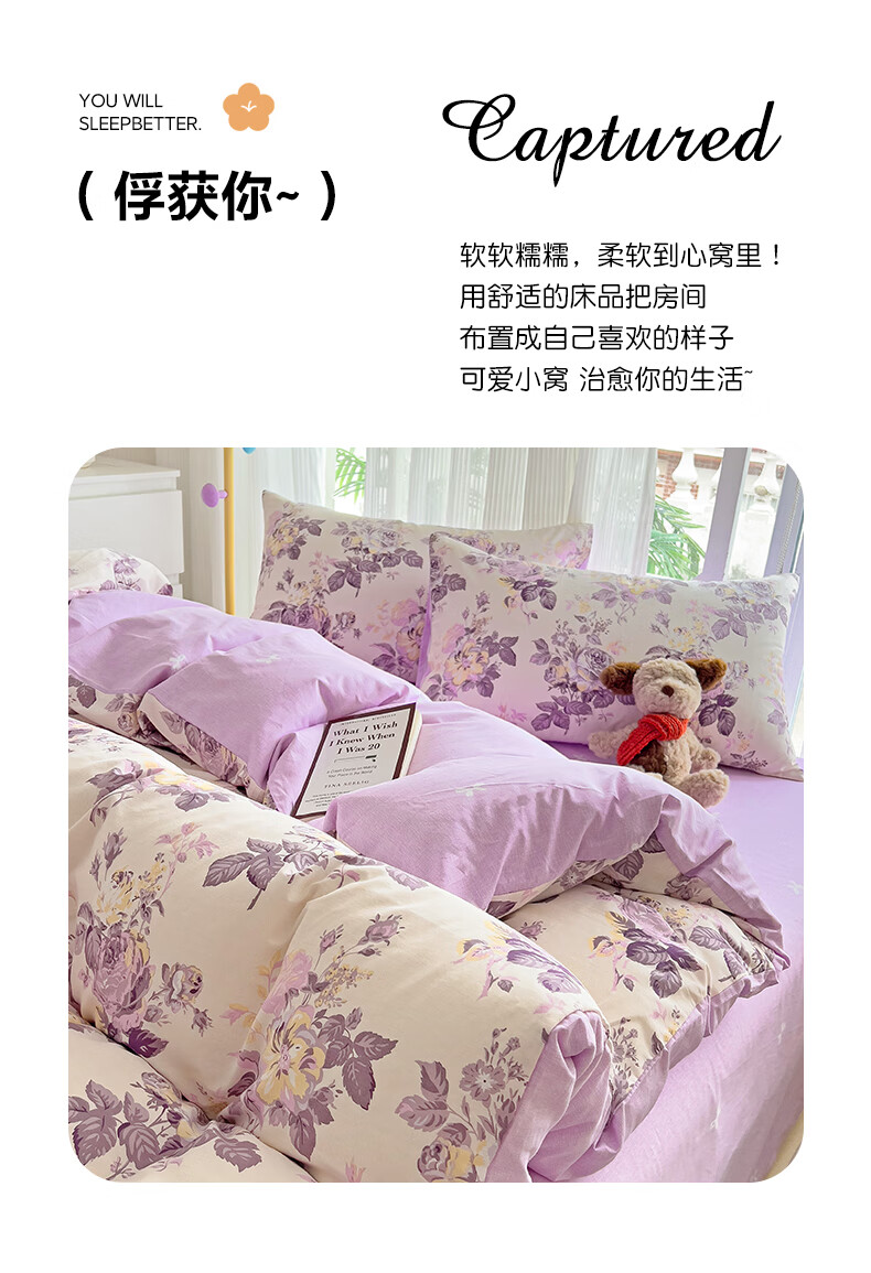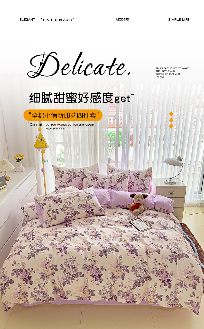 VJE纯棉四件套全棉床上用品2026新款清新碎花被套宿舍床单三件套四季 沐春风 三件套1.2m 床单款 -被套150*200cm