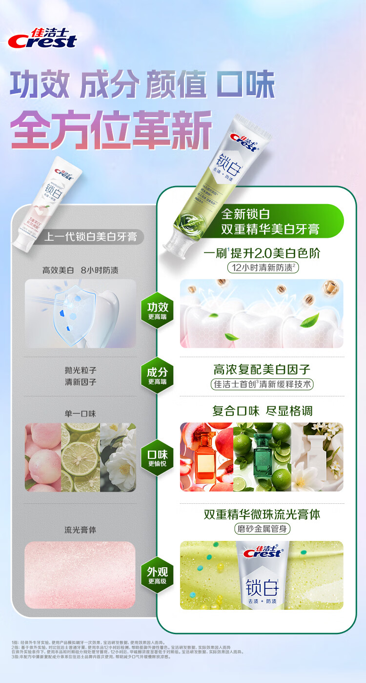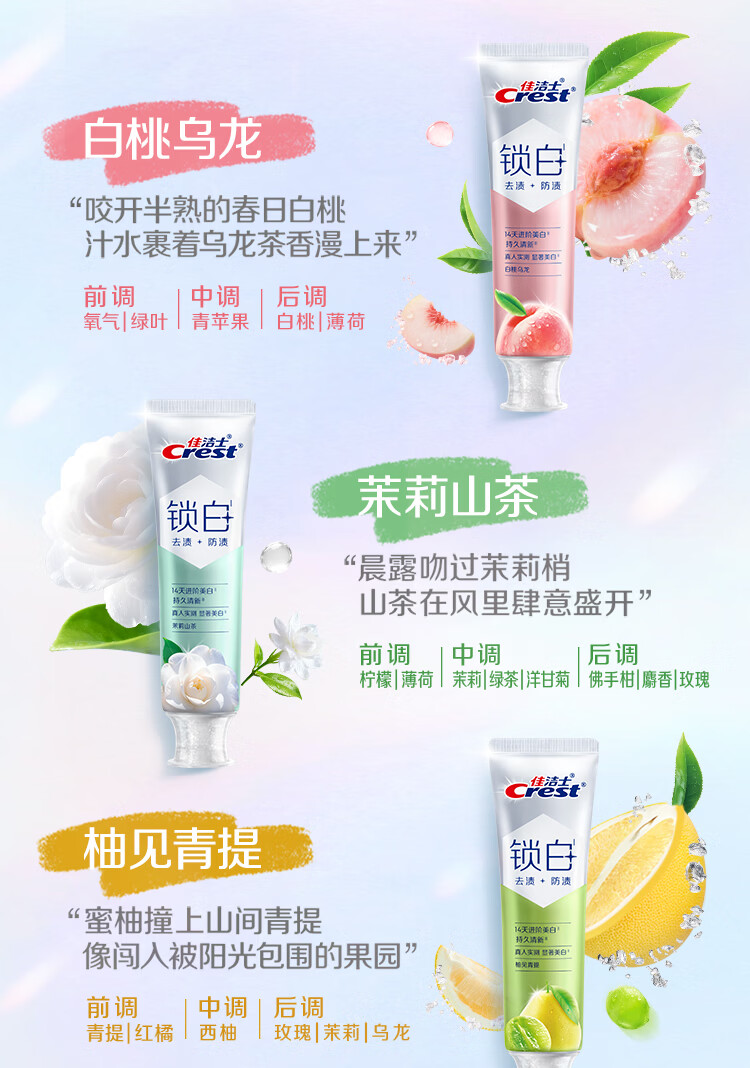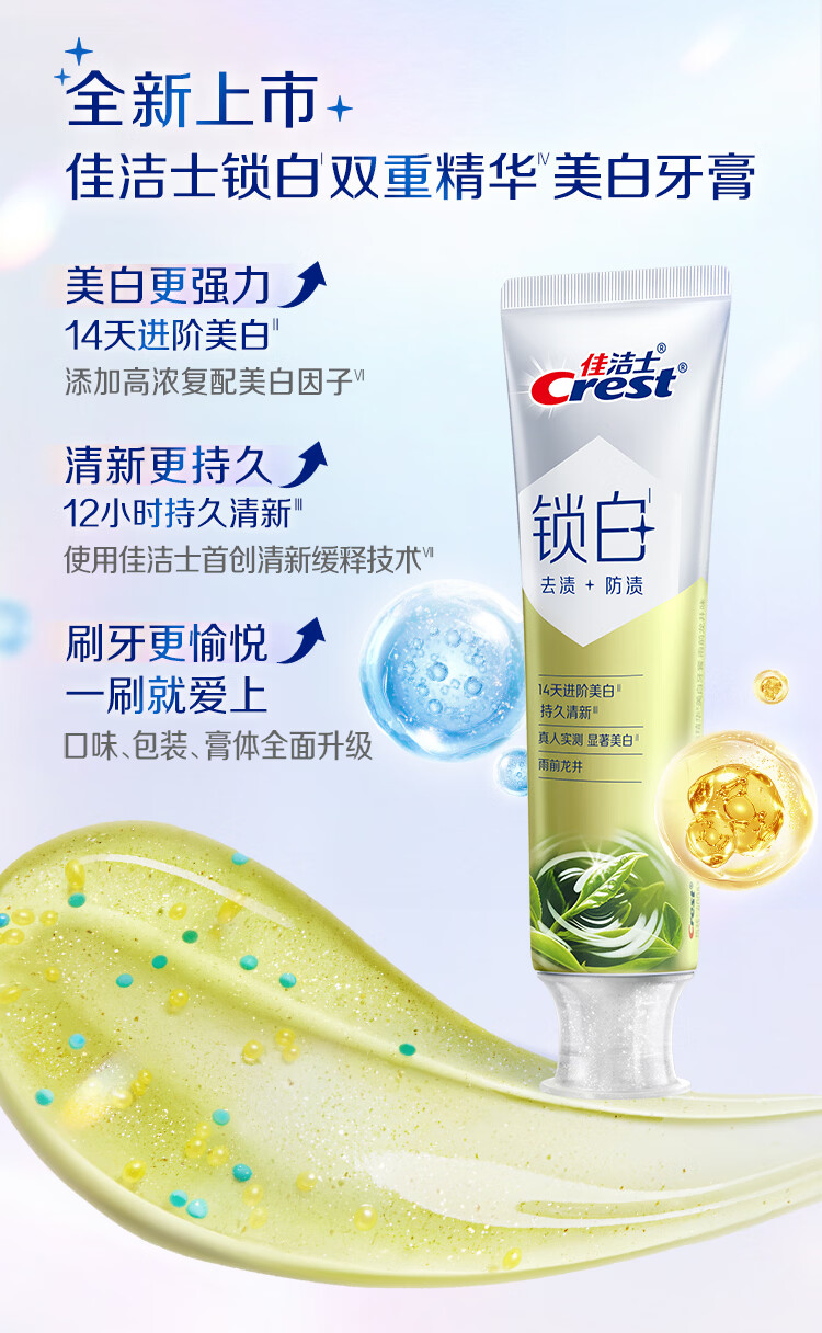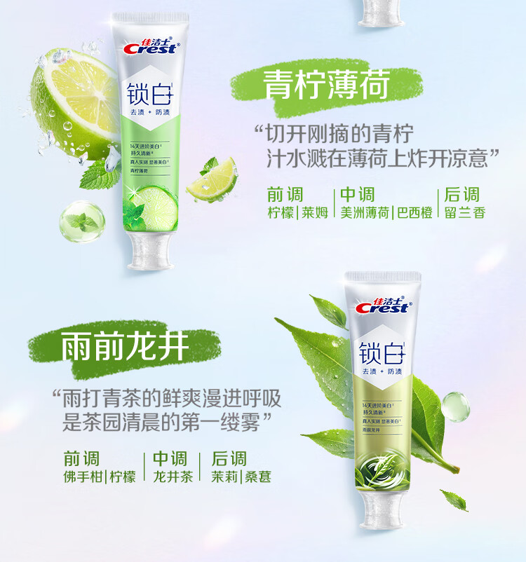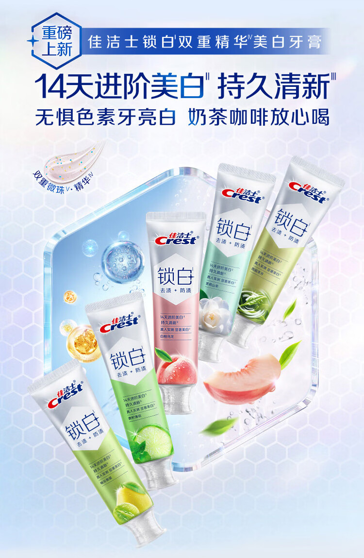 佳洁士新锁白双重精华美白清新牙膏茶香果香5支共600g去渍京东自营