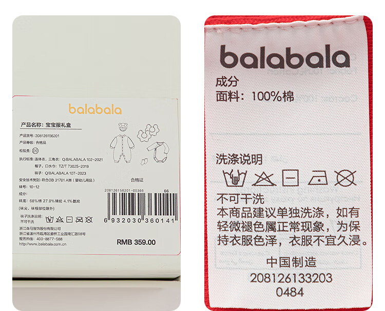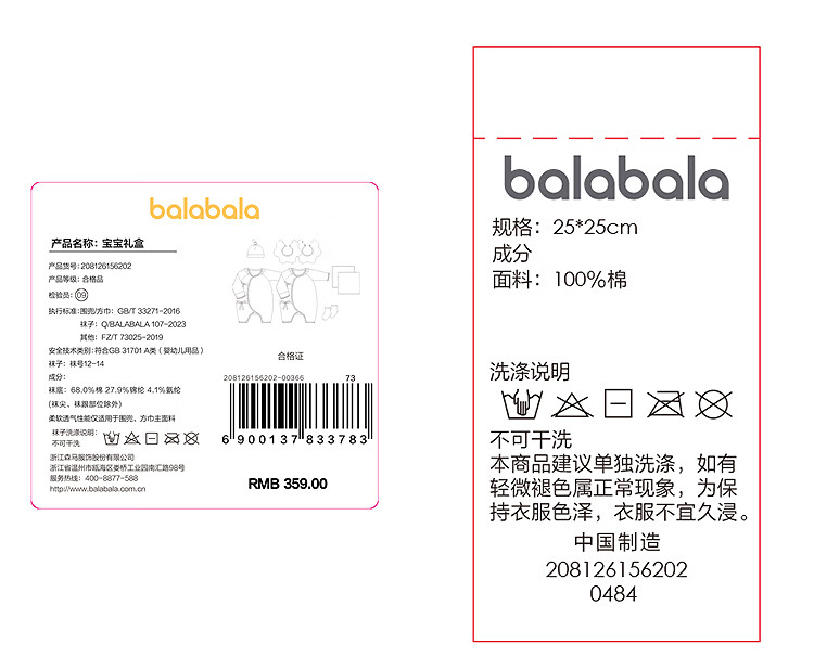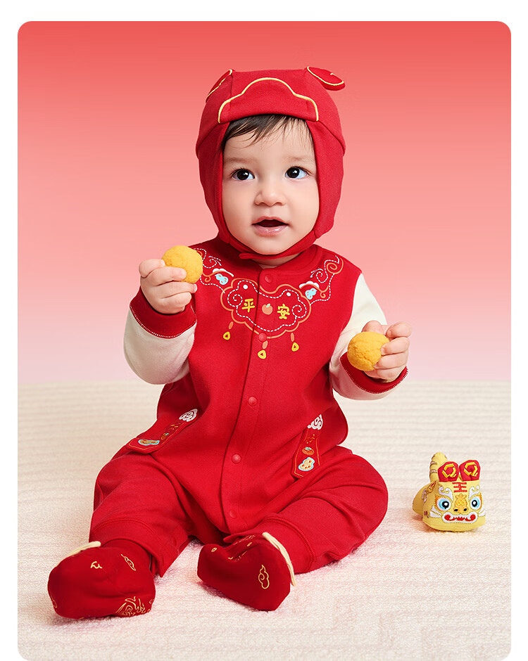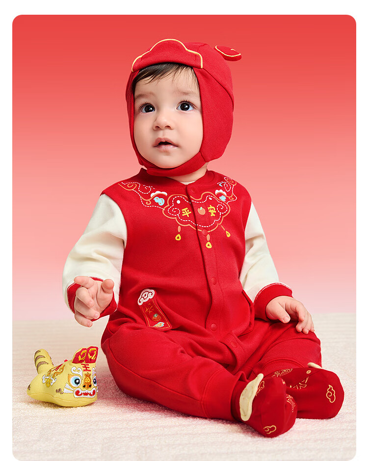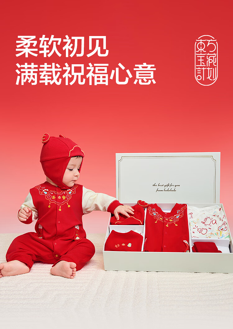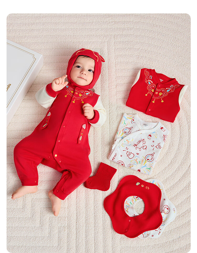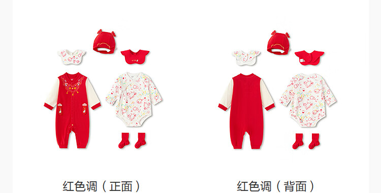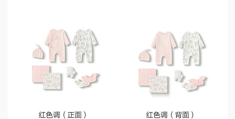巴拉巴拉新生儿礼盒宝宝满月六件装初生婴儿红色新年拜年服礼盒 红色调00366-208126156201 66cm