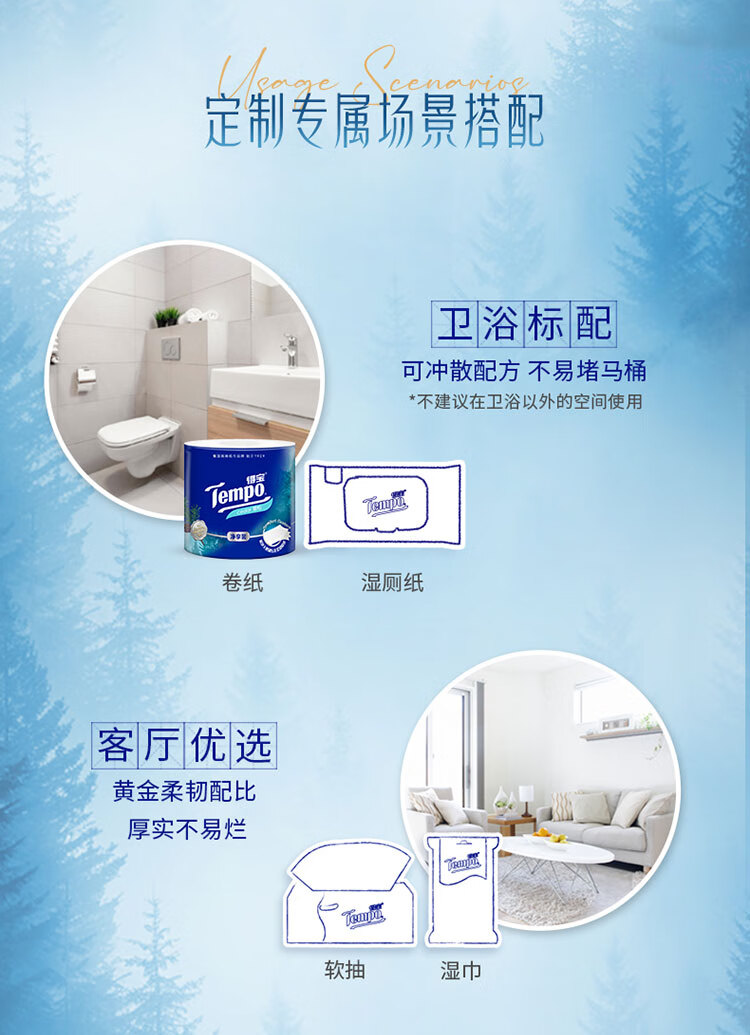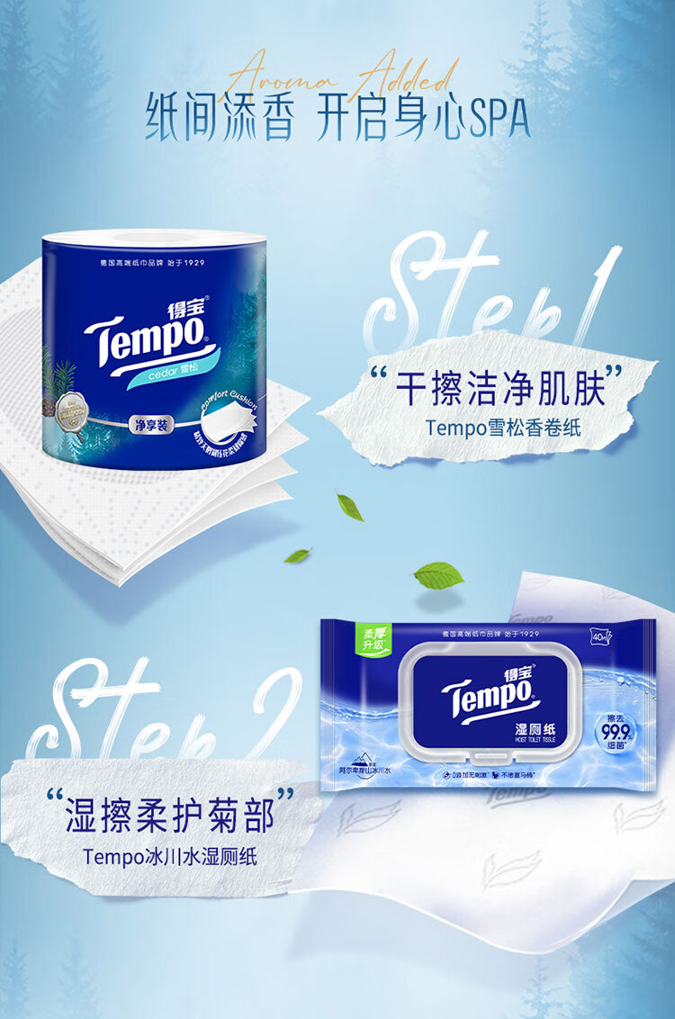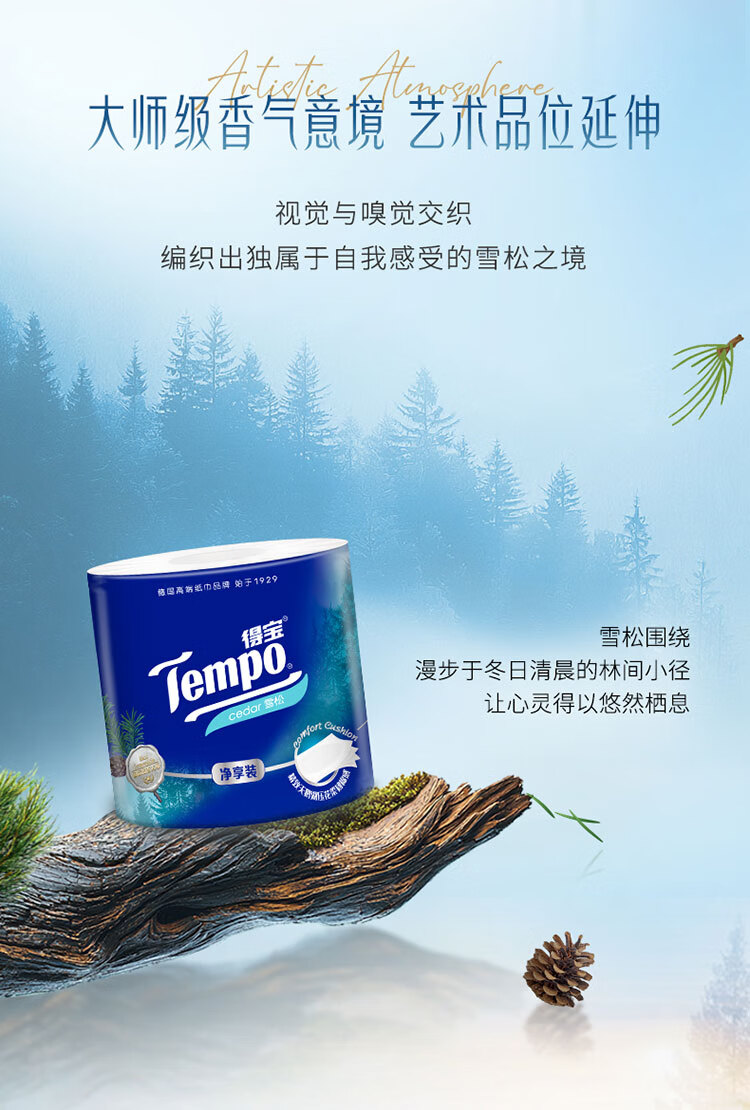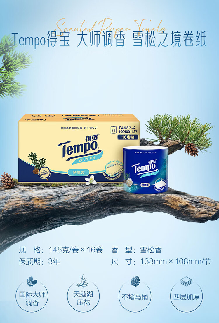 得宝(TEMPO)一博同款 雪松味卷纸 4层145g*16卷 卫生纸 纸巾 有芯卷筒纸