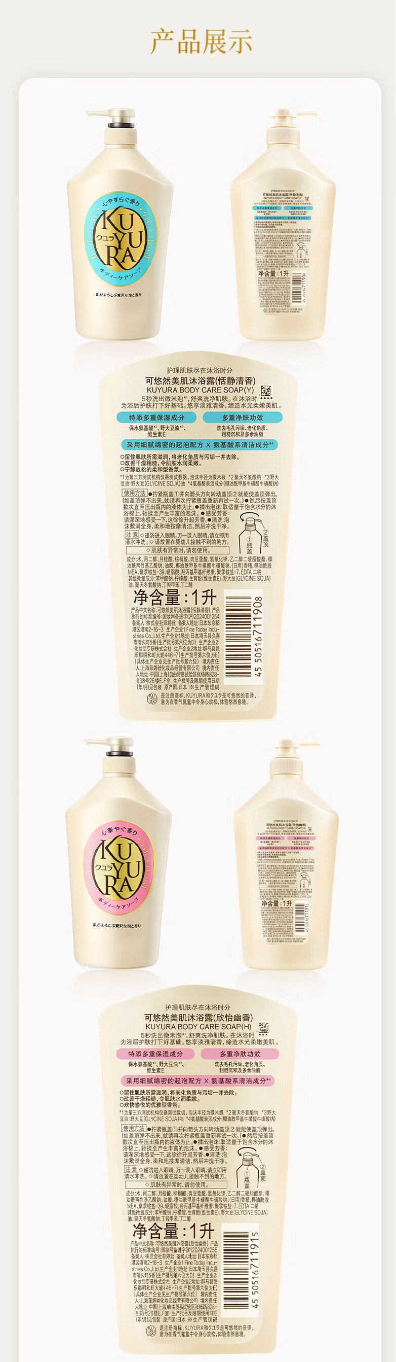 可悠然沐浴露大黄瓶香味持久美肌香氛清洁保湿沐浴液套装1L+1L 男女士