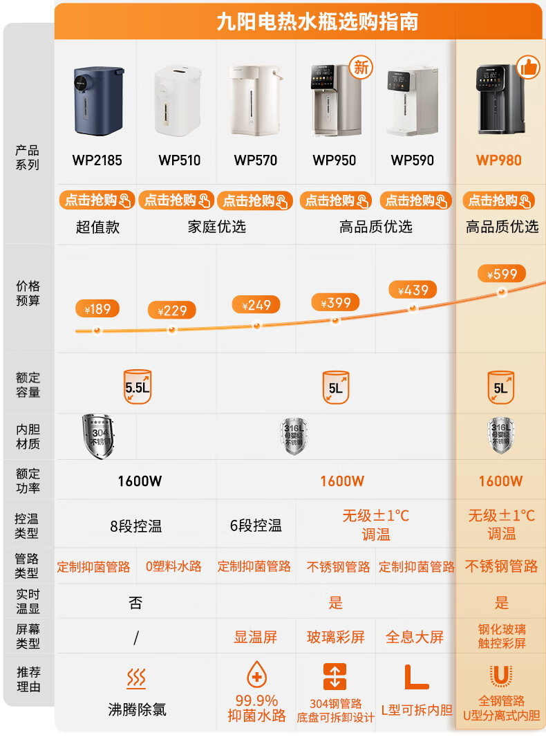 九阳(Joyoung)电热水瓶热水壶 5.5L大容量八段保温304不锈钢内胆 0胶水 恒温水壶K50ED-WP2185