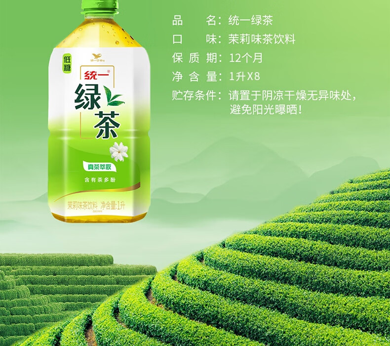 统一 绿茶 1L*8瓶 整箱装 调味茶饮料(新老包装随机发货)