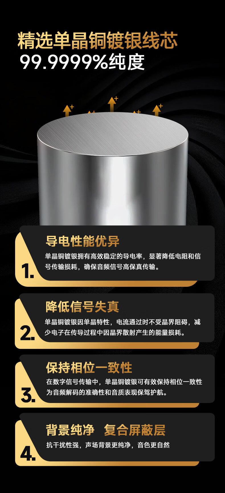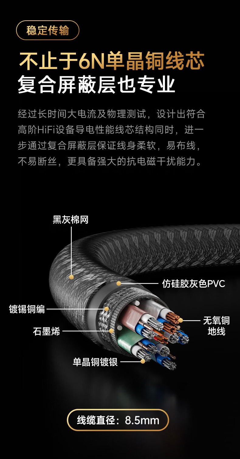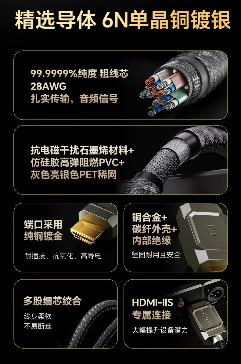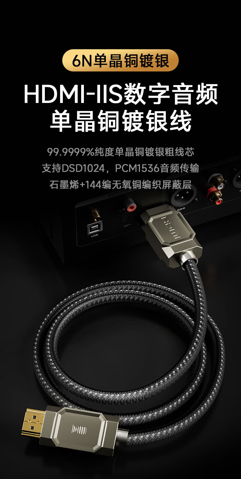 开博尔(Kaiboer)6N单晶铜镀银HDMI-IIS数字音频线发烧数码IIS解码I2S音频线 标配【6N单晶铜镀银芯】 2米